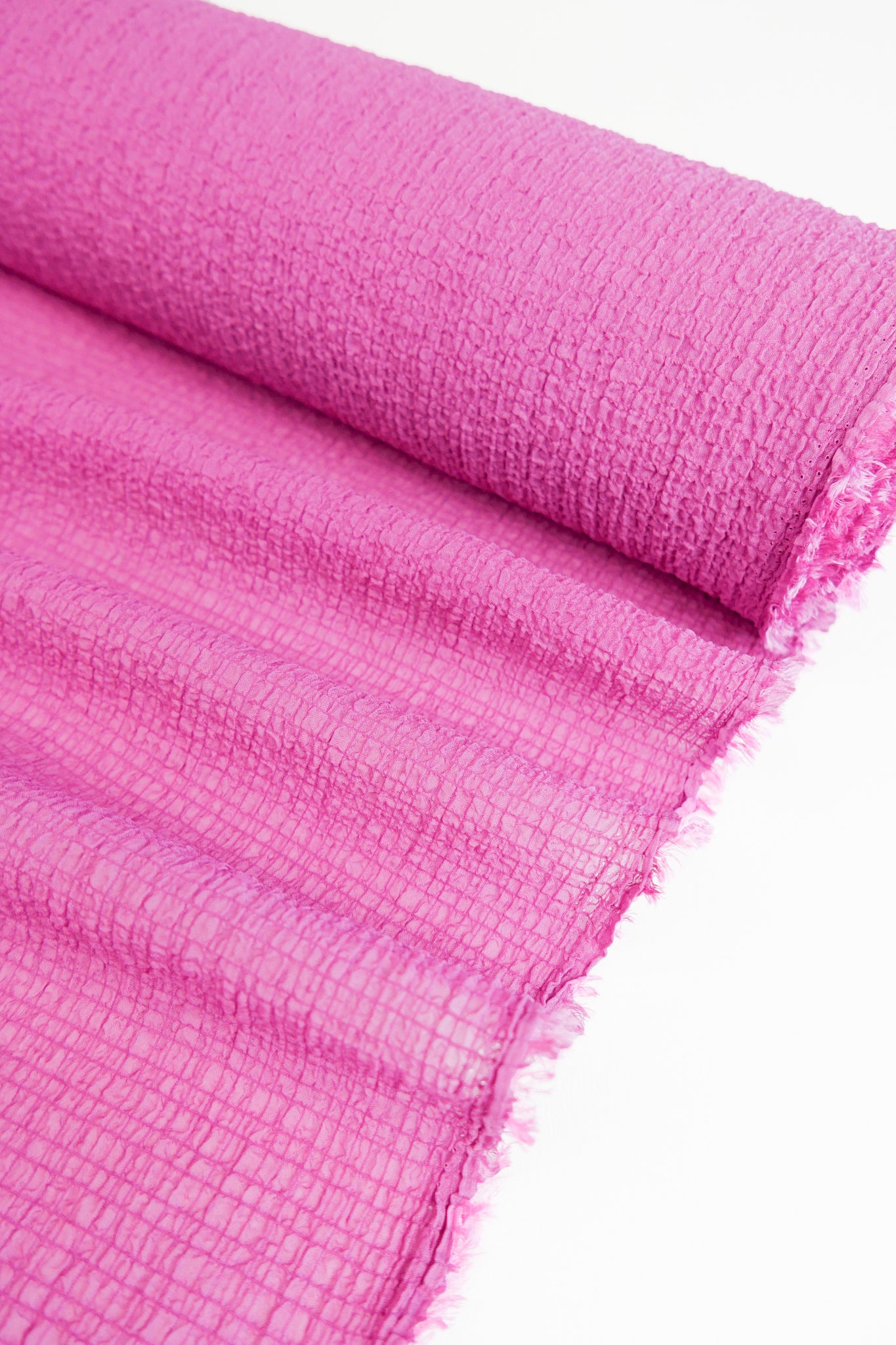 For the fabric collector, this is a truly rare and unique textile. Also known as popcorn knit, Bubble Knit is a uniquely textured fabric coming in five delicious colourways. Semi-opaque and lightweight, it has a beautifully tactile handle and slight two-way stretch for added comfort. Make chic, Issey Miyake-inspired dresses, tops and other show-stopping pieces.
