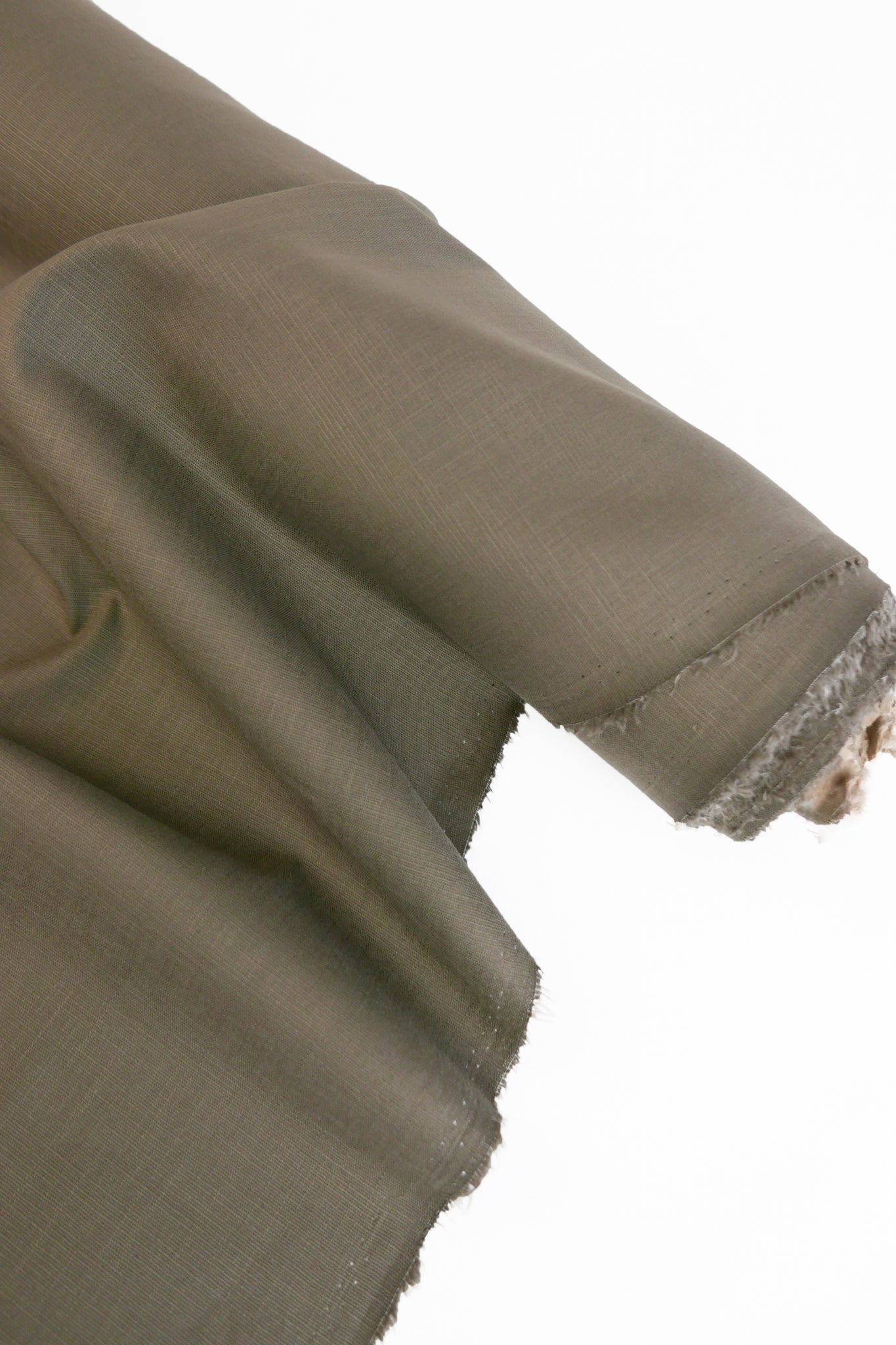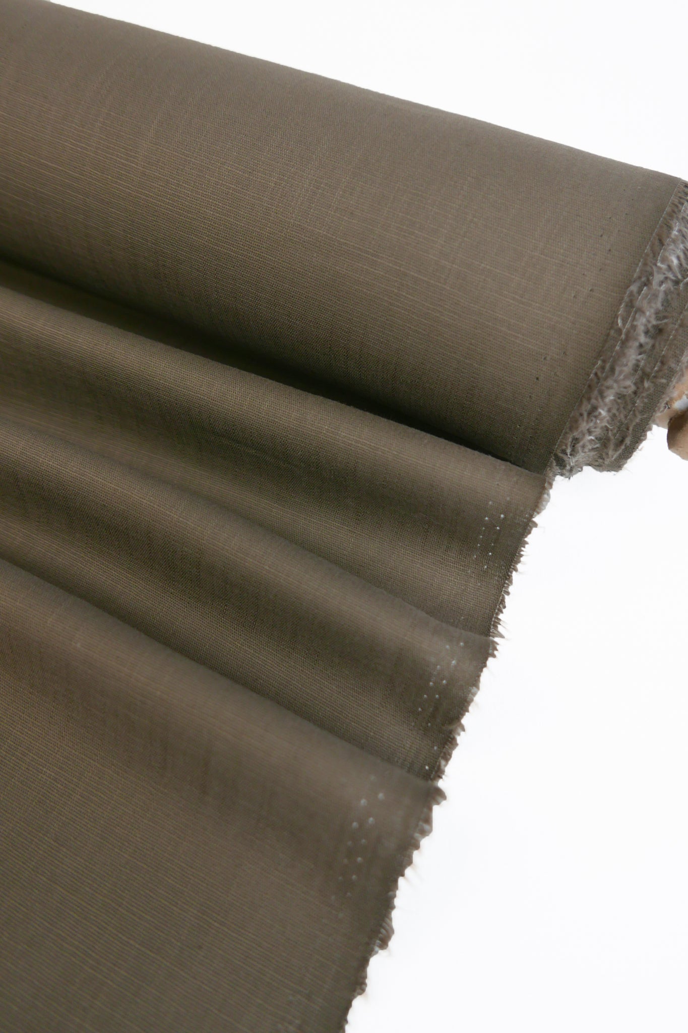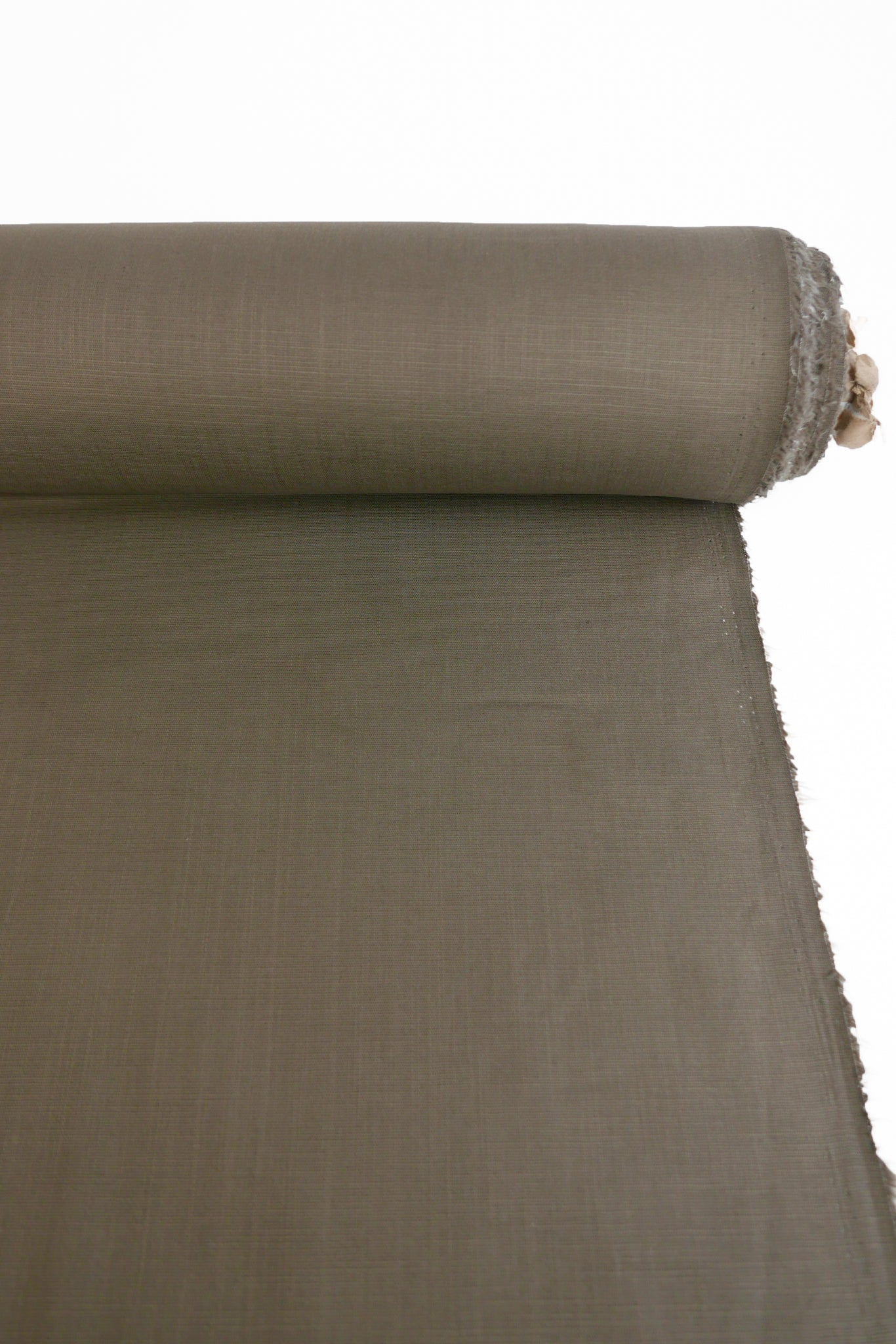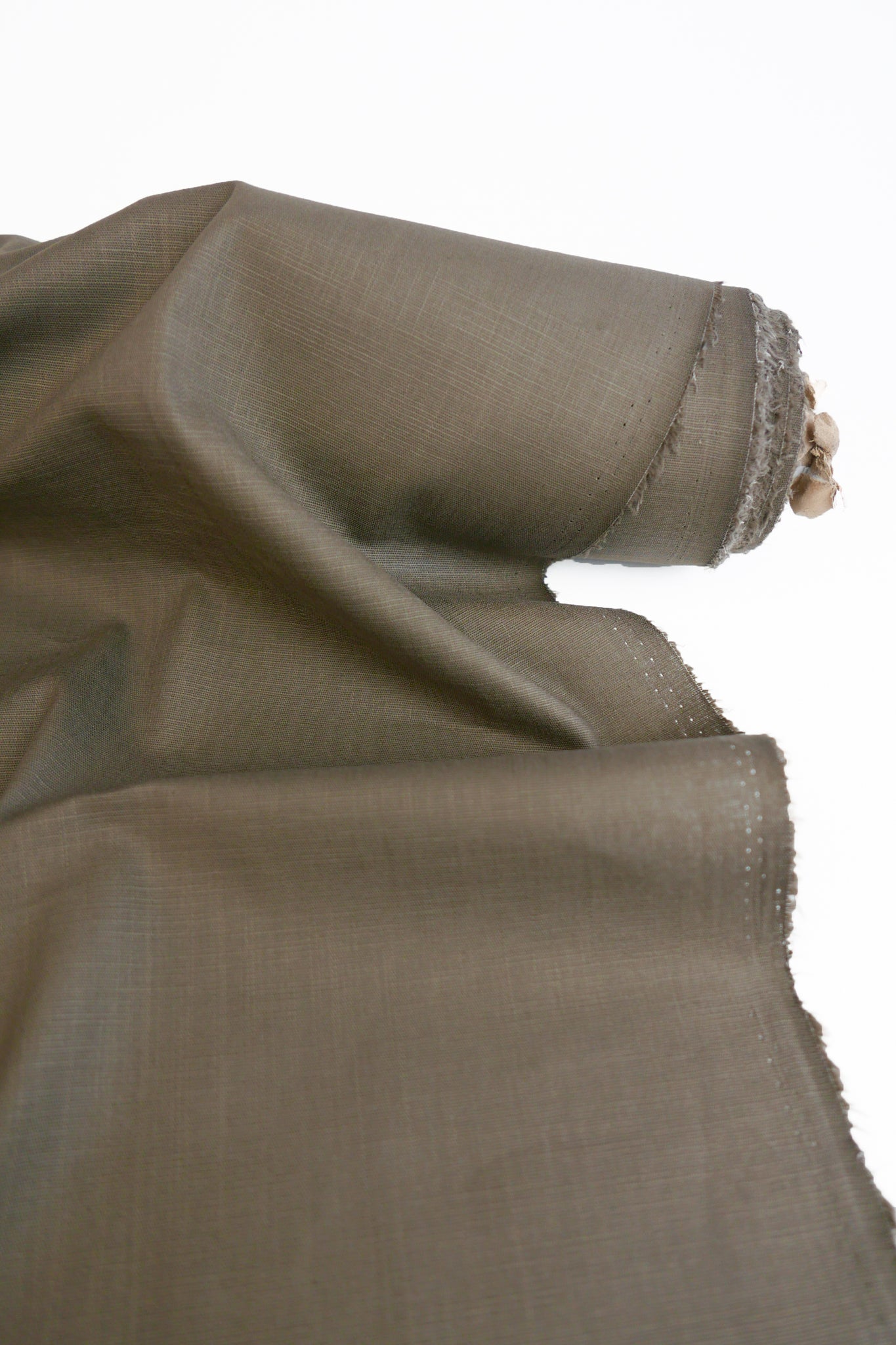 Bambi is a structured mid-weight linen in a mushroom colourway with a crosshatch weave. It has a small lycra content giving it a slight stretch, and an opulent, buttery soft hand feel. Mostly opaque, Bambi is waiting to be made into a striking linen suit, dress or everyday wide-leg trousers.