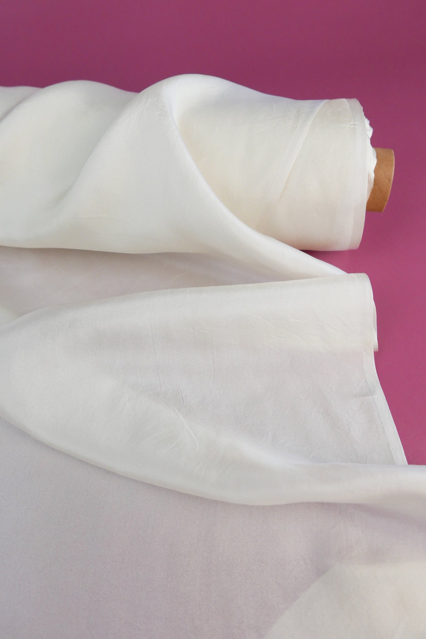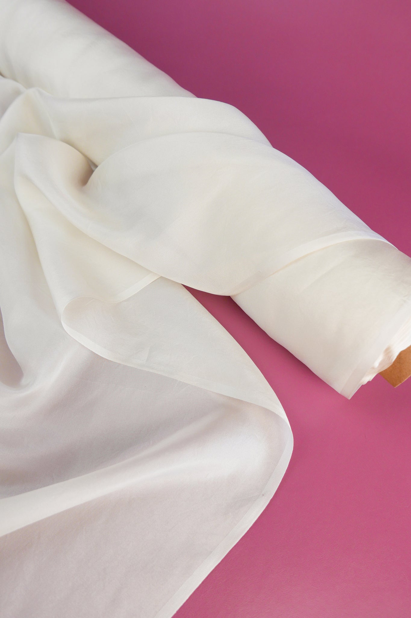 This luscious Habotai silk comes in a natural ivory colourway with wonderful lustre and glossy finish. Ideal for dying (shop our eco dyes here). It is very lightweight, semi sheer and incredibly floaty. Often used for scarves or drapery, this Habotai silk pleats well and would create a stunning voluminous blouse or dress.