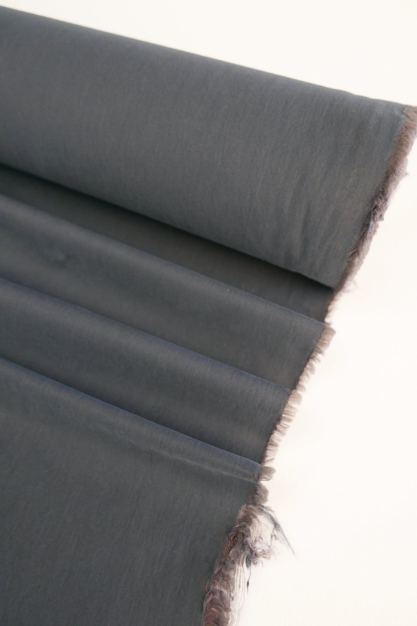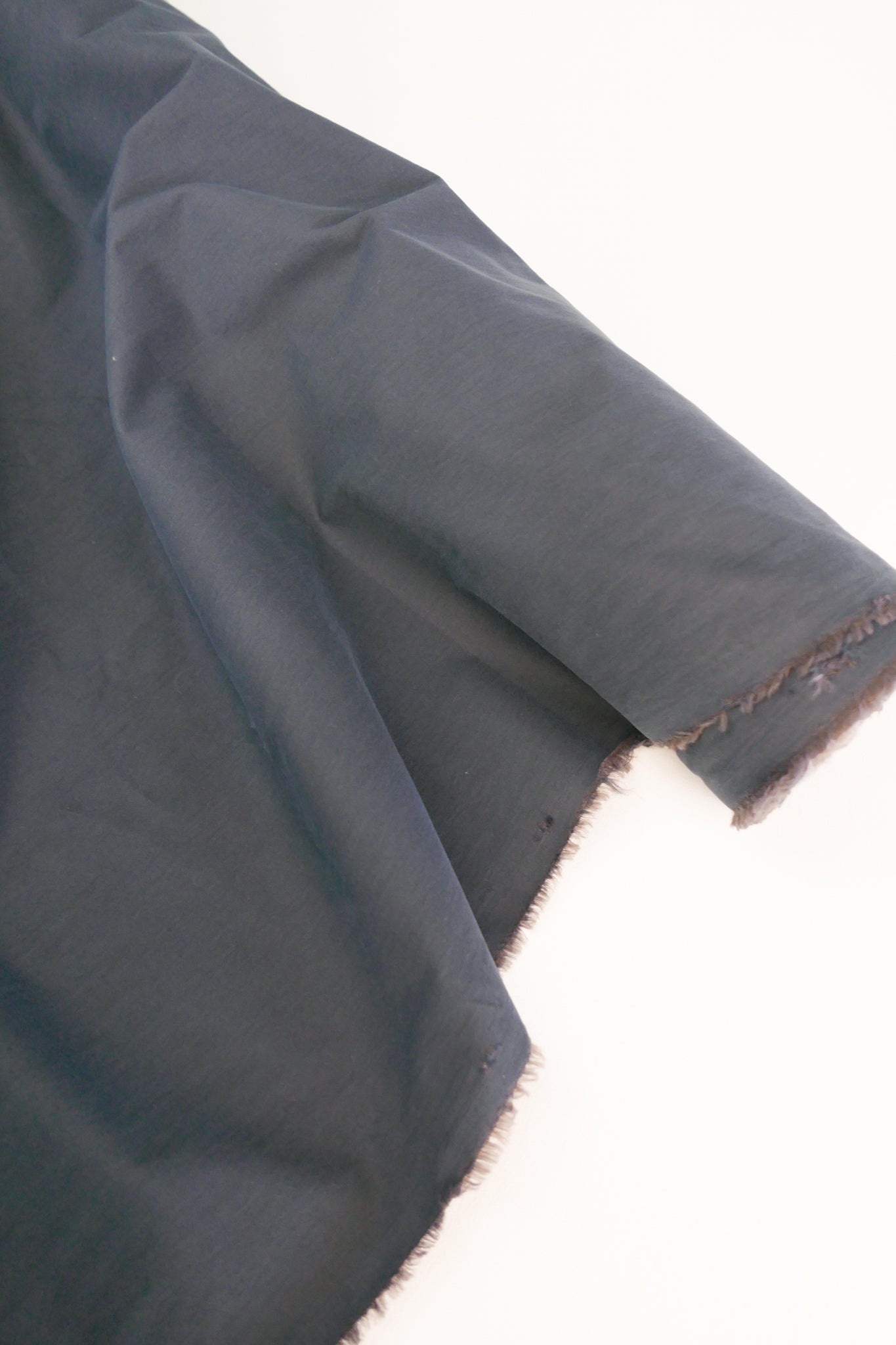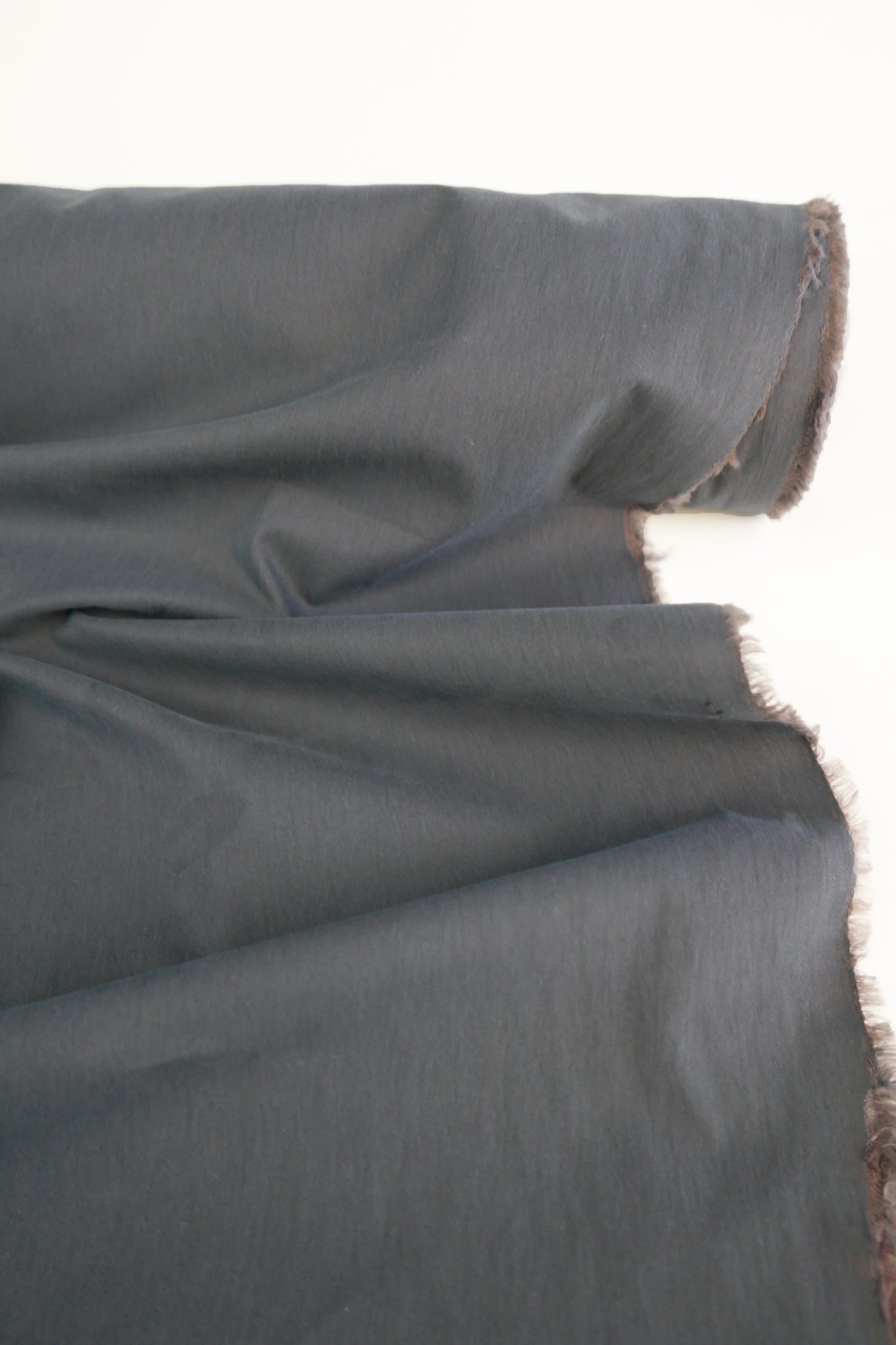This typewriter cotton shirting is a very fine and densely woven cotton poplin coming in a soft, hazy blue colourway. It is particularly interesting, as the yarn has been sand-washed, giving it a softer hand feel and a peachy finish. It is highly durable and breathable. Fully opaque and holding good structure, it is perfect for a wide range of garments and occasions. This includes things like structured overshirts or dresses, trousers, waistcoats and trench coats.