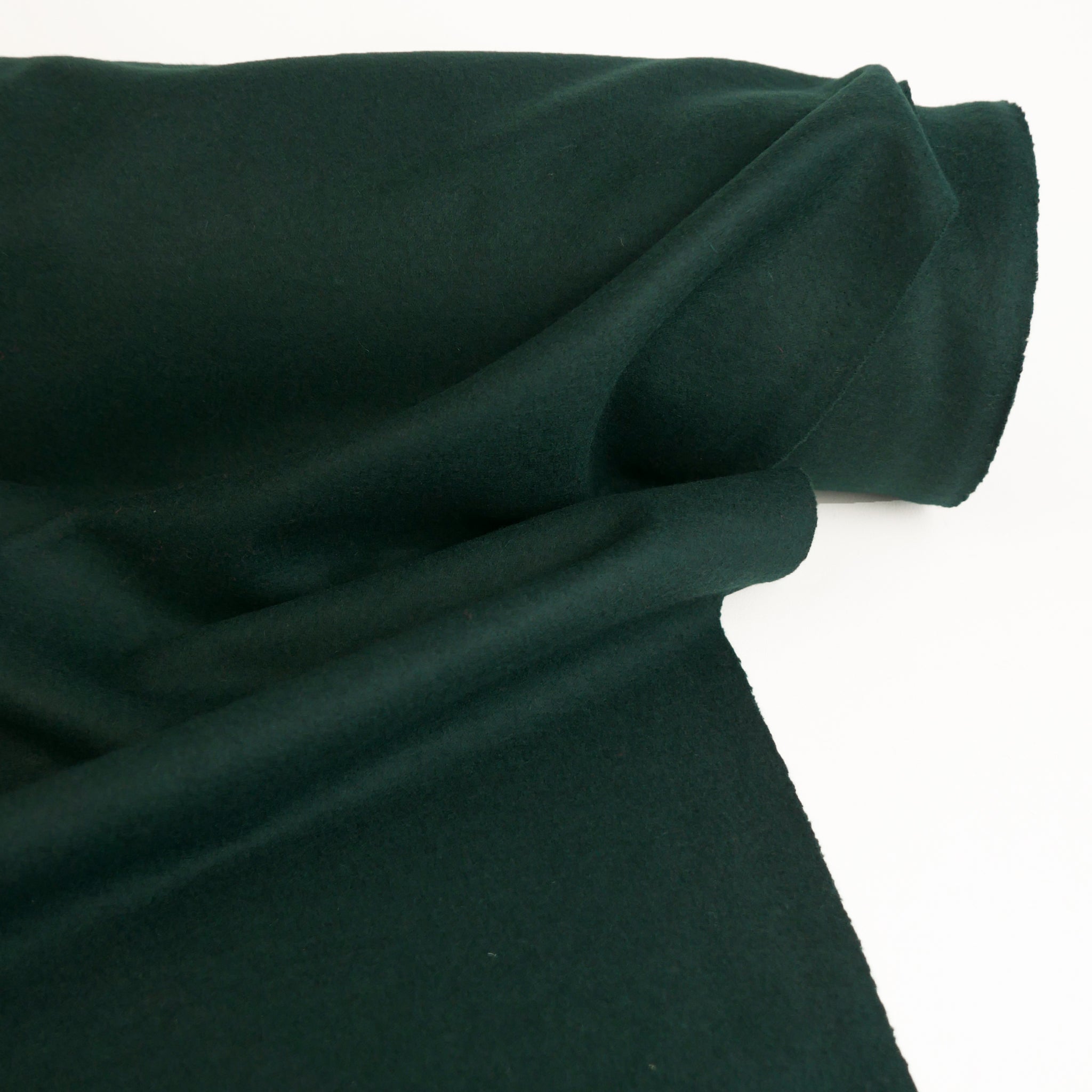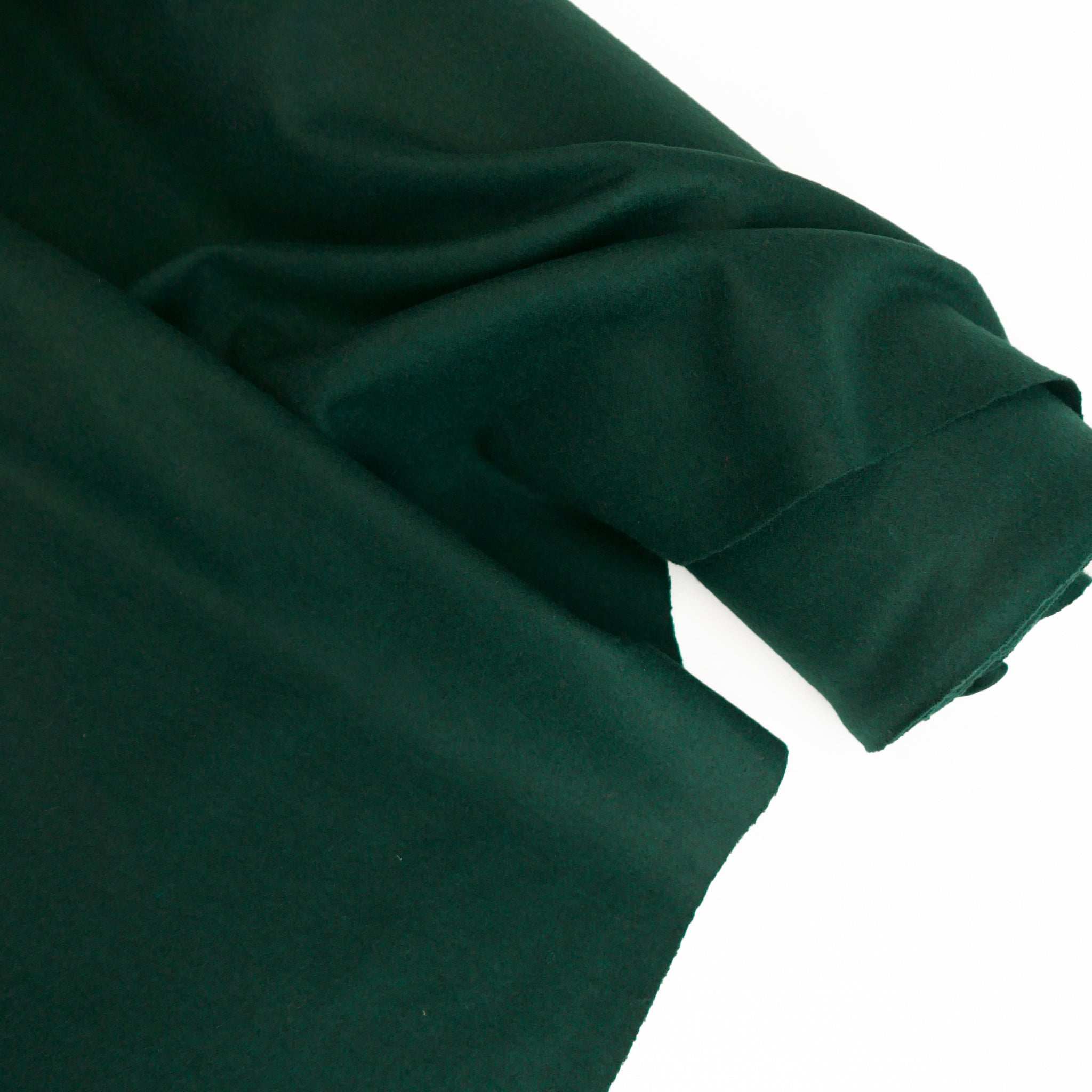 Bethany is a lovely midweight boiled wool coming in pine. It has a tight-knit weave and mechanical stretch, giving it plenty of body and a beautiful, structured drape. It has a fine finish, and being boiled is also moisture-wicking and odour-free. Bethany is ideal for unlined draped jackets, cardigans, wrap coats, trans-seasonal layering pieces, or babywear.