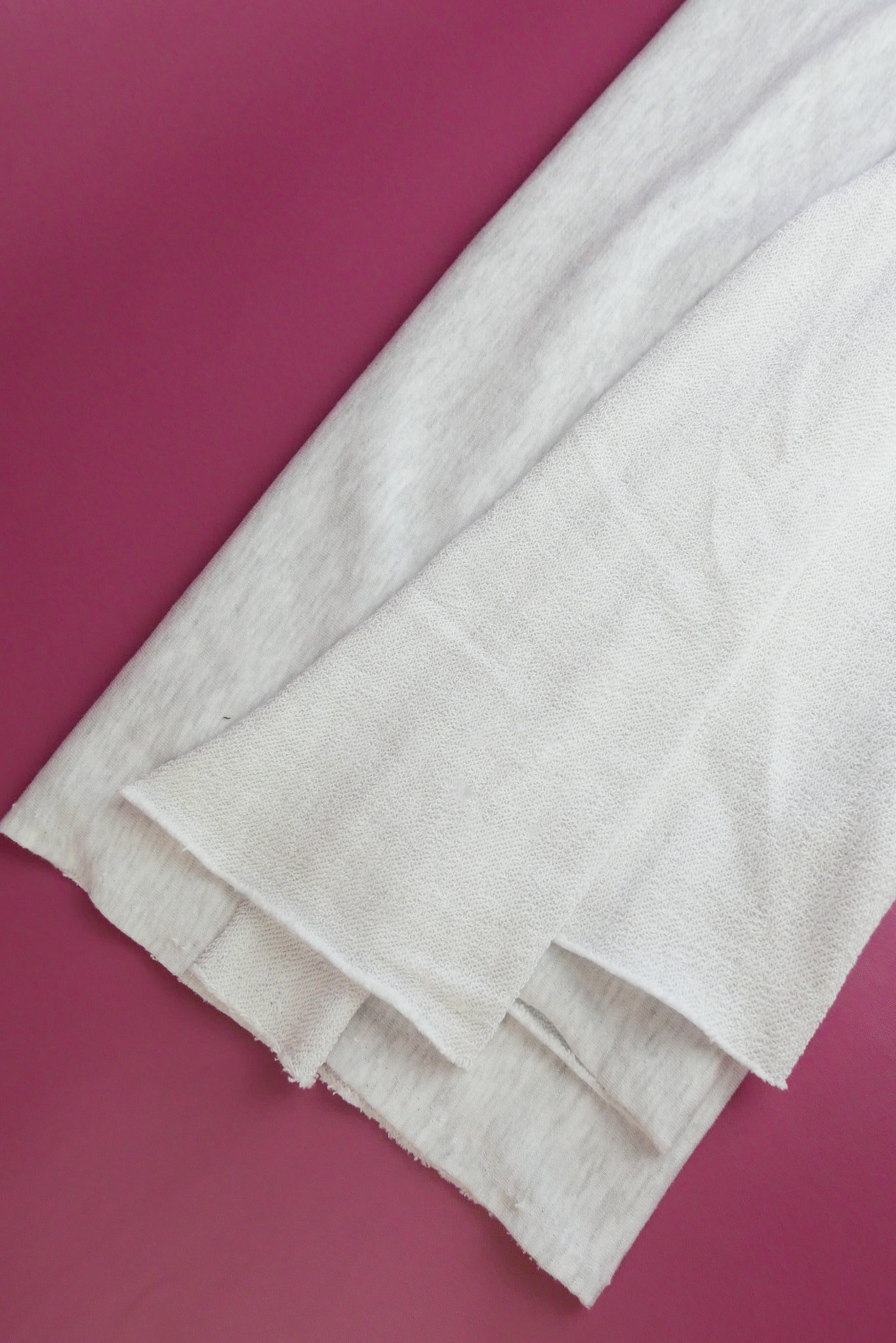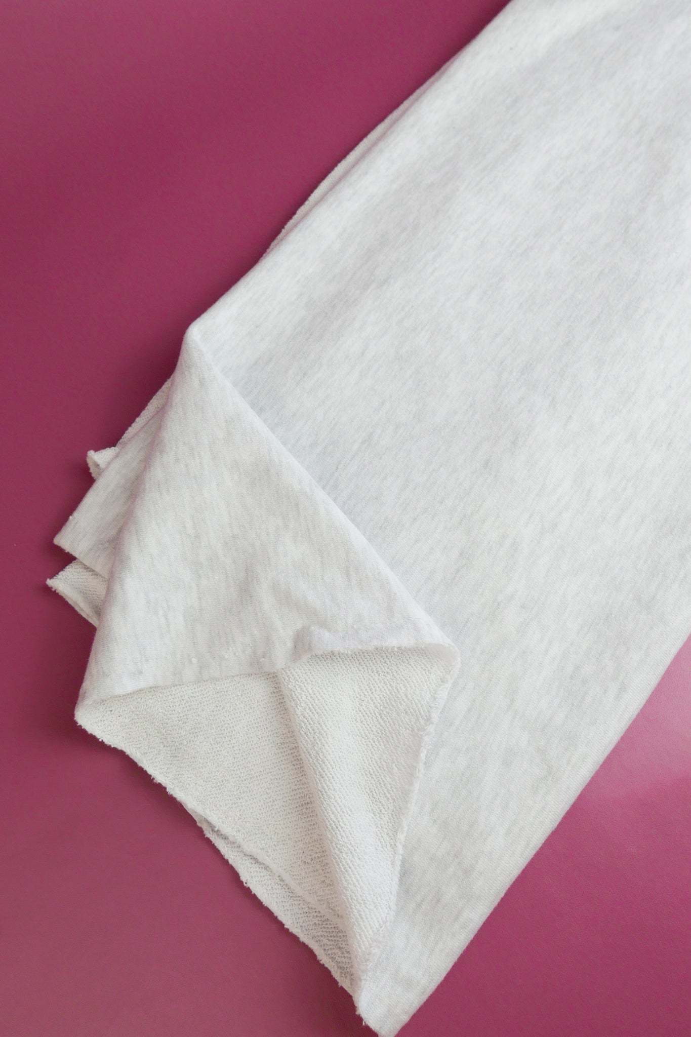 Our French Terry is a cosy midweight classic sweatshirting knit in snow with a loopback texture on the reverse side, and a superior soft ribbed texture on the right side. To top it off, this knit's generous width makes it a no-brainer for any project.