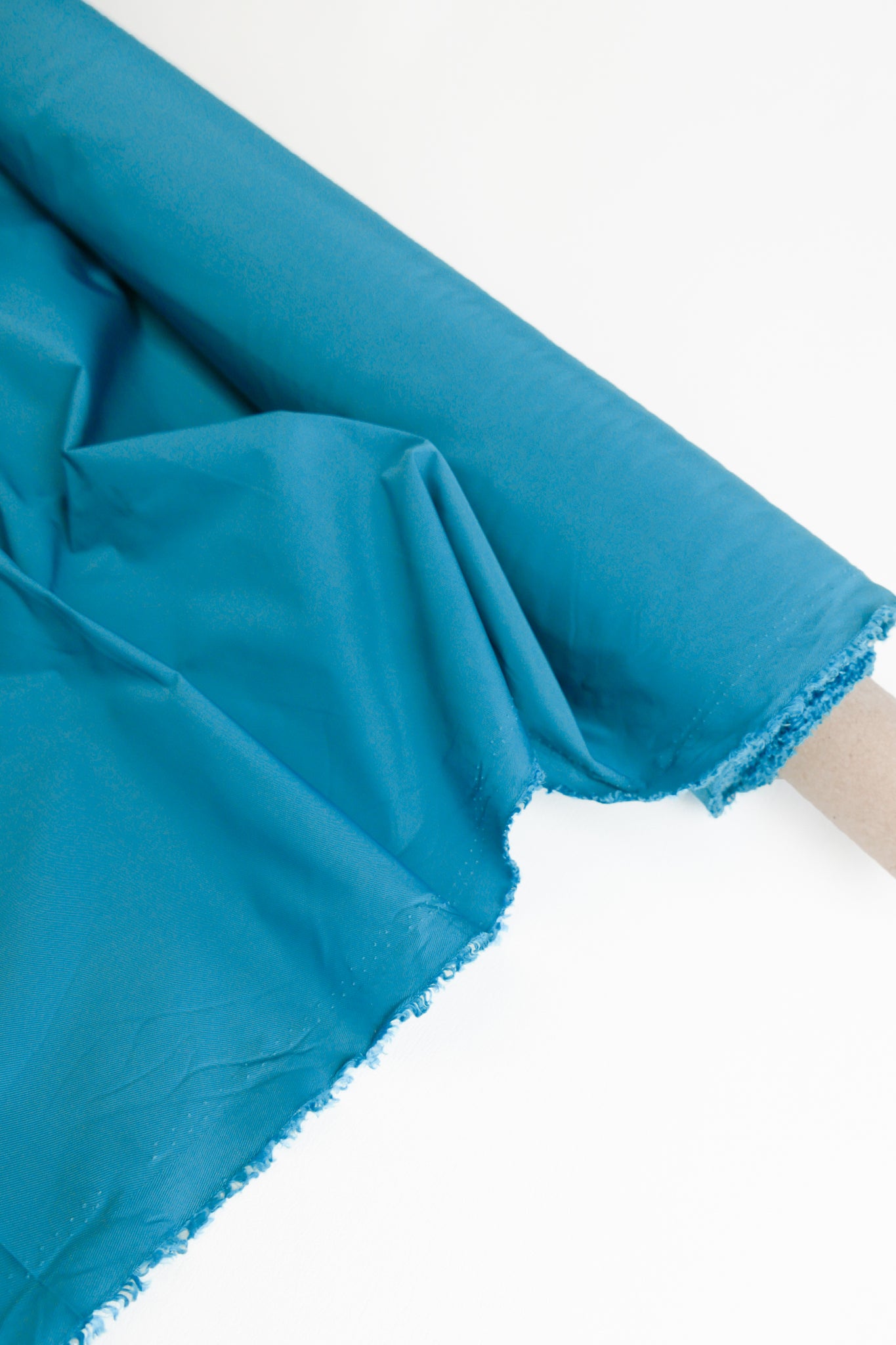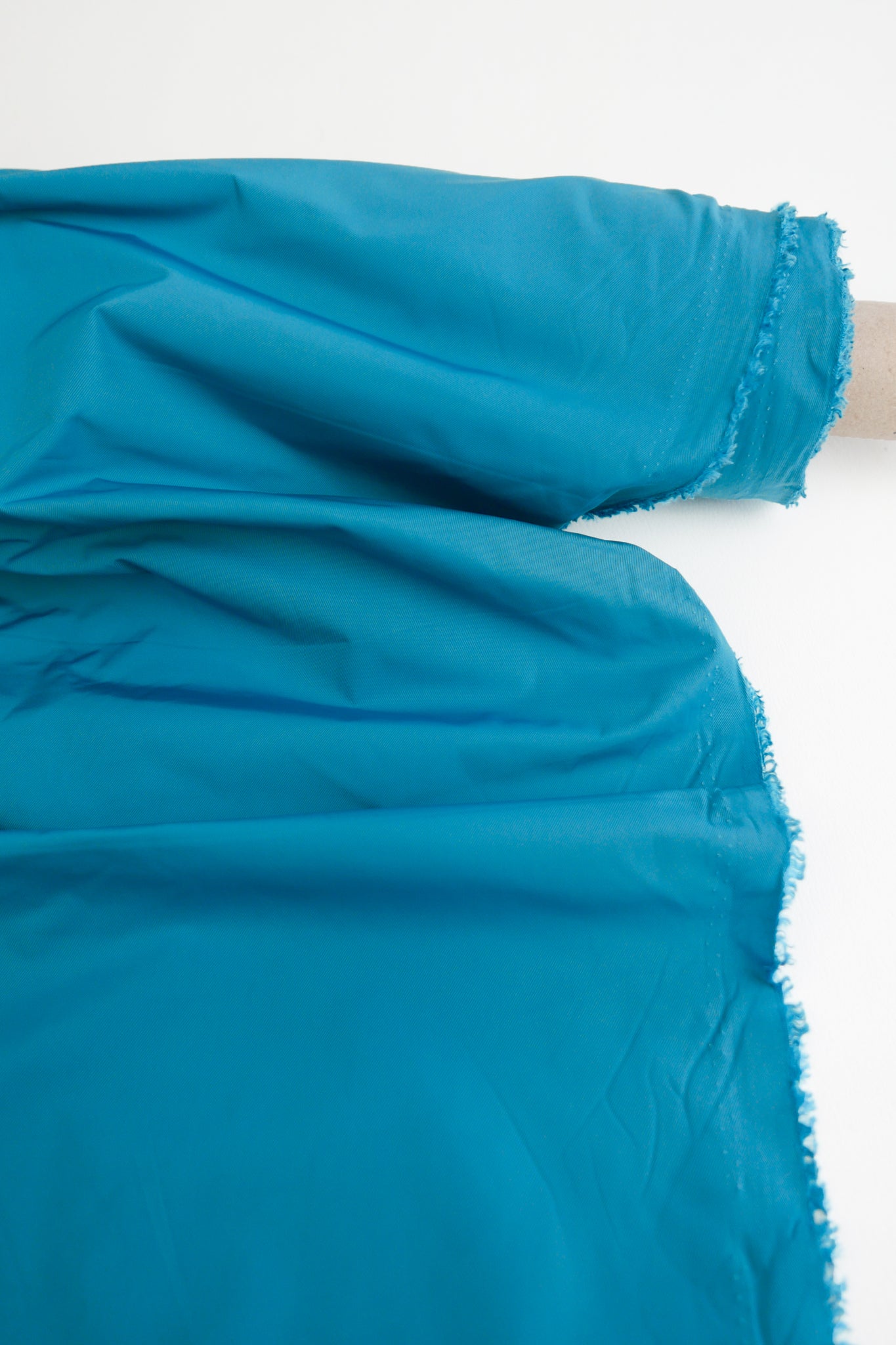 This is a beautiful waterproof nylon, featuring a classic twill weave and soft matte finish. Woven with a memory yarn, this fabric holds plenty of structure, folds and scrunches well, and is completely opaque. No water is getting through this fabric, with droplets cascading off and no residue left behind. Take advantage of this matte memory yarn by creating structured pieces such as trench coats, pleated skirts, corsets or couture styles.