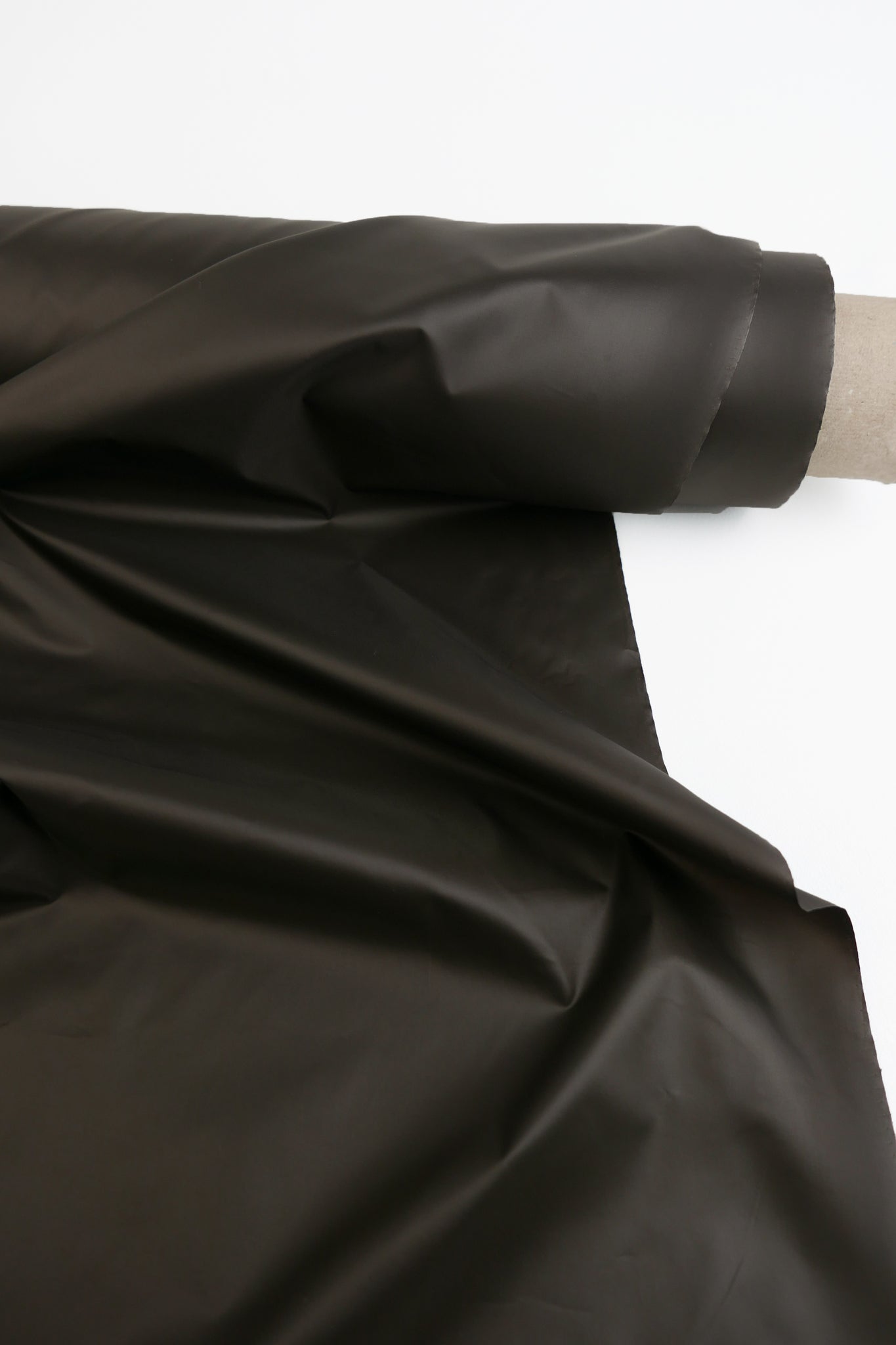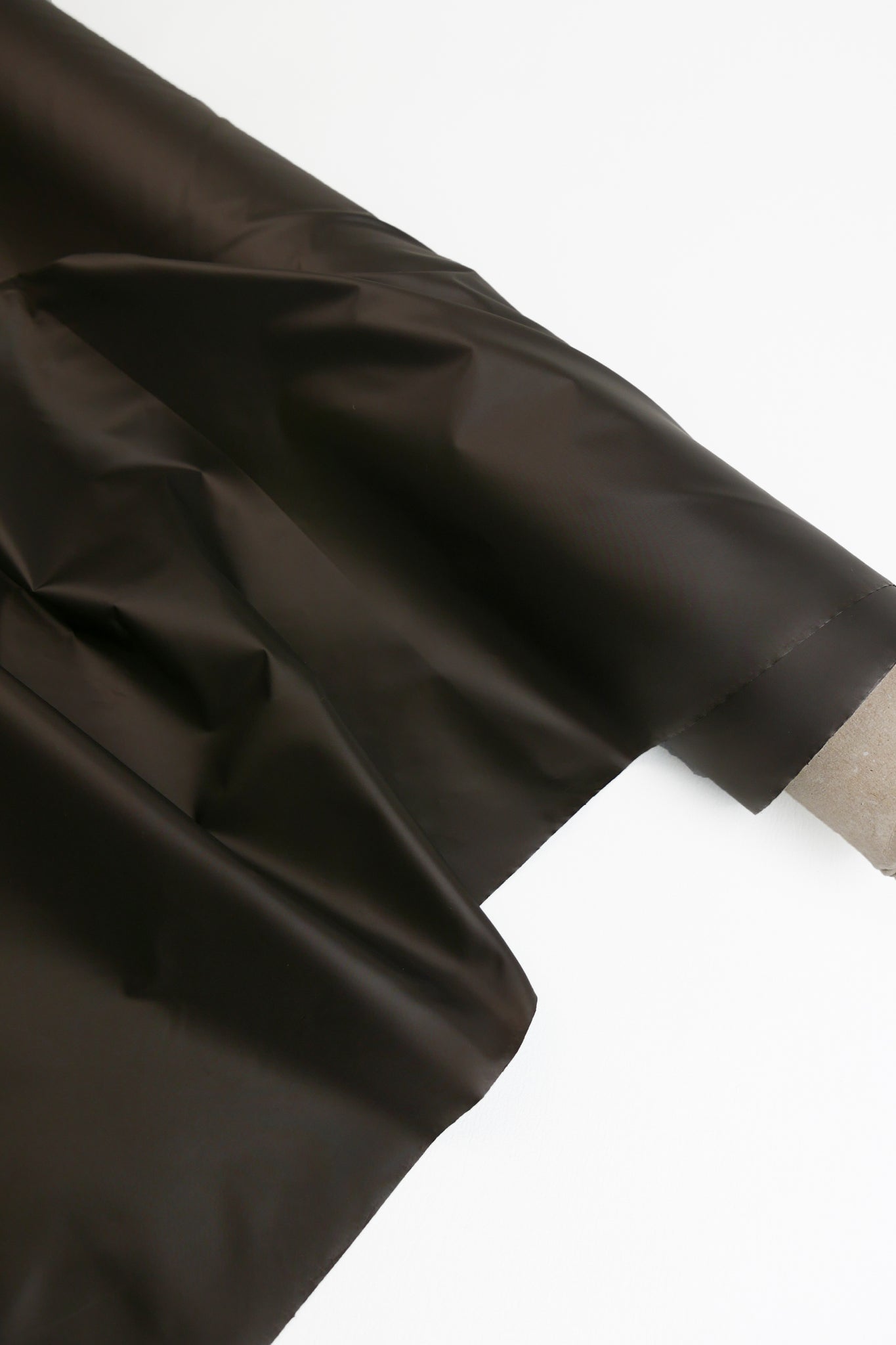 From famed Italian mill, Limonta, Trent is an innovative waterproof nylon in rich cocoa, featuring a soft, glow-like sheen. Designed for both performance and style, it offers excellent tear resistance and durability while staying lightweight and comfortable to wear. Water rolls off effortlessly, leaving no residue behind, making it ideal for unpredictable weather. Fully opaque with a clean, structured drape, it's well-suited for outerwear like trench coats, jackets, and utility pants, as well as weather-ready accessories like bags.