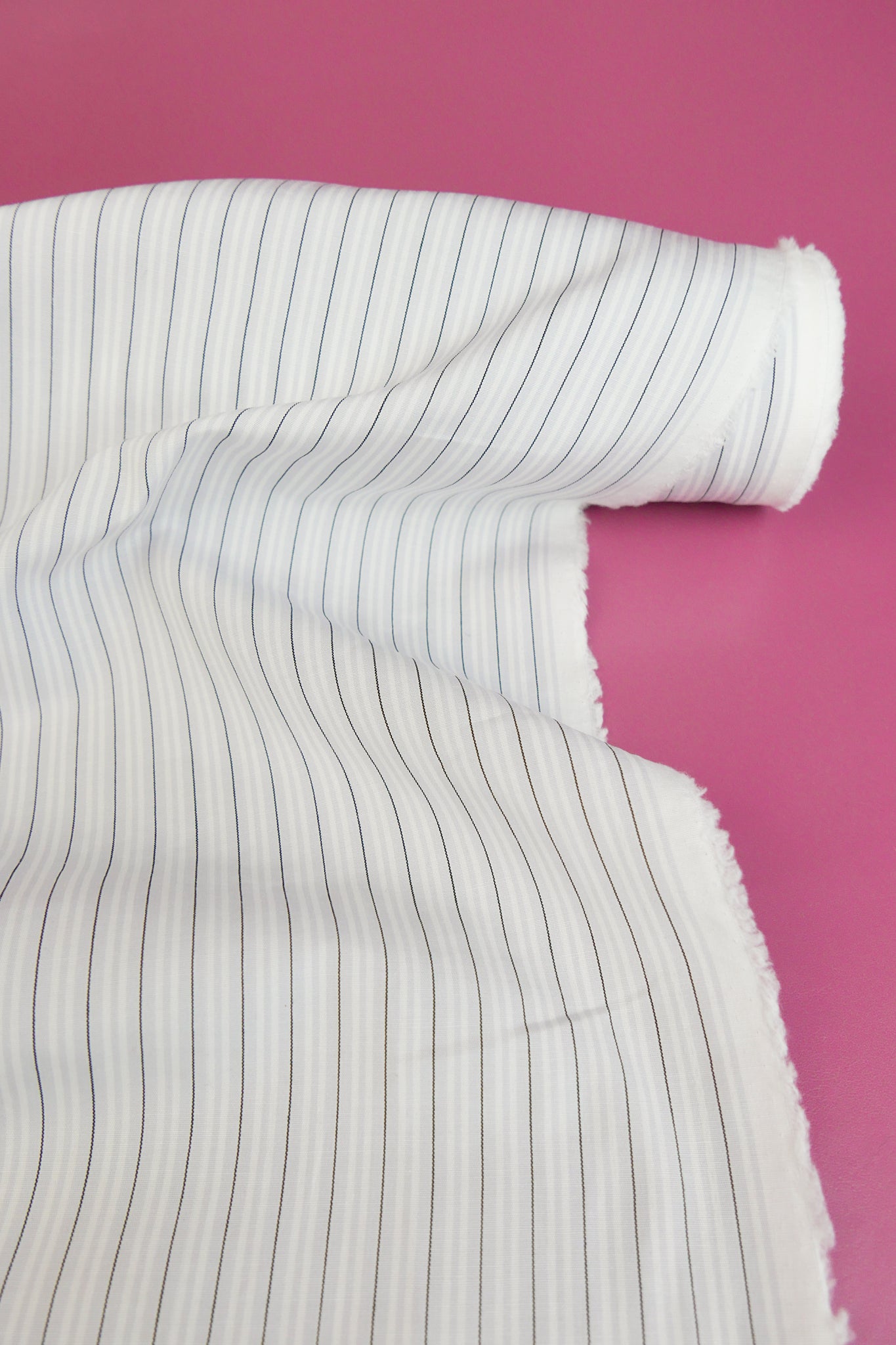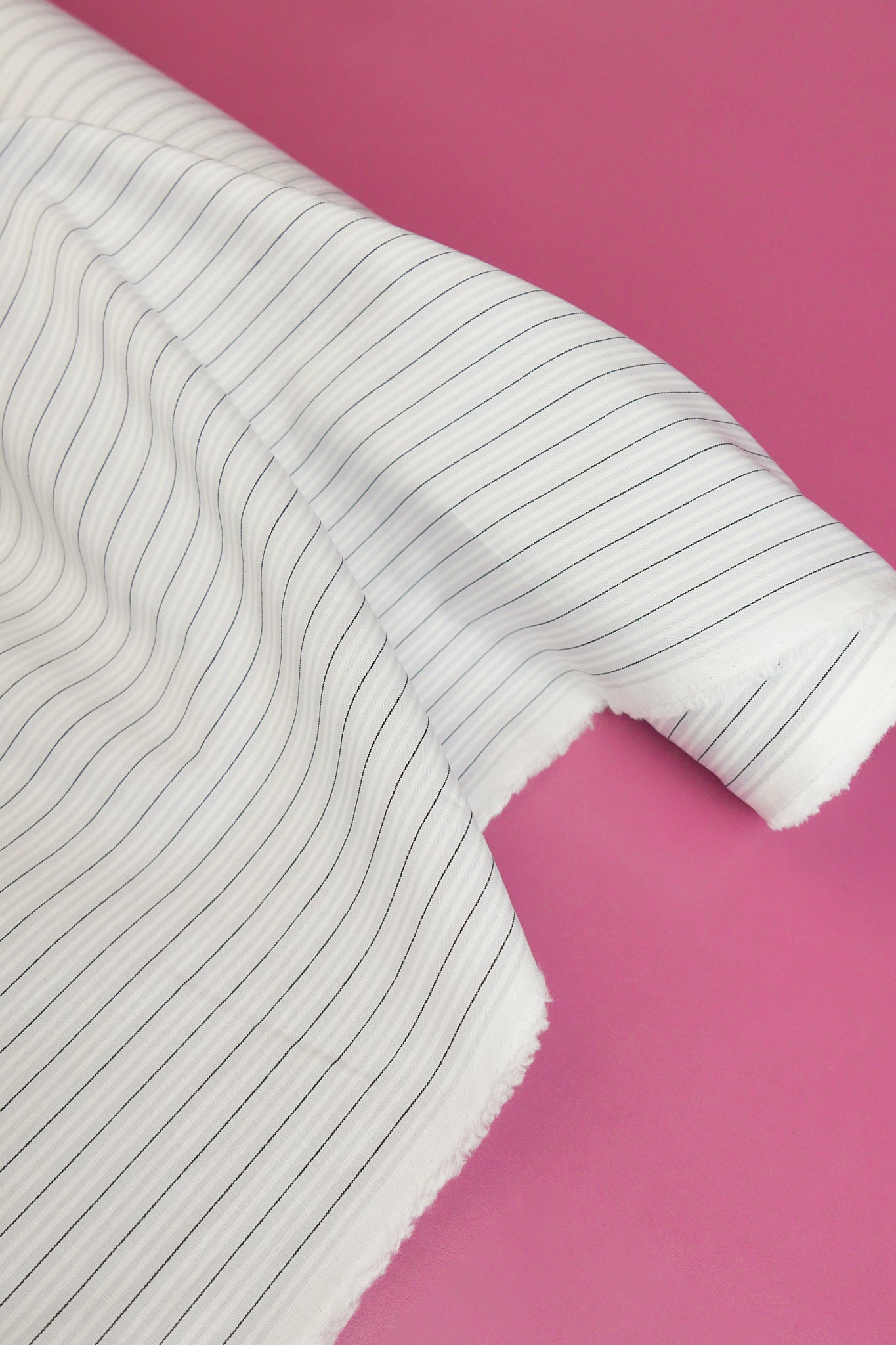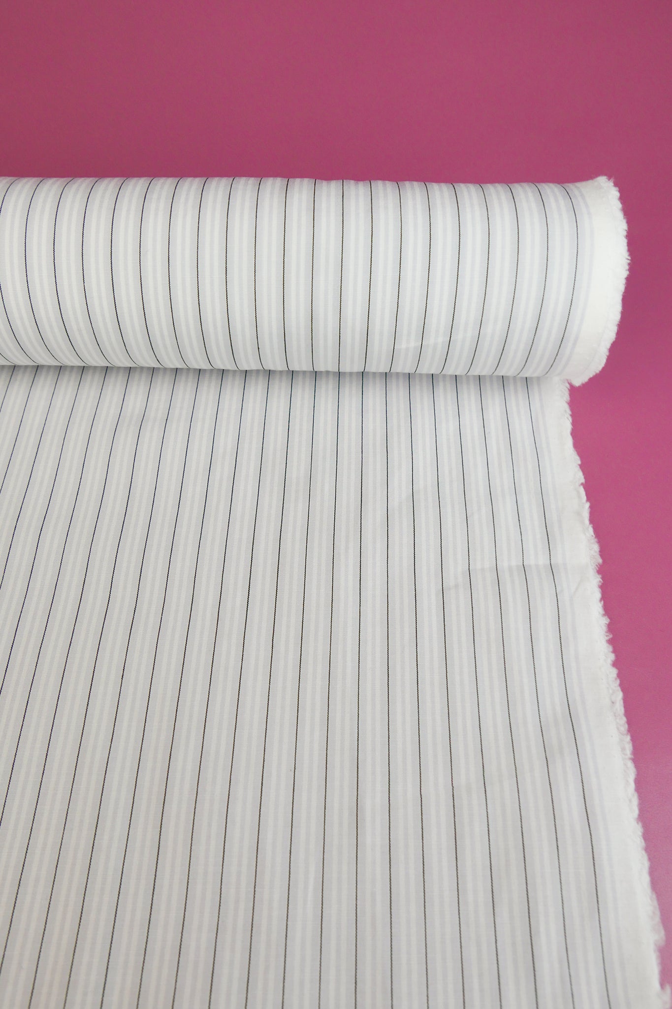 Daisy is a sublime linen cotton shirting, woven together by the finest shirting manufacturers in Japan. It comes in a classic yarn-dyed stripe design in stone, black on an off-white cloth. Lightweight and completely opaque, Daisy holds good structure, and will make into beautiful silhouettes with gathers, puffs and volume. This yarn-dyed shirting would make a beautiful shirt, summer-weight pant, skirt or dress.
