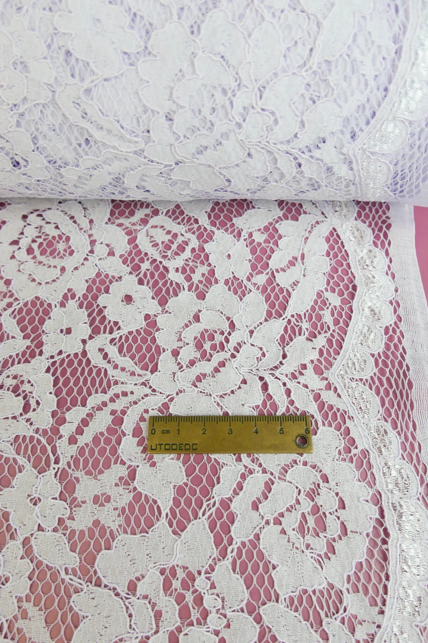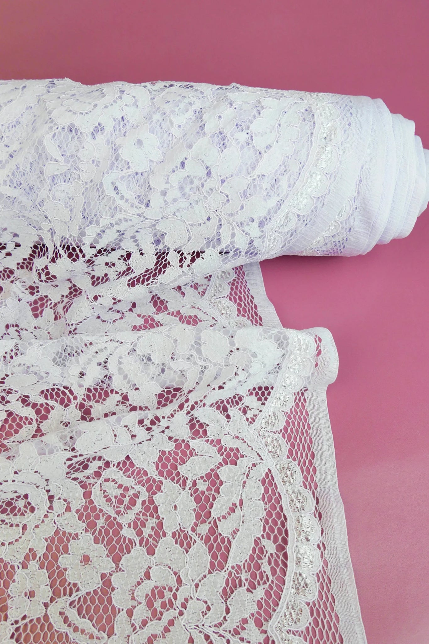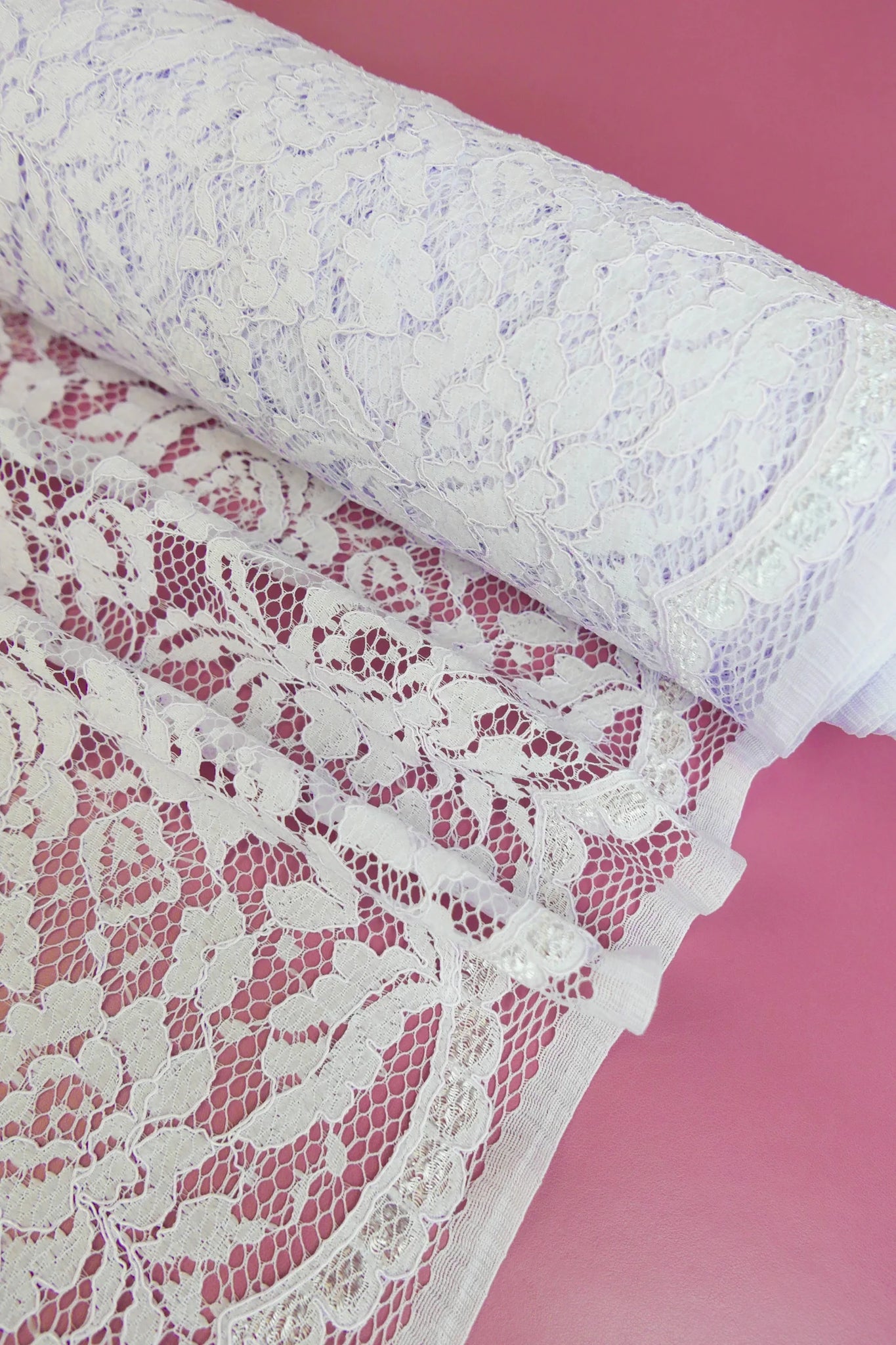 Also called "the Queen of lace", Alençon lace is known for its intricate design with a corded outline set on a netted base. Our Dita lace features a delicate floral design in a light lilac colourway. Beautifully tactile, it has mechanical stretch and scalloped edging along one selvedge. Dita would make a stunning layering piece, bridal wear or even a lace slip.