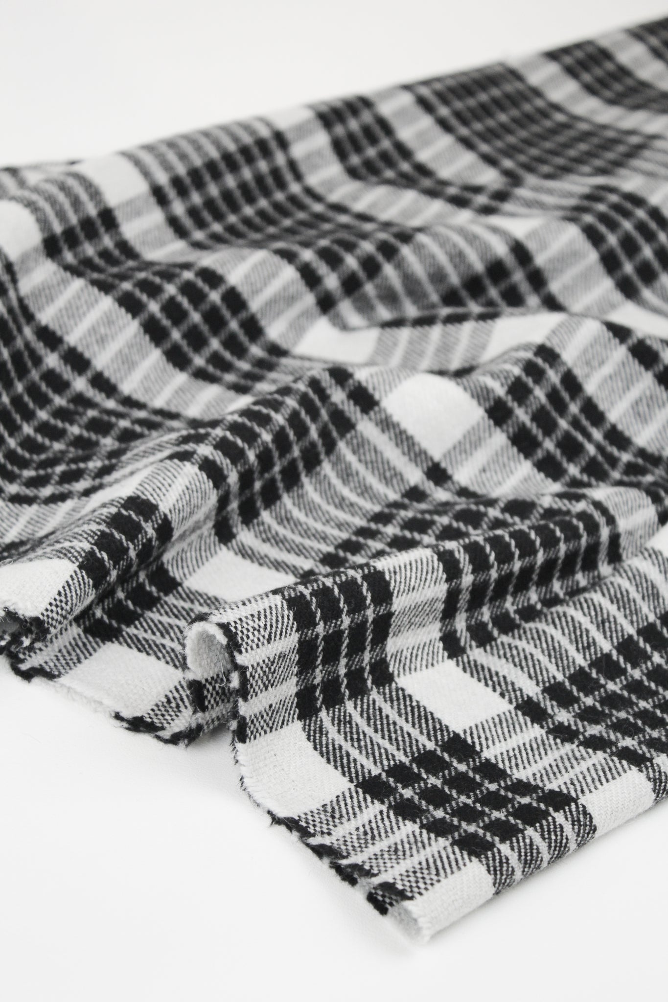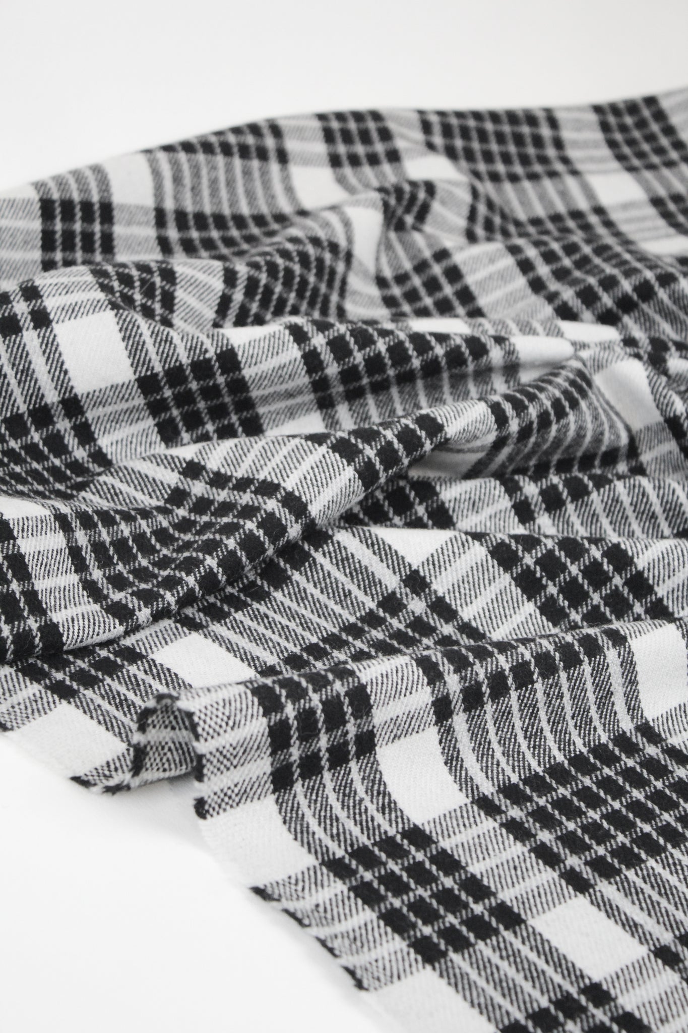 Aosta is a wonderful wool coating featuring a woven plaid design in grey and white against a black base cloth. It's mid-weight, has a good structured drape, and would make up into an incredible winter jacket or coat.