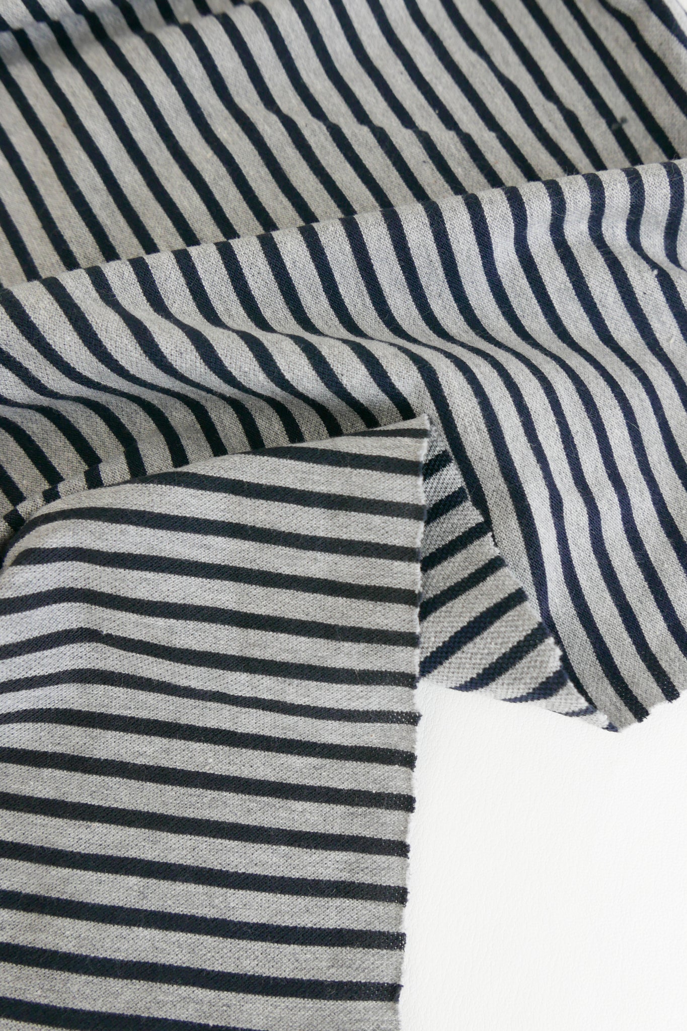 Lacoste Stripe is an Australian-made pure cotton knit featuring a stripe design in stone grey and deep charcoal. It is combed cotton, which is made by passing cotton fibres through a combing machine, removing short fibres and impurities and resulting in a higher-grade, softer, stronger cotton. Anti-fuzz and anti-pill, completely opaque and midweight, Lacoste Stripe is perfect for tees, t-shirt dresses, turtlenecks, polos or baby clothes.