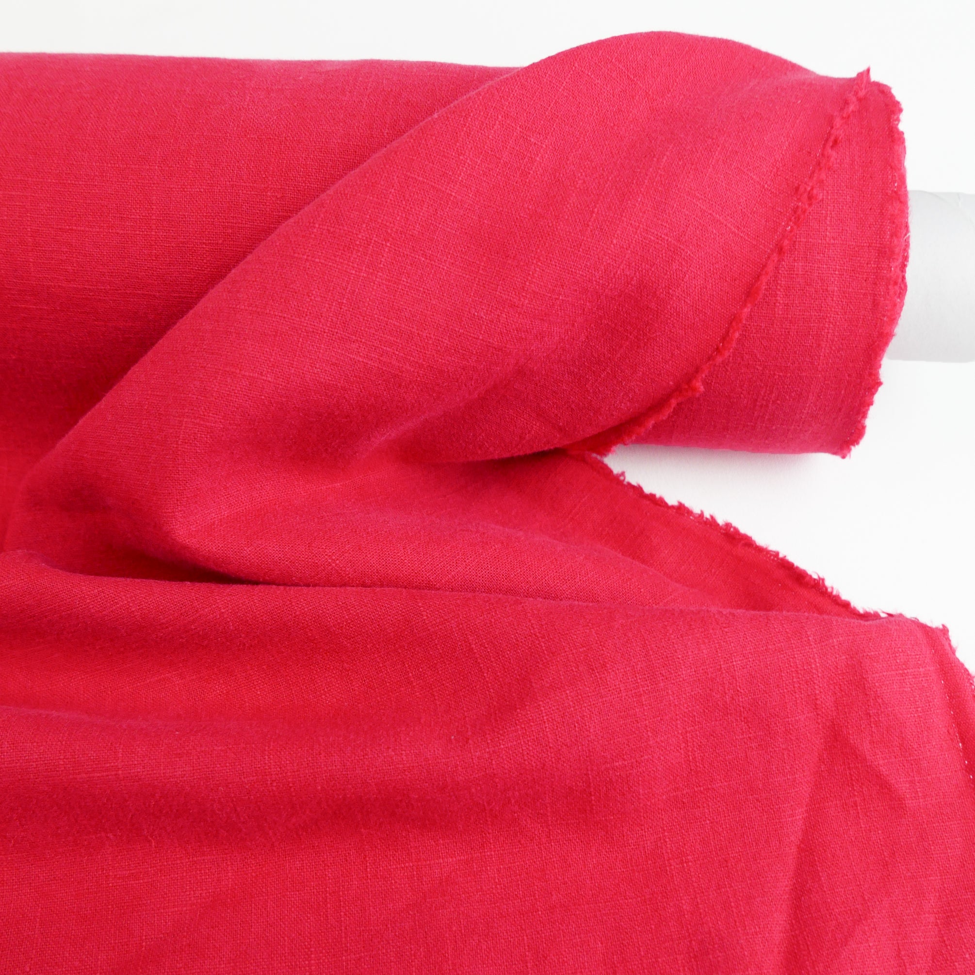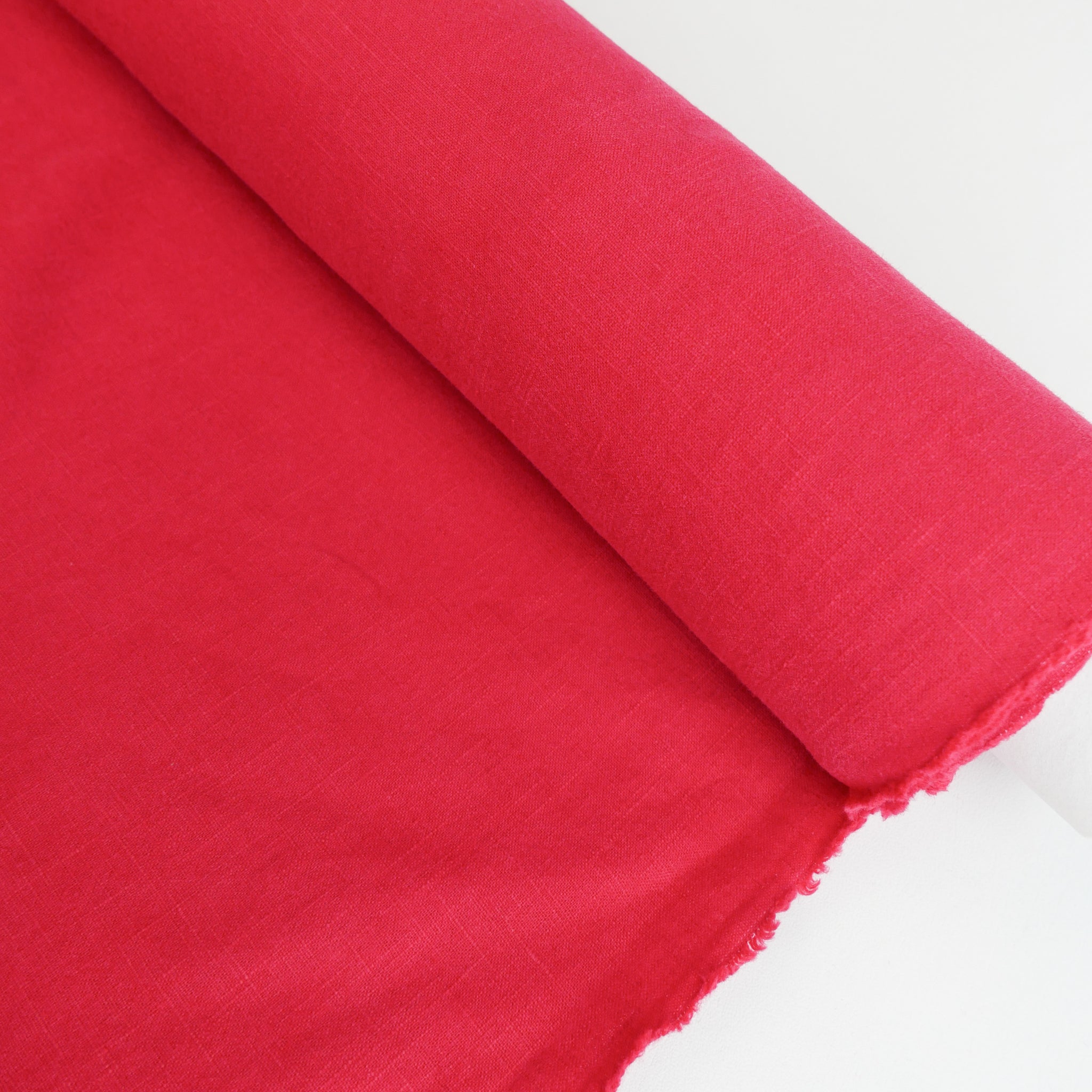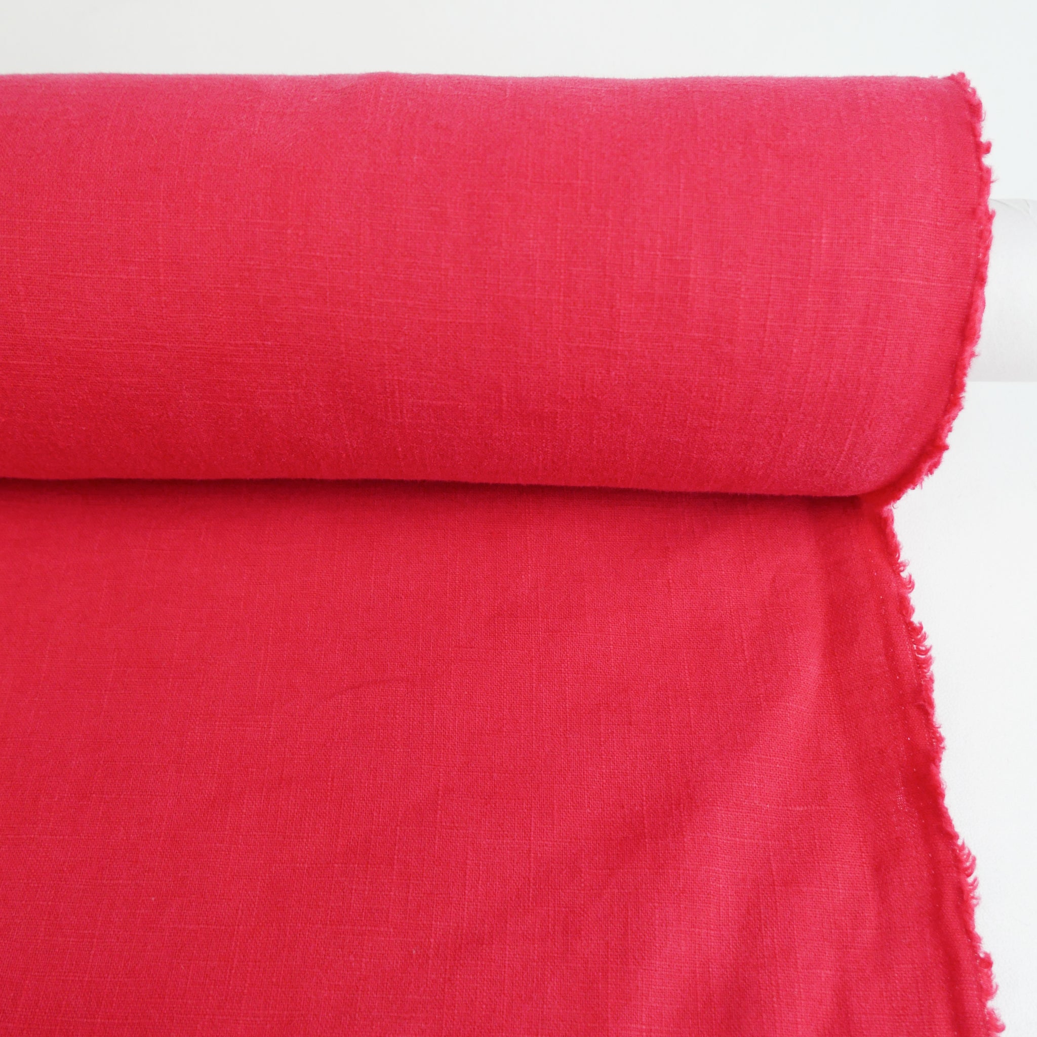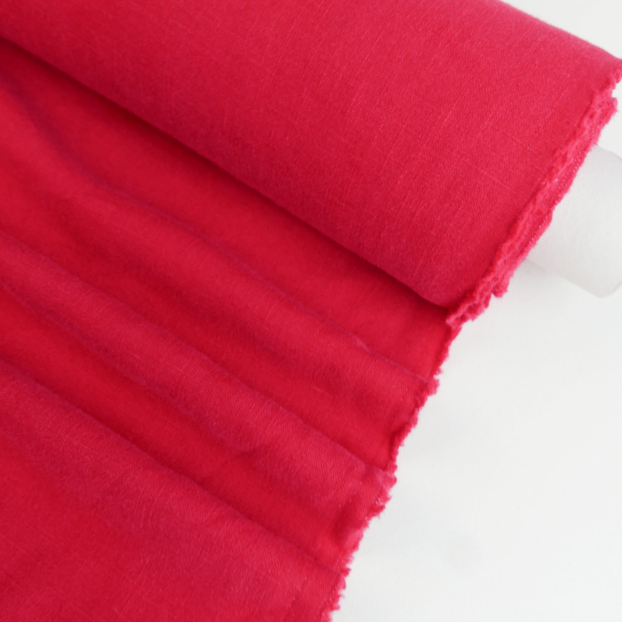 Jill is your new favourite heavyweight linen. With a crosshatch weave, it's available in strawberry. Jill is really special as the yarn is dyed first and then woven together ensuring deeper, richer colours complete with a lovely washer finish. A delicious wide width with visible grain and slub, it's completely opaque and holds plenty of structure. It's waiting to be made into a fabulous linen suit, dress or everyday wide-leg pant. Also suitable for homewares.
