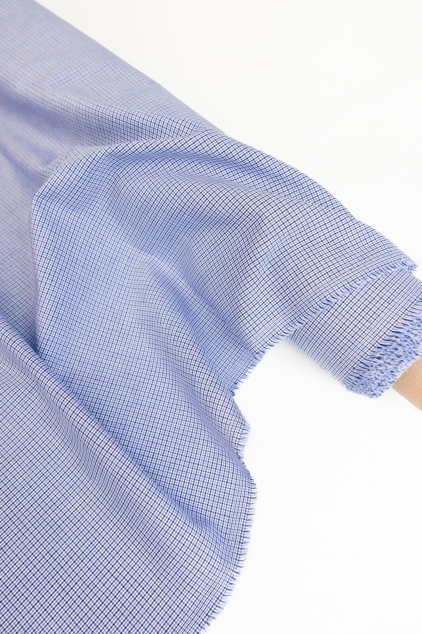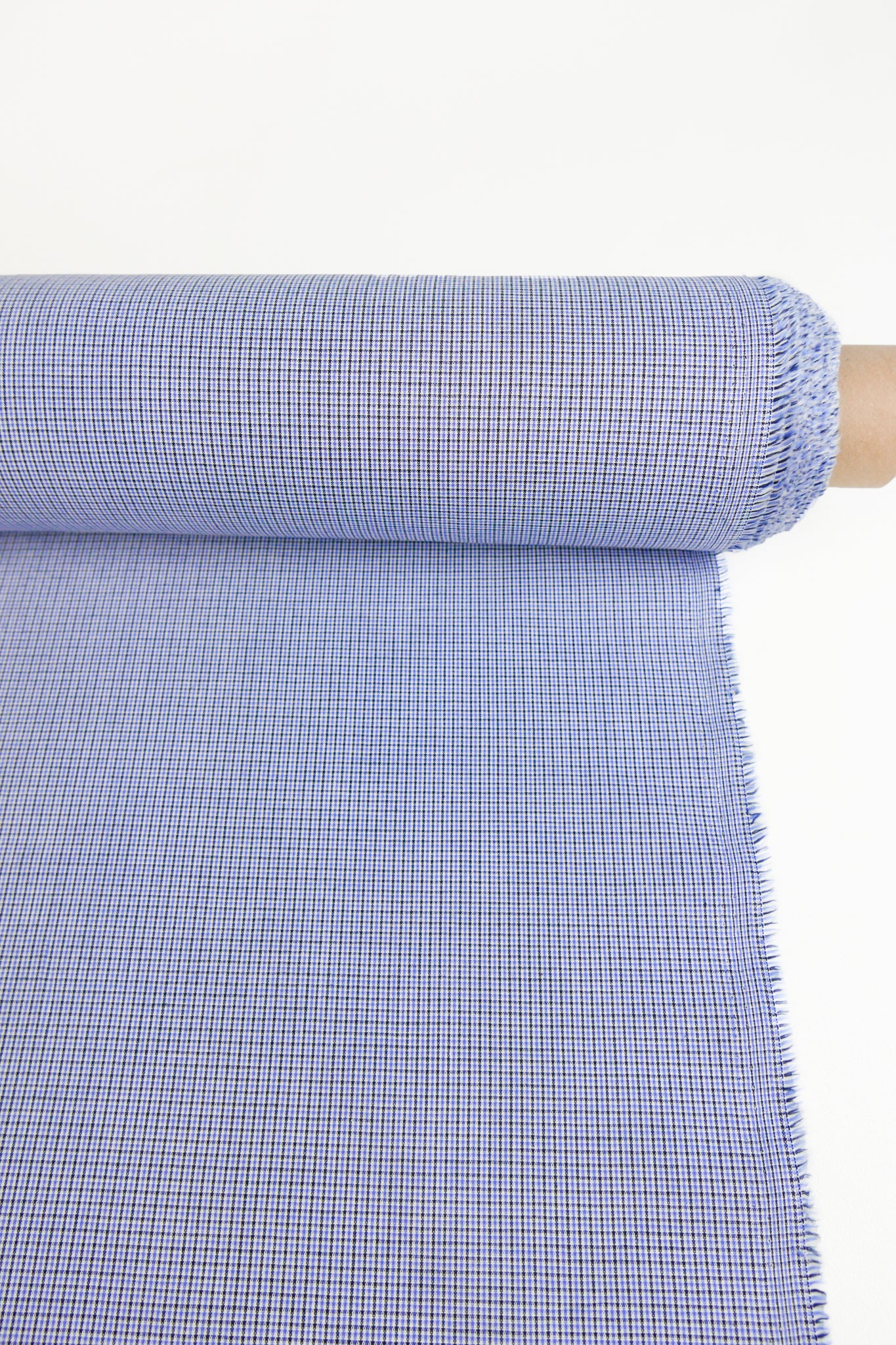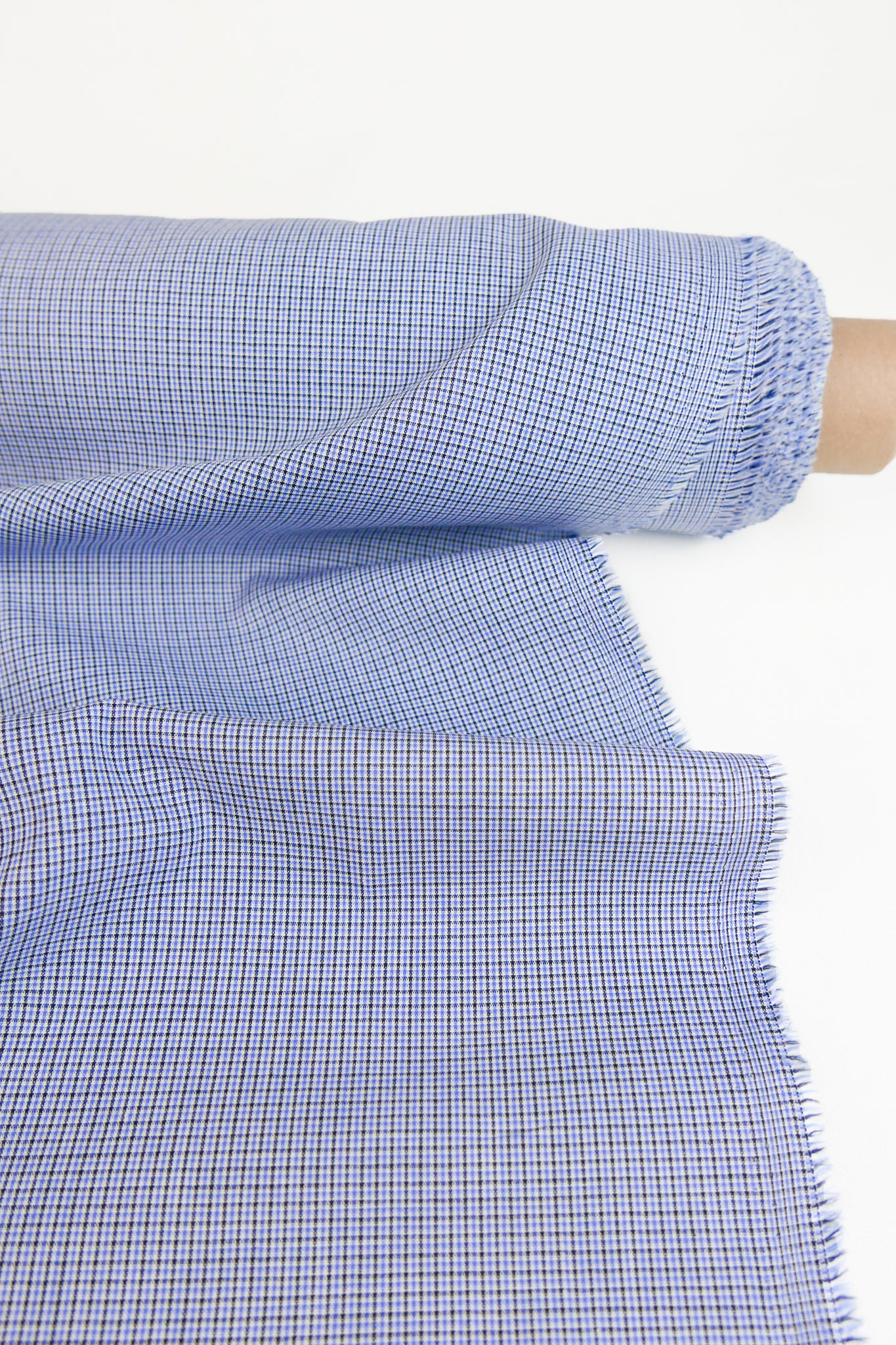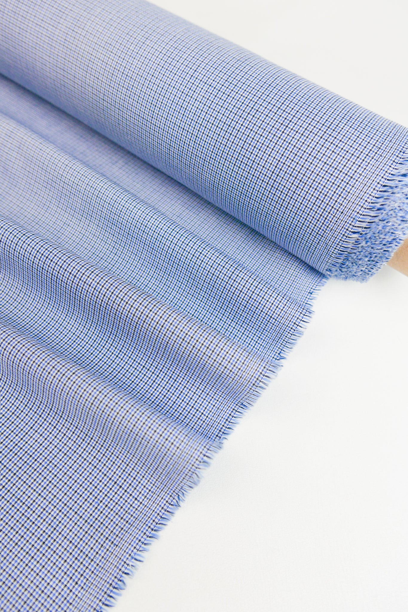Aidan is a pure cotton shirting coming in a classic yarn-dyed check design in sky blue and black on an off-white cloth. Lightweight and completely opaque, Aidan holds good structure and will make into beautiful silhouettes with gathers, puffs and volume. This yarn-dyed cotton would make a beautiful shirt, summer-weight pant, skirt or dress.