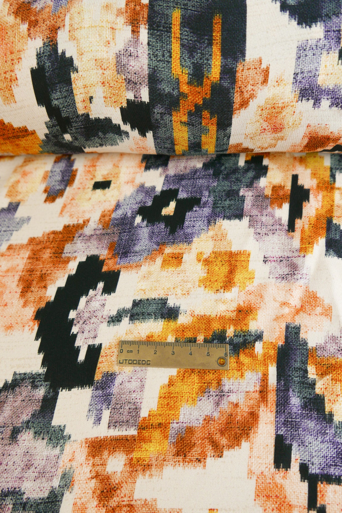 Featuring a striking abstract geometric design, this viscose print is made up of many different colours, making for a fun colour-matching outfit. Fully opaque and with a beautiful drape, it has a soft sheen on the face. It is perfect for dresses, tops and skirts, or lightweight jackets and trousers that don't require a lining.