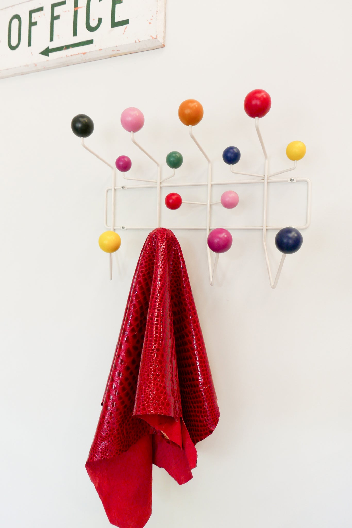 A Drapers staff favourite, this is a very special Italian lamb hide. With a shiny, laminated finish in cherry red croc and a smooth suede on the reverse, it is lightweight and holds structure beautifully. Pliable and soft, it's perfect for eventwear, accessories, bags and more.