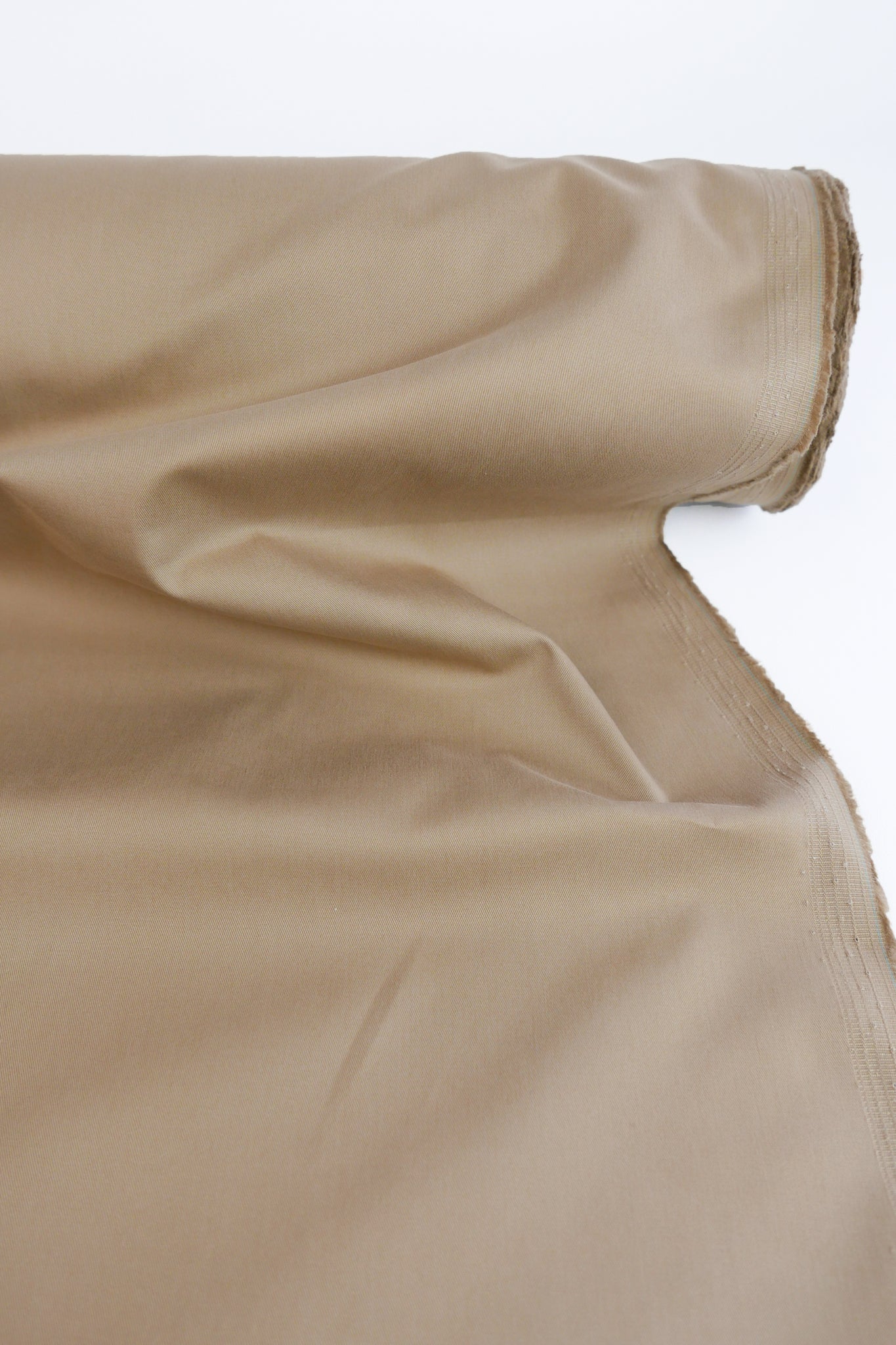 From the innovative Italian mill, Beste, Ripicca is a high-quality pant-weight cotton with a refined drill and a subtle peach finish. It comes in a camel colourway, with a super soft handle. Its slight stretch and medium weight make Ripicca an insanely versatile fabric. It would make a beautiful pair of utility pants, a matching jacket, a trench coat or a classic dress.