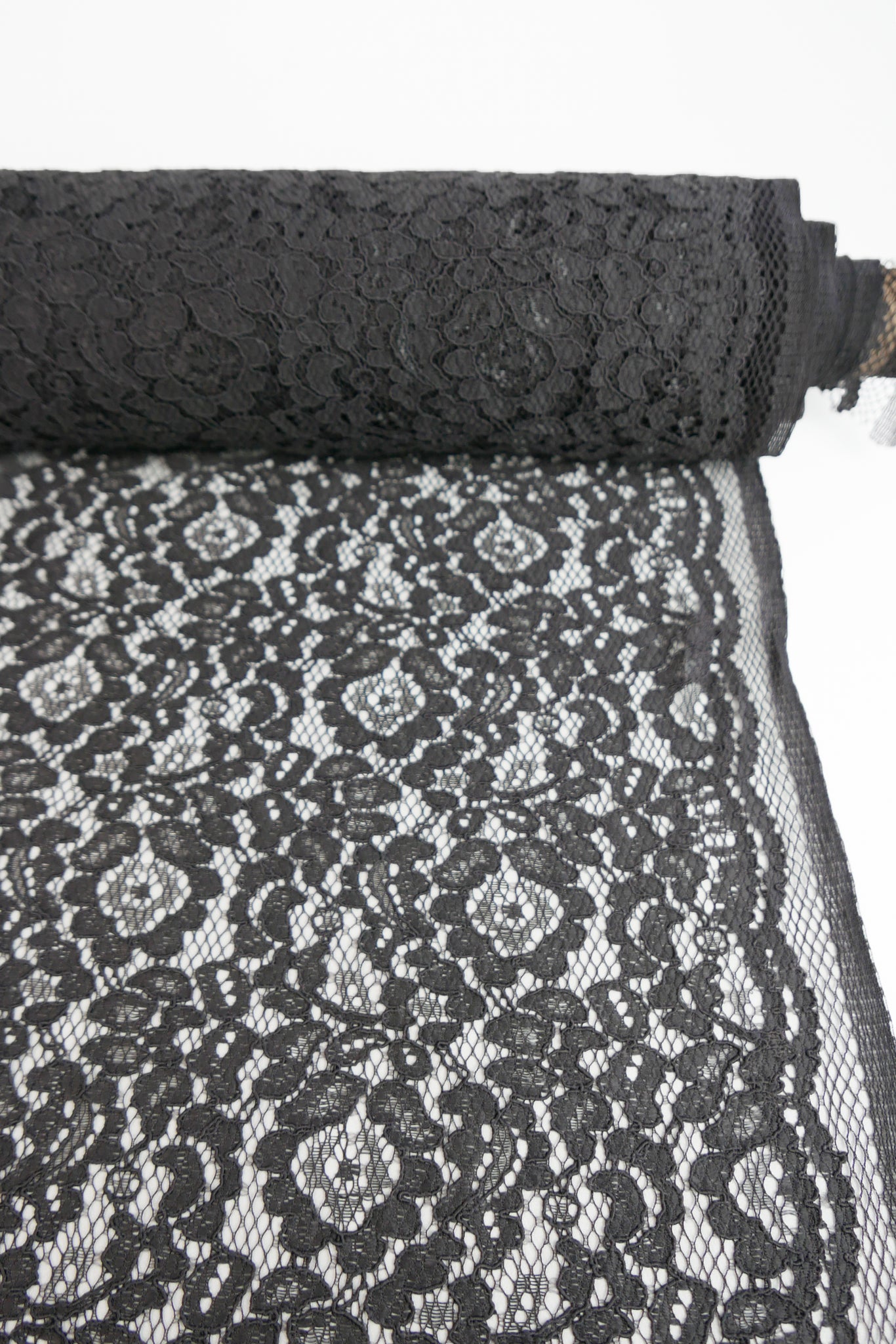 Also called "the Queen of lace", Alençon lace is known for its intricate design with a corded outline set on a netted base. Our Dita lace features a delicate floral design in a charcoal colourway. Beautifully tactile, it has mechanical stretch and scalloped edging along one selvedge. Dita would make a stunning layering piece, bridal wear or even a lace slip.