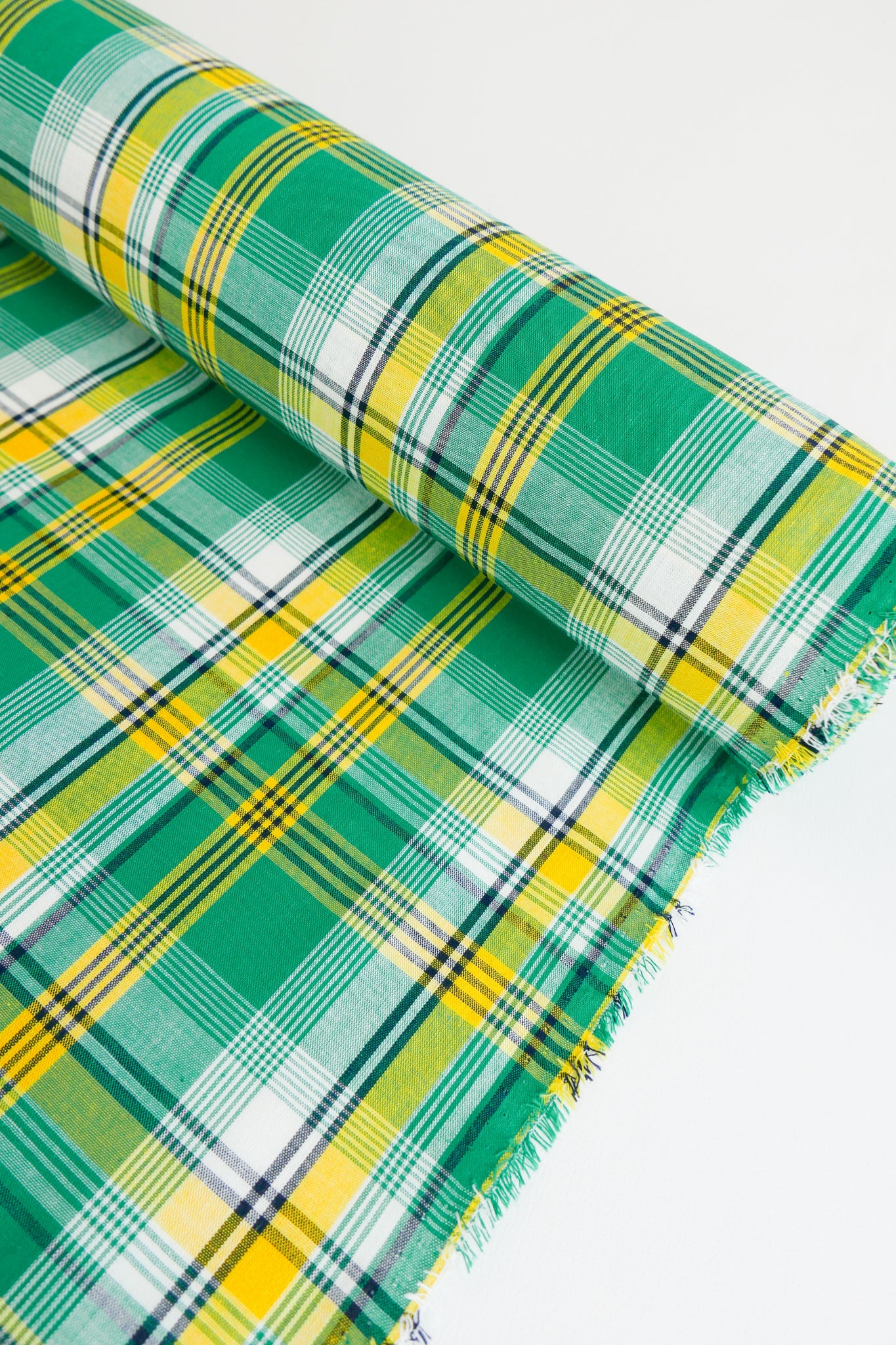 Madras is a zesty yarn-dyed linen with a vibrant check design in green, yellow, off white and deep navy. Madras Check is special as it is yarn dyed, which means the yarn is coloured before being woven rather than top dyed. This gives it a true colour which fades a lot less over time and ensures deeper, richer colours. Lovely and midweight, it's completely opaque and holds plenty of structure. Madras Check would make a perfect skirt, dress or shirt.