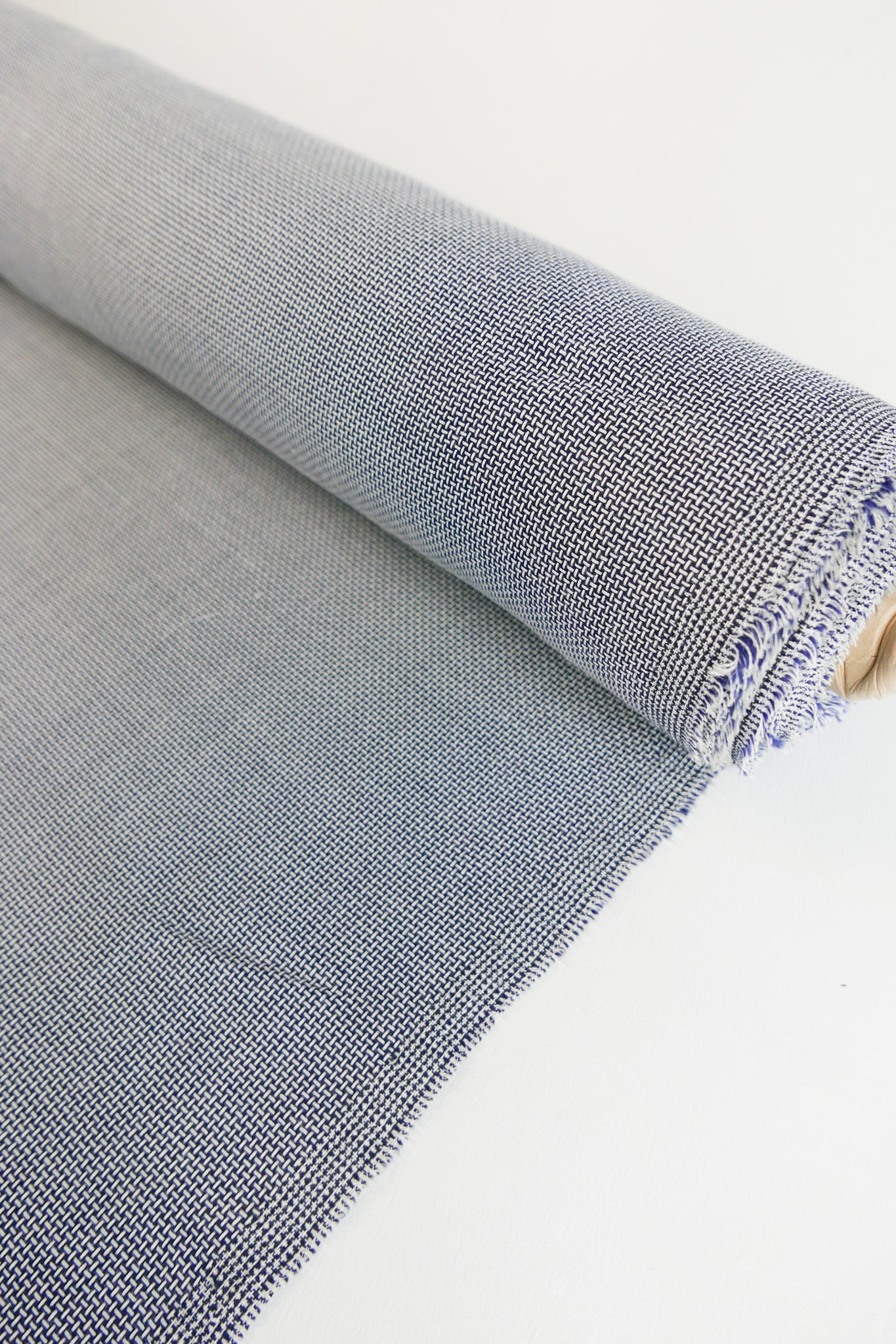Salto is a beautifully textured linen cotton blend with a basket weave in deep navy and off-white threads. Midweight and of a beautiful Uruguayan quality, it is completely opaque and holds softly structured drape. Salto is waiting to be made into a fabulous linen suit, dress or everyday wide-leg trouser. Also suitable for homewares.