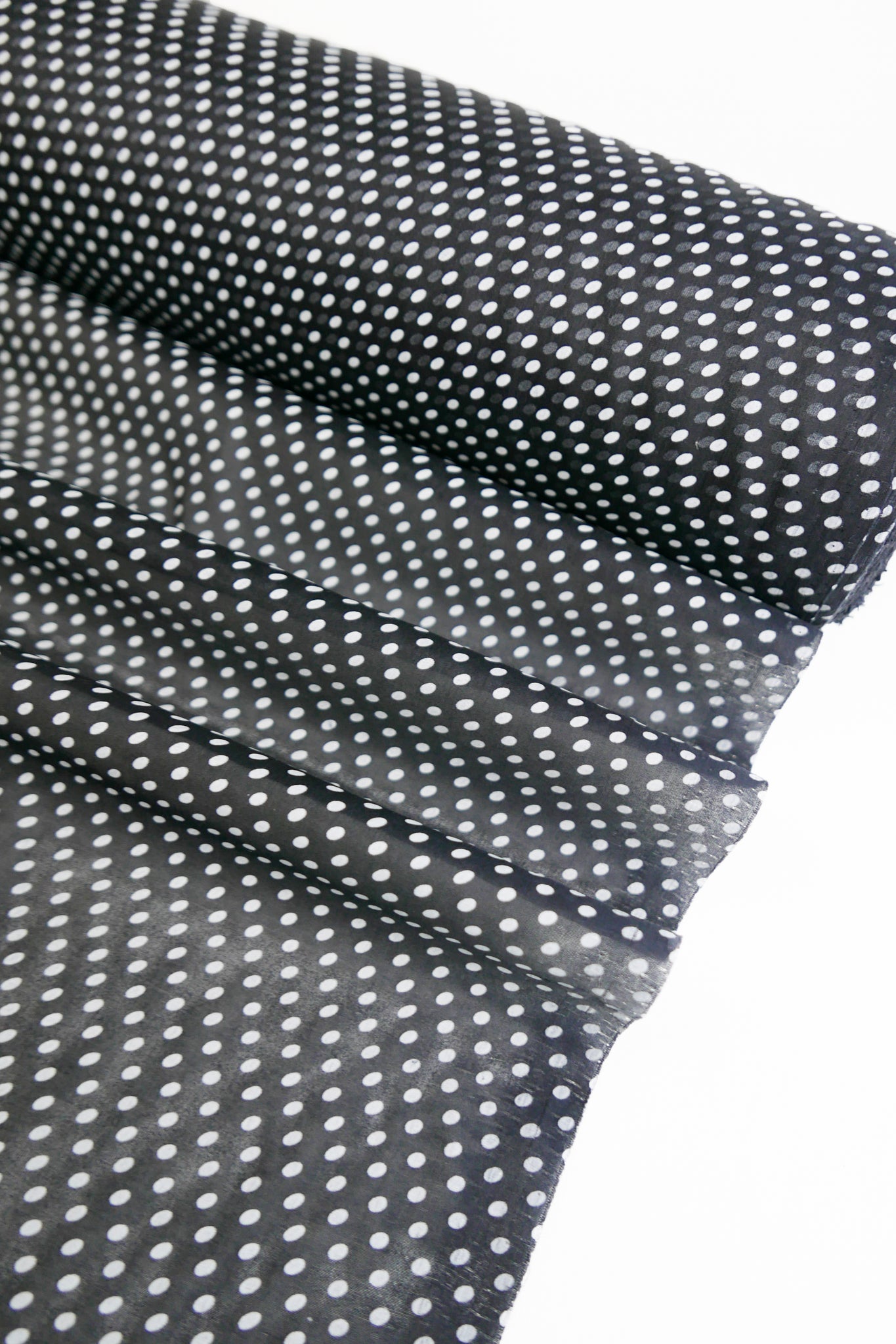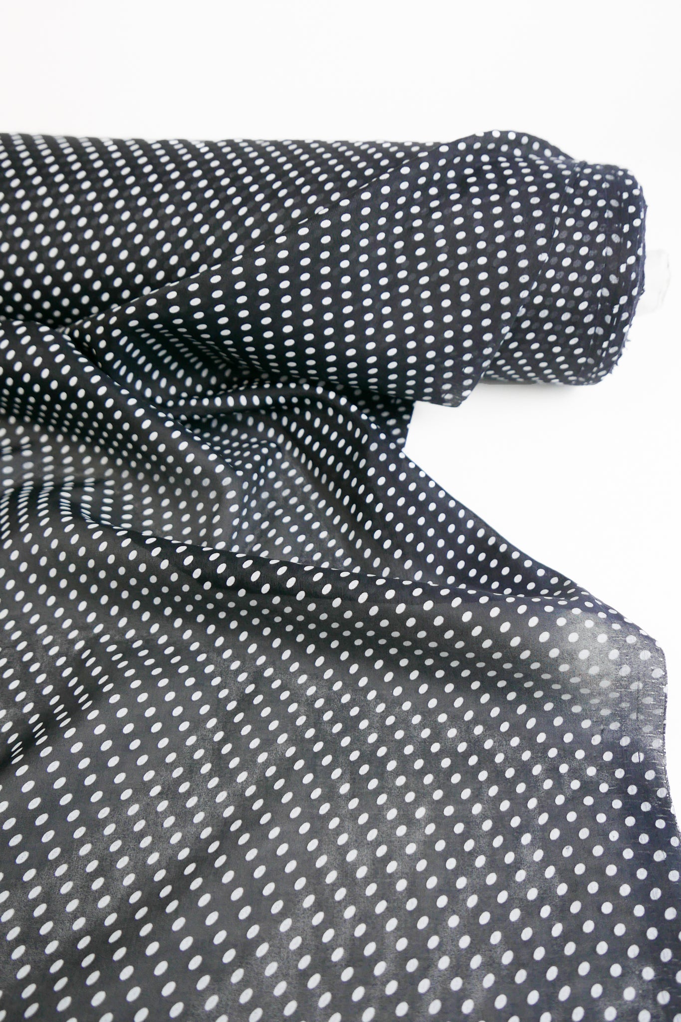 This beautiful silk cotton georgette is super fine and delicate, and features a timeless mini spot design in off-white on a black base cloth. Lightweight, super floaty and sheer, it's the perfect blouse weight, or line your summer skirts and dresses for a super luxe feel.