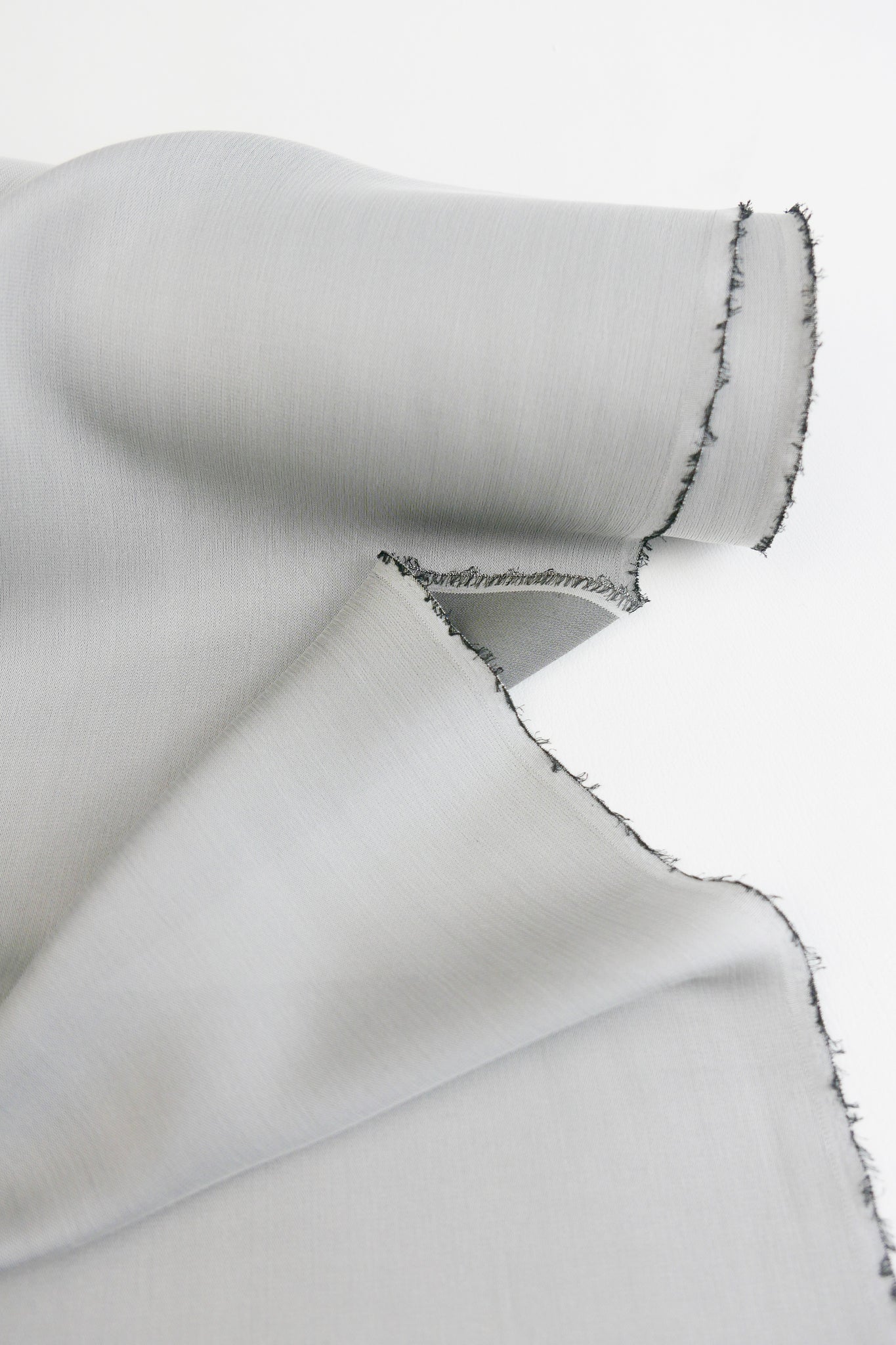 This elegant silk chiffon is double-faced, offering the choice between a silvery light grey and a deeper stormy steel colourway. Lightweight and fine, it is luxuriously delicate and has a soft, muted sheen. Floaty and sheer, it's the perfect blouse weight, or line your summer skirts and dresses for a super luxe feel.