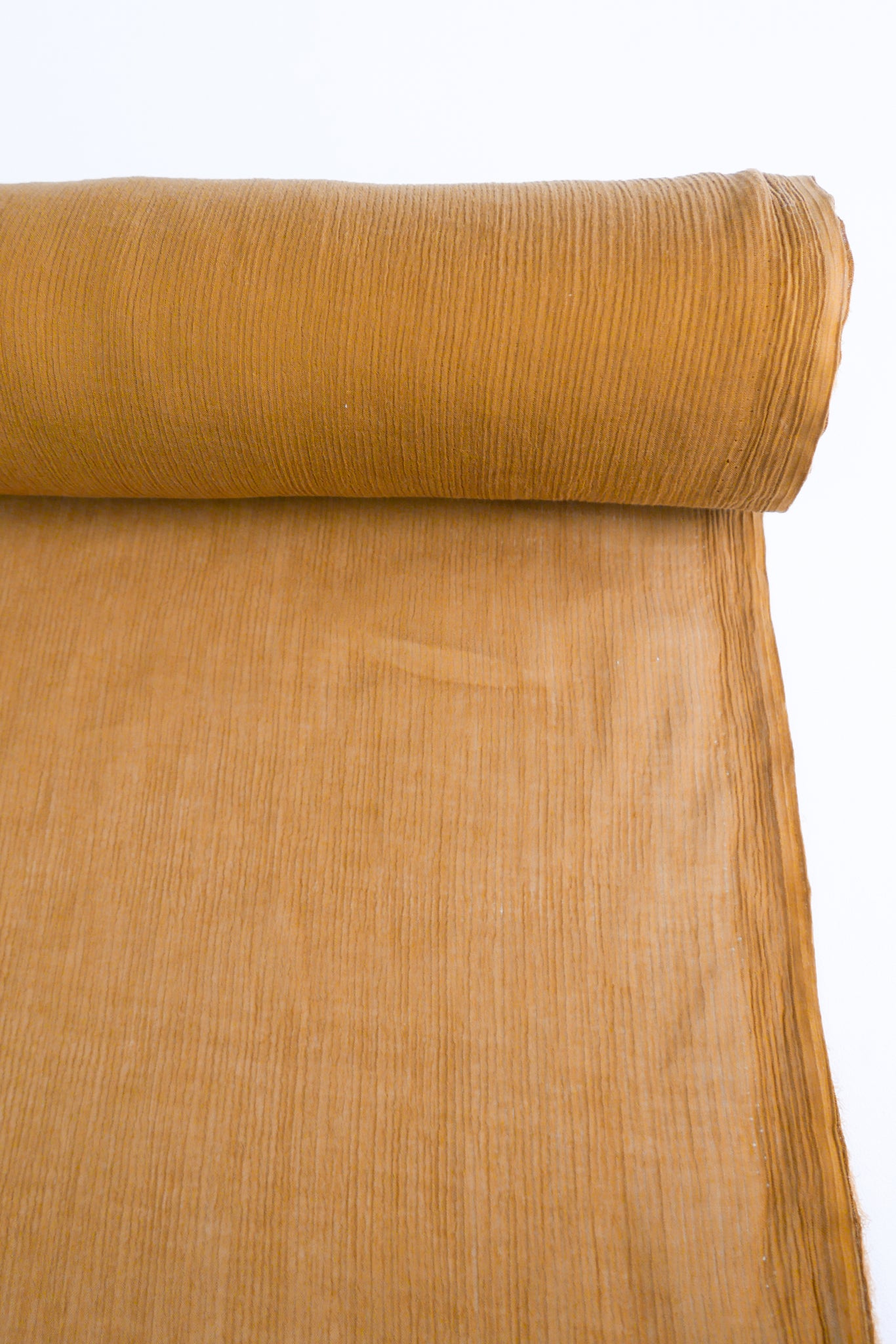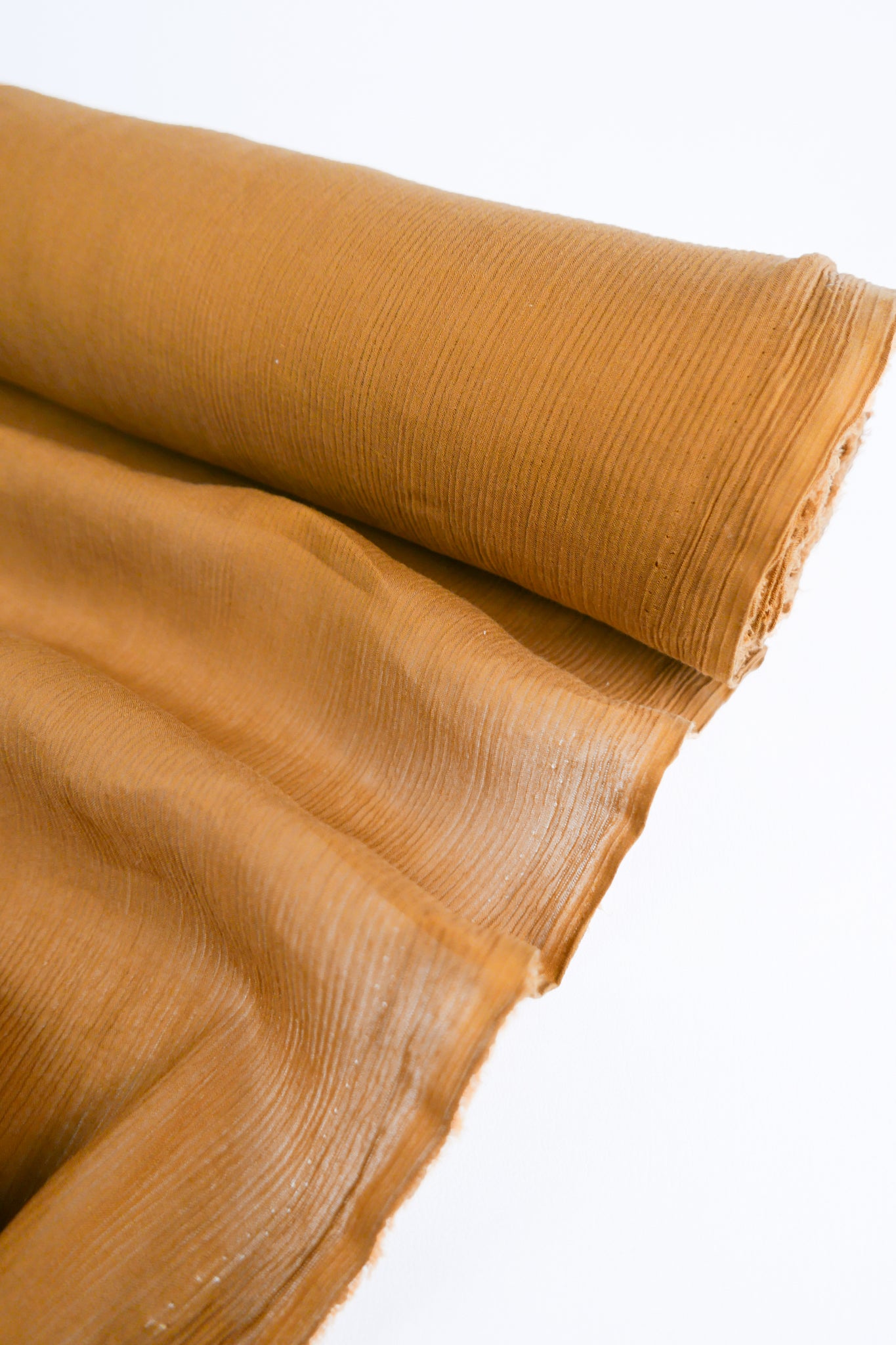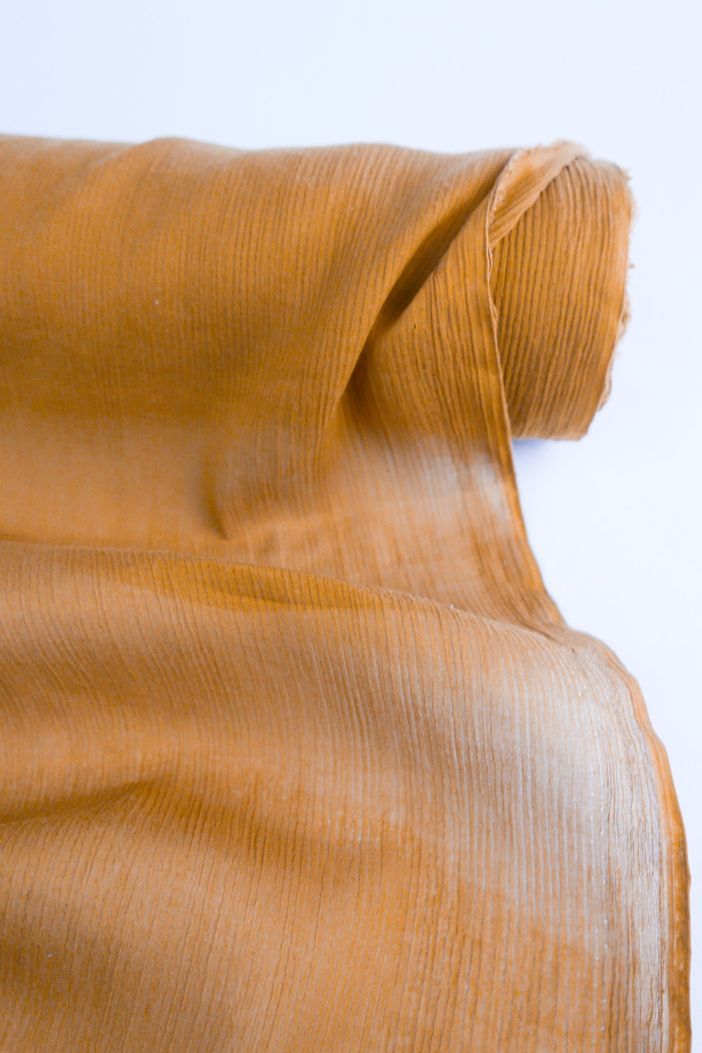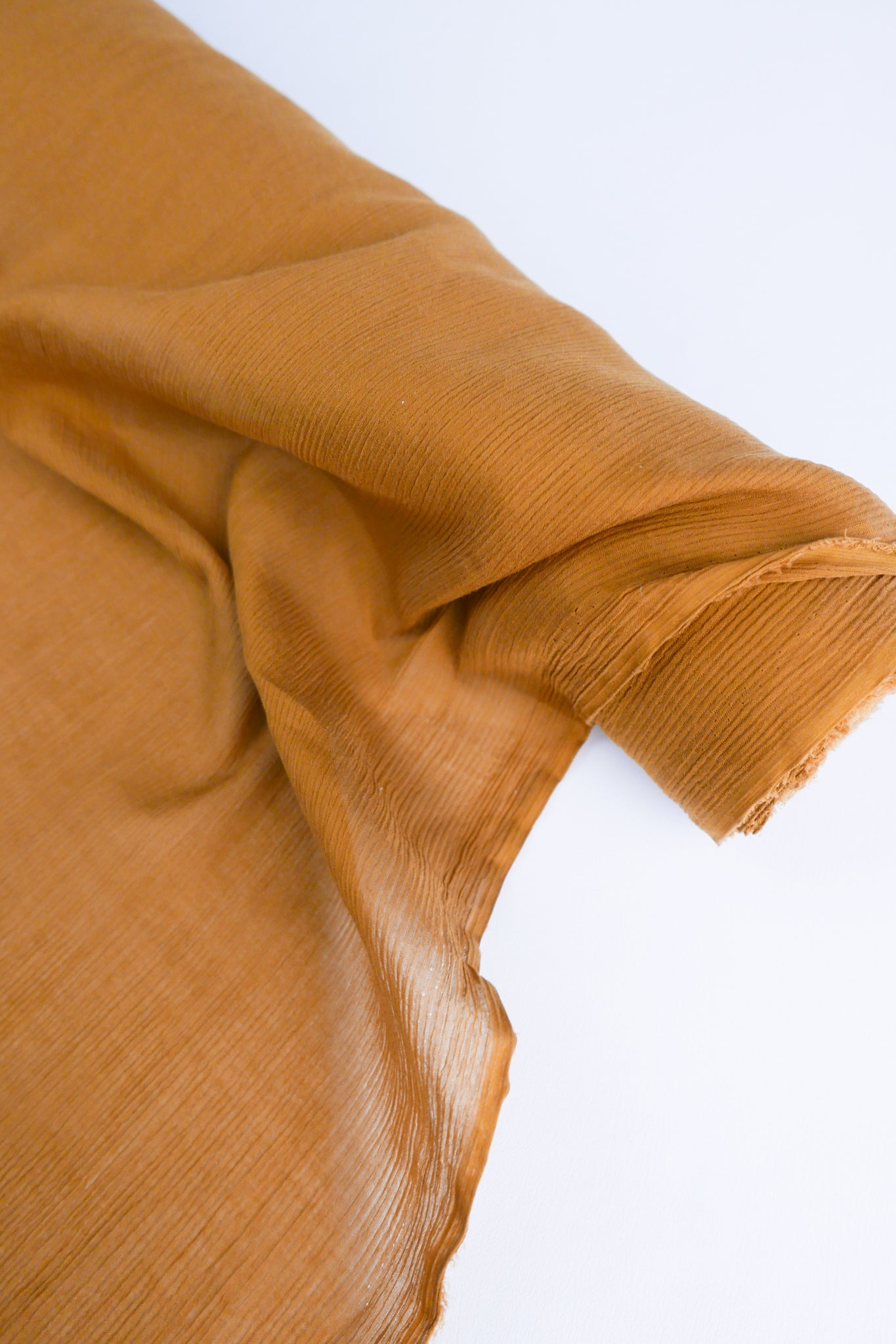 Nara is a beautifully textured rayon yoryu coming in saffron. A one-way knit, it has give along the crossgrain giving it added flexibility. Extremely lightweight and semi-sheer, it has excellent drape, and loads of texture and is perfect for gathered blouses or lined as a dress or skirt.
