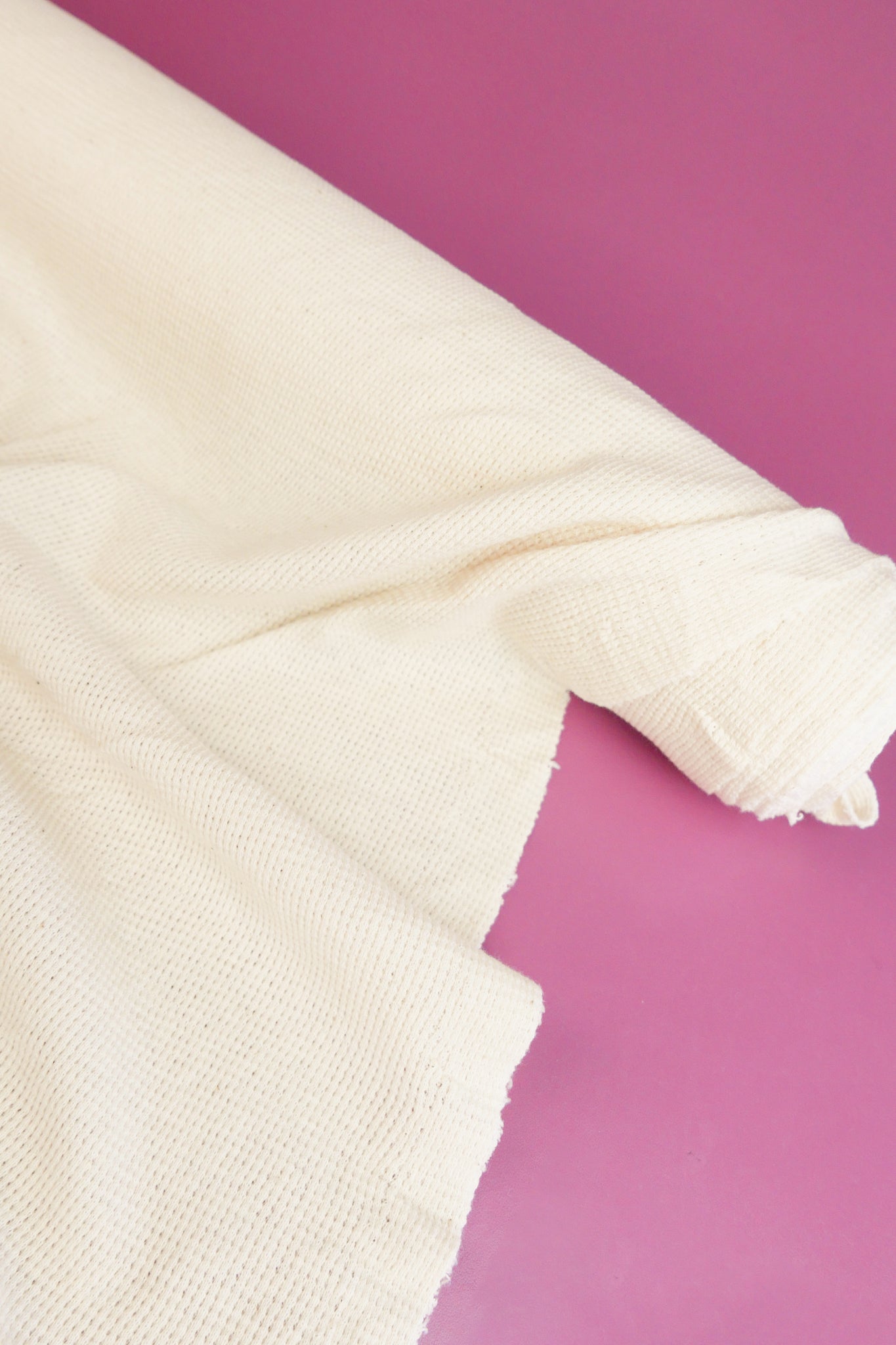 First worn by fishermen in Ireland and Scotland, Fisherman’s Rib is a heritage classic that has become a staple worldwide thanks to its natural elasticity and insulation. A sturdy, thicker knit with a large rib, it has a soft finish and comes in a warm white. Unbleached and undyed, this fabric is perfect for dyeing. Anti-fuzz and anti-pill, mostly opaque and midweight, Fisherman's Rib is perfect for tees, t-shirt dresses and lounge wear.