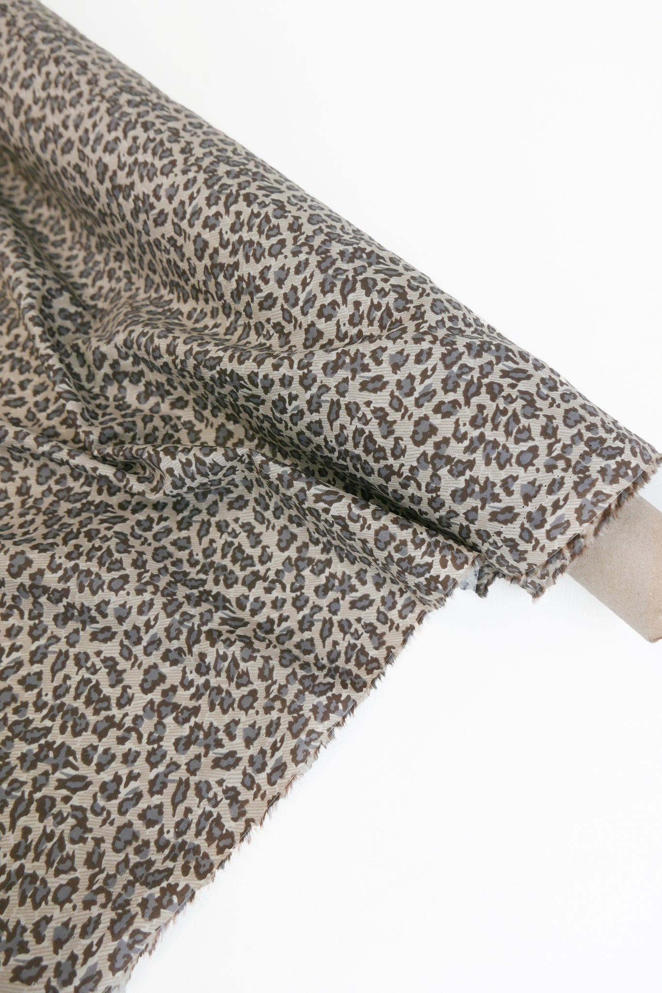 Kimberly is a crisp printed cotton featuring a fun leopard print design. It's crisp, structured and the ideal shirting weight cotton for summer garments. Completely opaque, Kimberly would make up well as a shirt, skirt, trousers, dress and even striking bed wear.