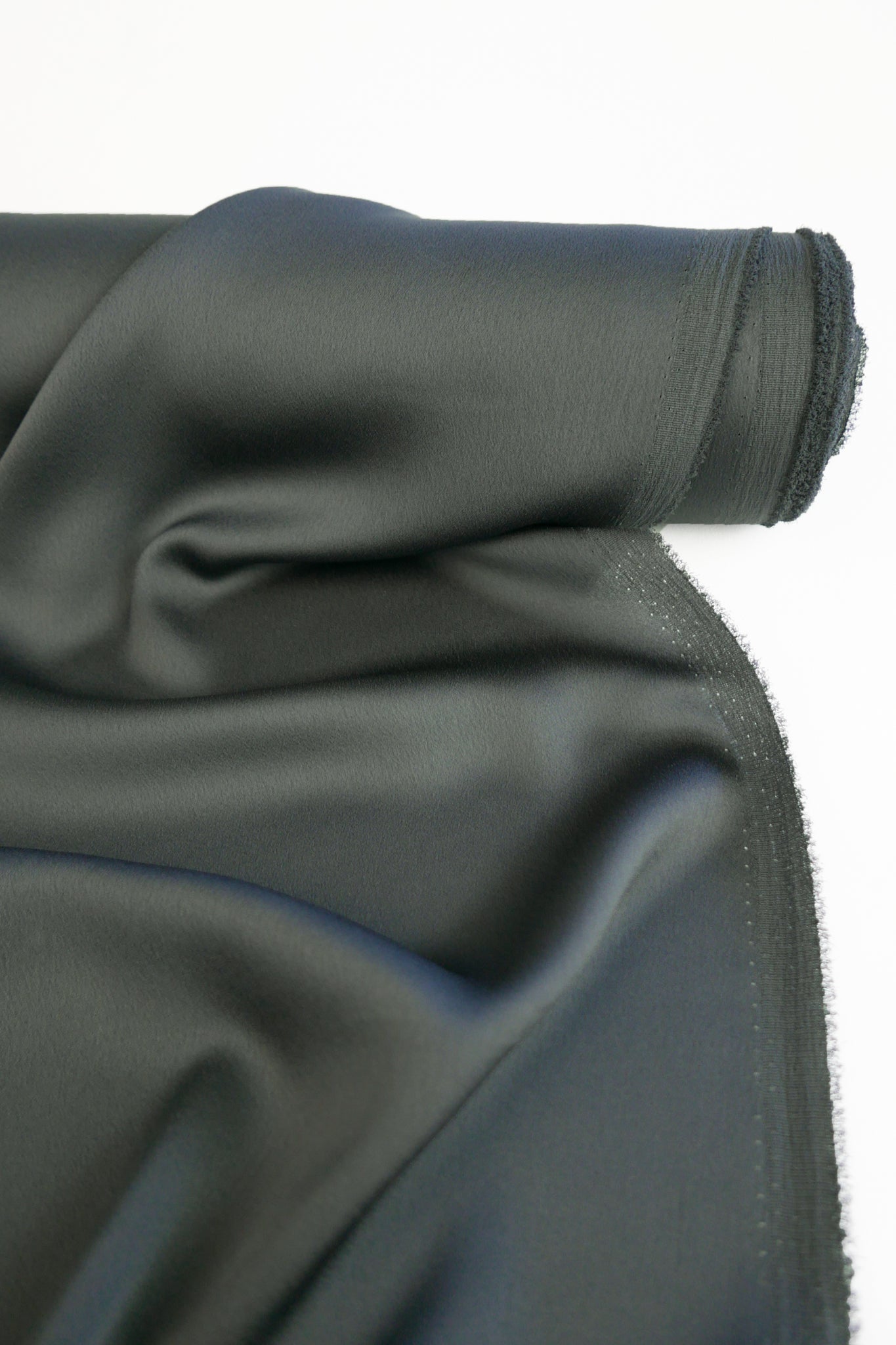 Liquid satin is a beautiful satin finish polyester that handles and drapes just like silk satin. It's incredibly versatile, with mechanical stretch and being wide width, can be cut on the bias, making it suitable for evening dresses, tops, pants, or even statement blazers.