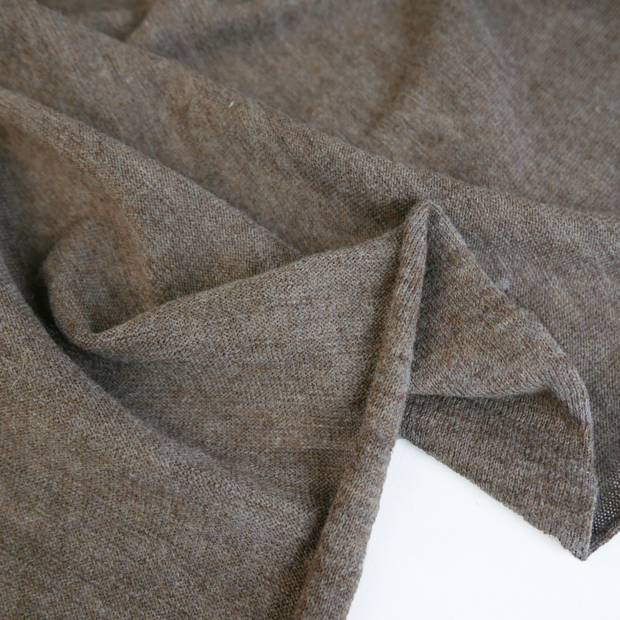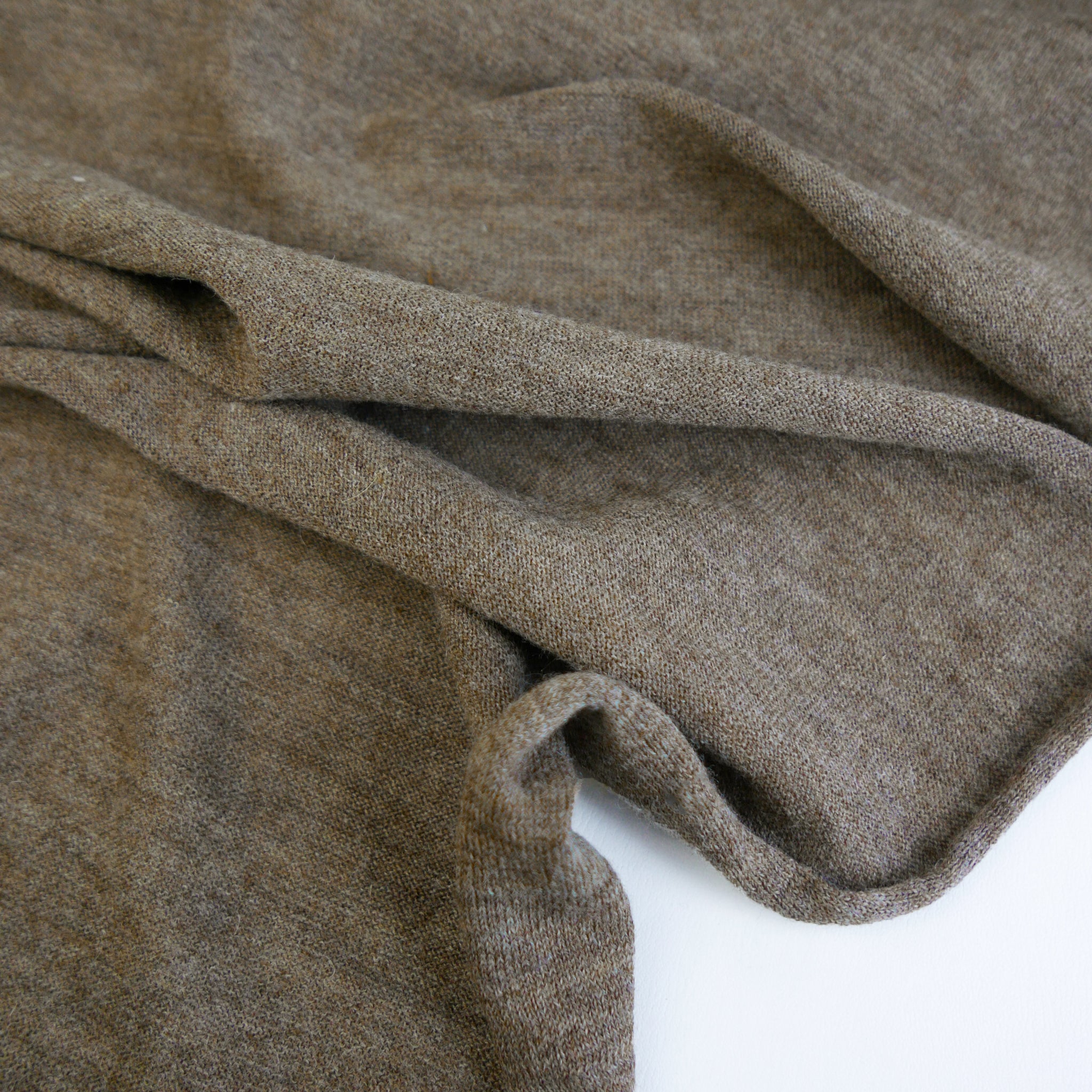 Francesca is a beautifully tactile Japanese merino knit, coming in a horsetail brown colourway. Great as a layering piece or on its own, this knit has a semi-open, tactile ribbed weave and is mostly opaque.