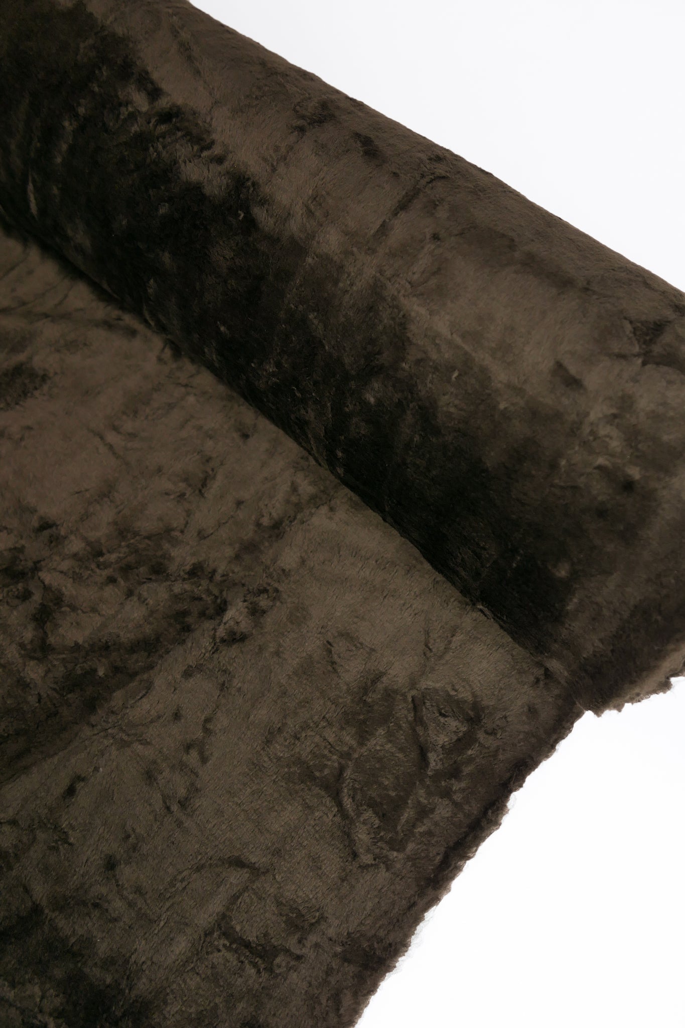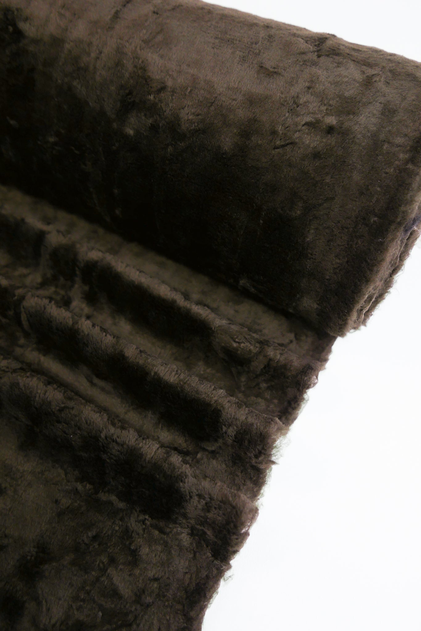 This cuddly knotted velvet knit is from Germany, a country known for its high-quality manufacturing and attention to detail. Beautifully tactile with its dense, short pile, this fabric comes in a rich dark chocolate. Bouncy and soft to handle, it holds structure well, and is heavyweight, making it ideal for jackets and coats, as well as statement dresses and skirts.