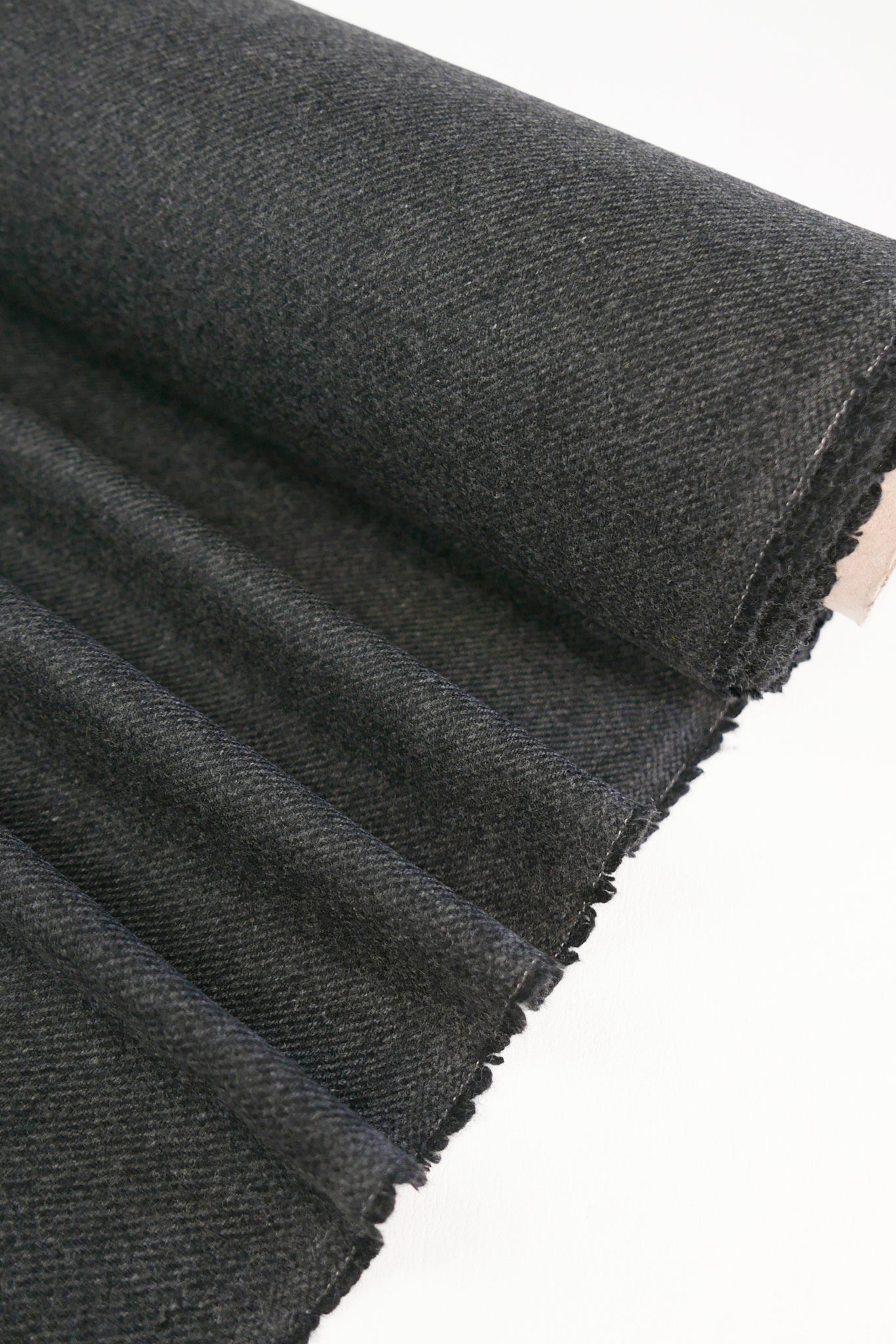 Riccardo is a midweight, Italian wool flannel in a classic charcoal colourway. It has a brushed finish, enhancing its soft handle and emphasising its twill weave. Holding good structure, Riccardo is perfect for details such as pintucks and pleats and would make up into an incredible winter jacket, dress or trousers.