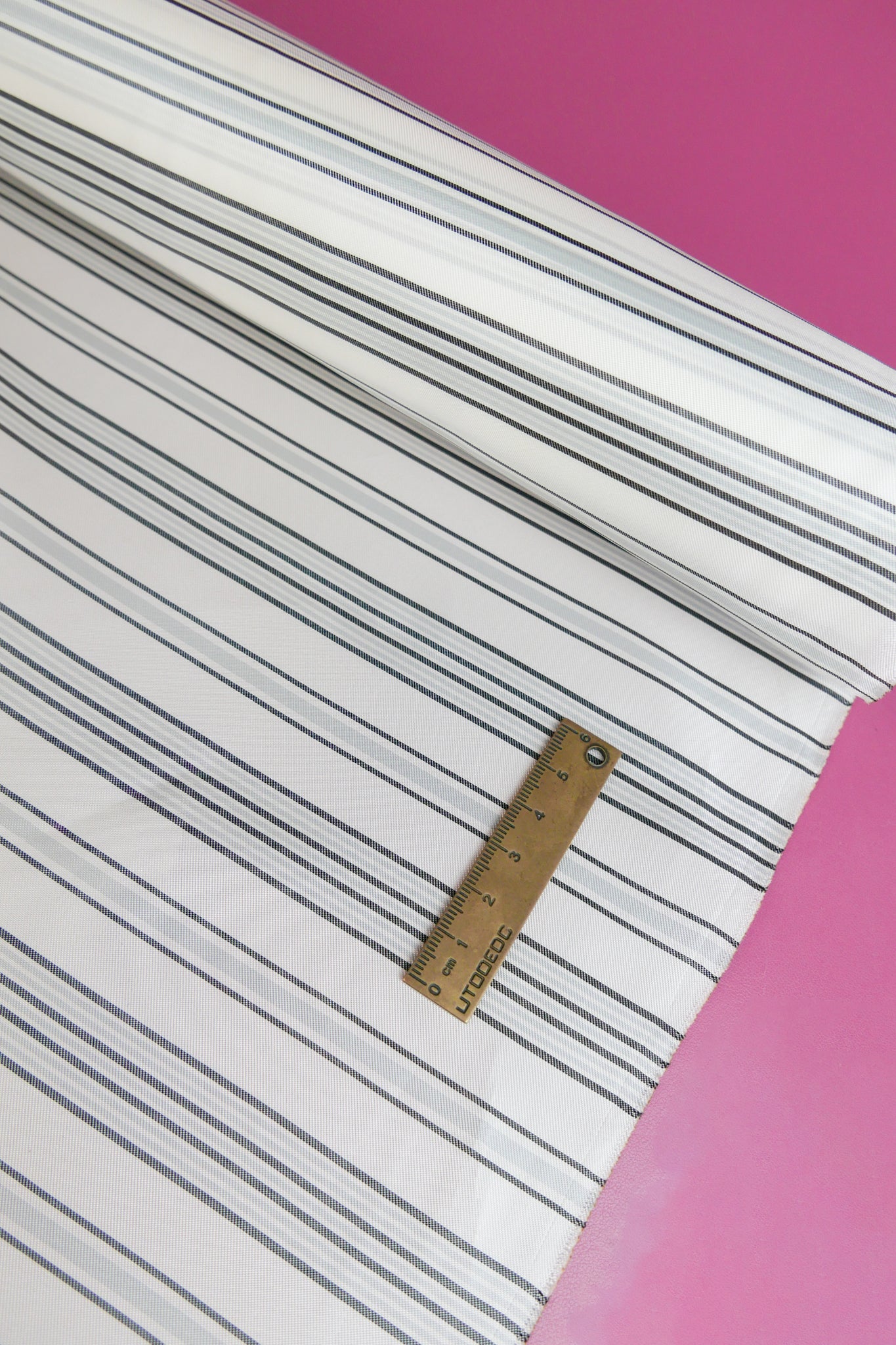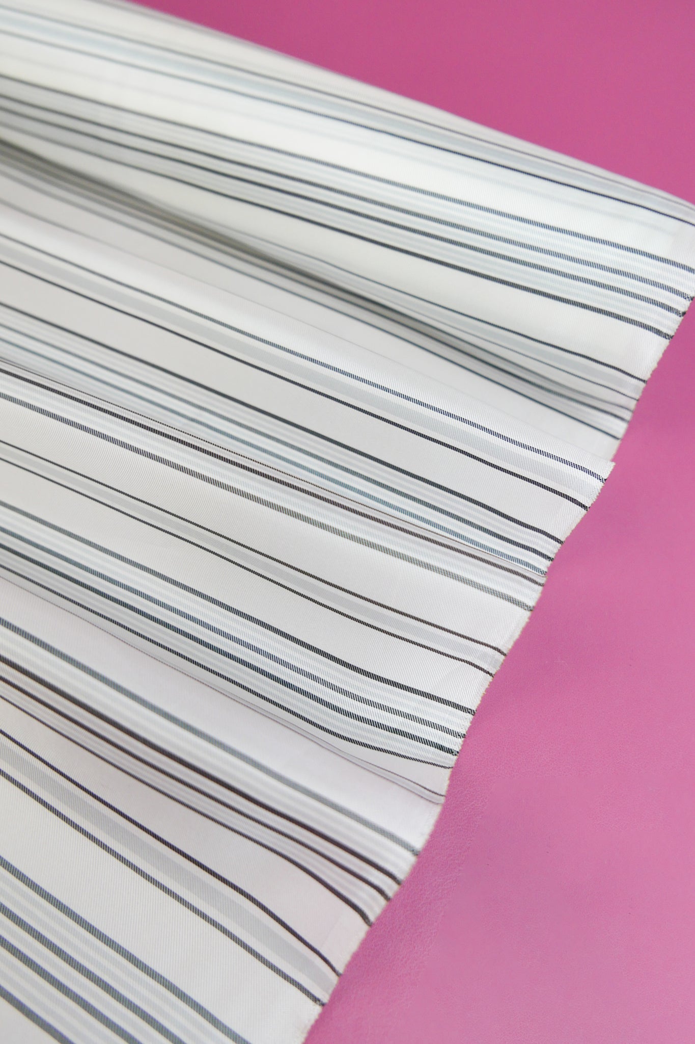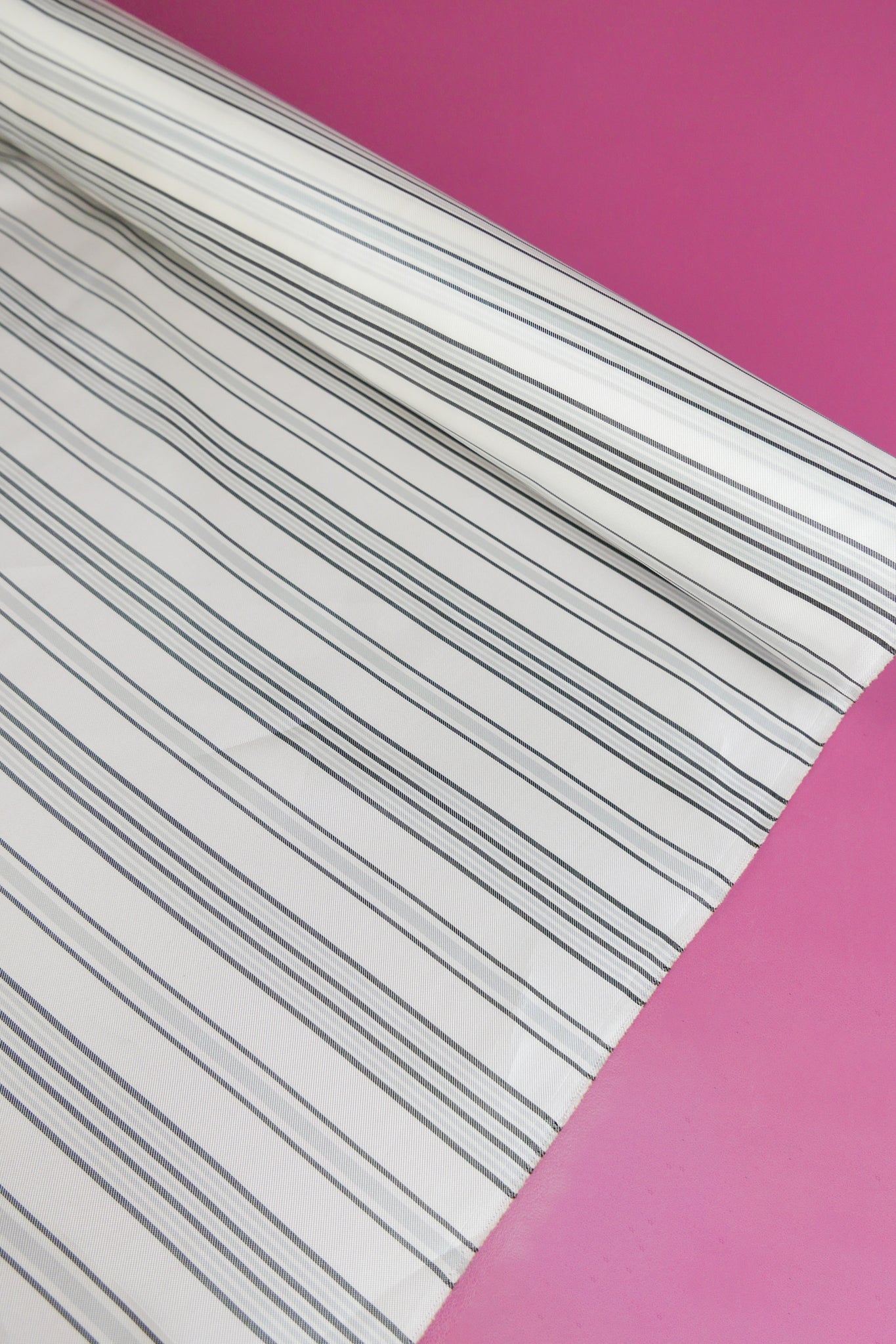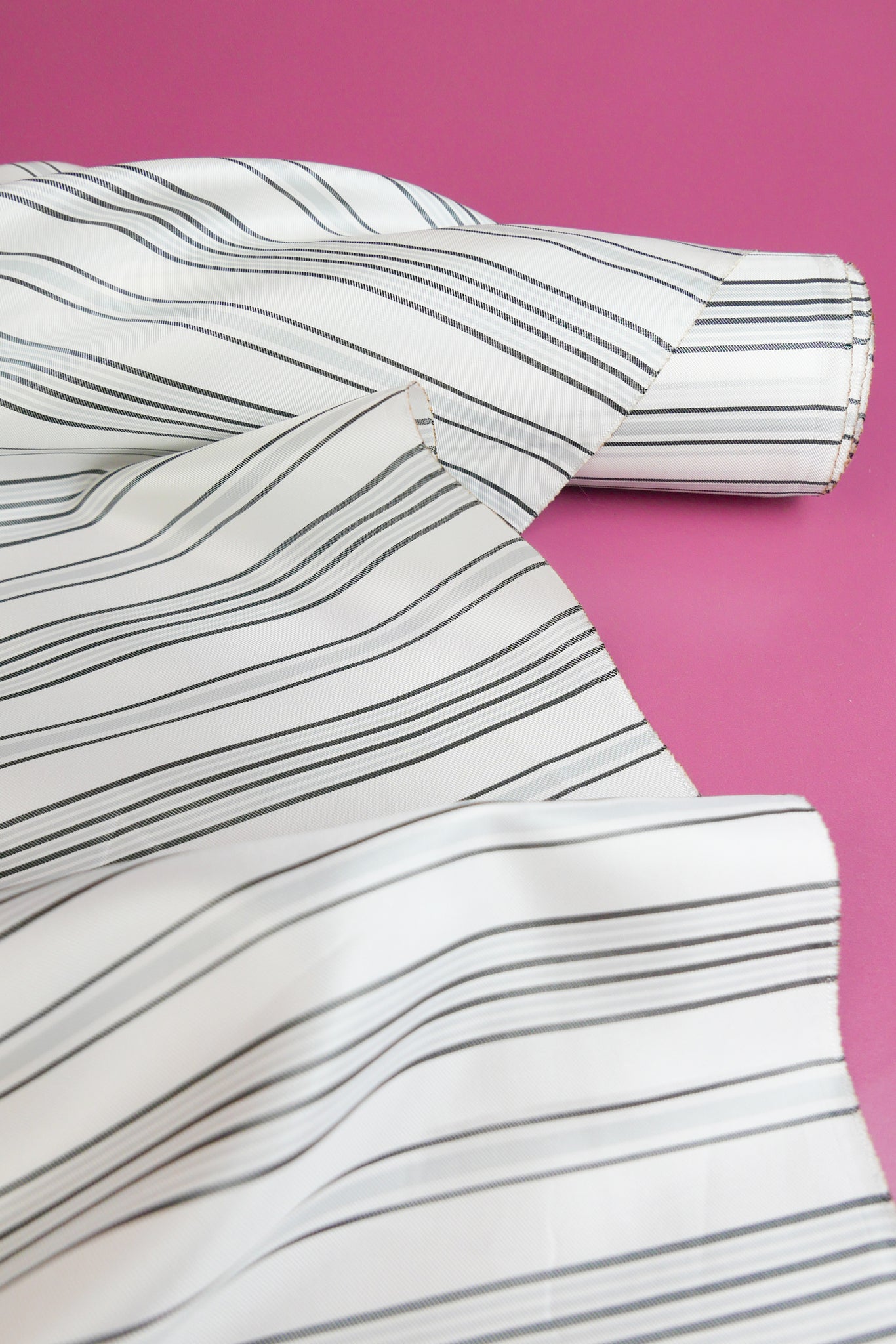 A lavish Italian lining, Marca adds a feeling of luxury to any garment. It features a timeless stripe design in silver and black that runs selvedge to selvedge, on an off-white cloth with a glow-like sheen. Mostly opaque and with a beautiful drape, it's perfect for both lining and garments. It would make into beautiful lightweight dresses, tops and skirts.