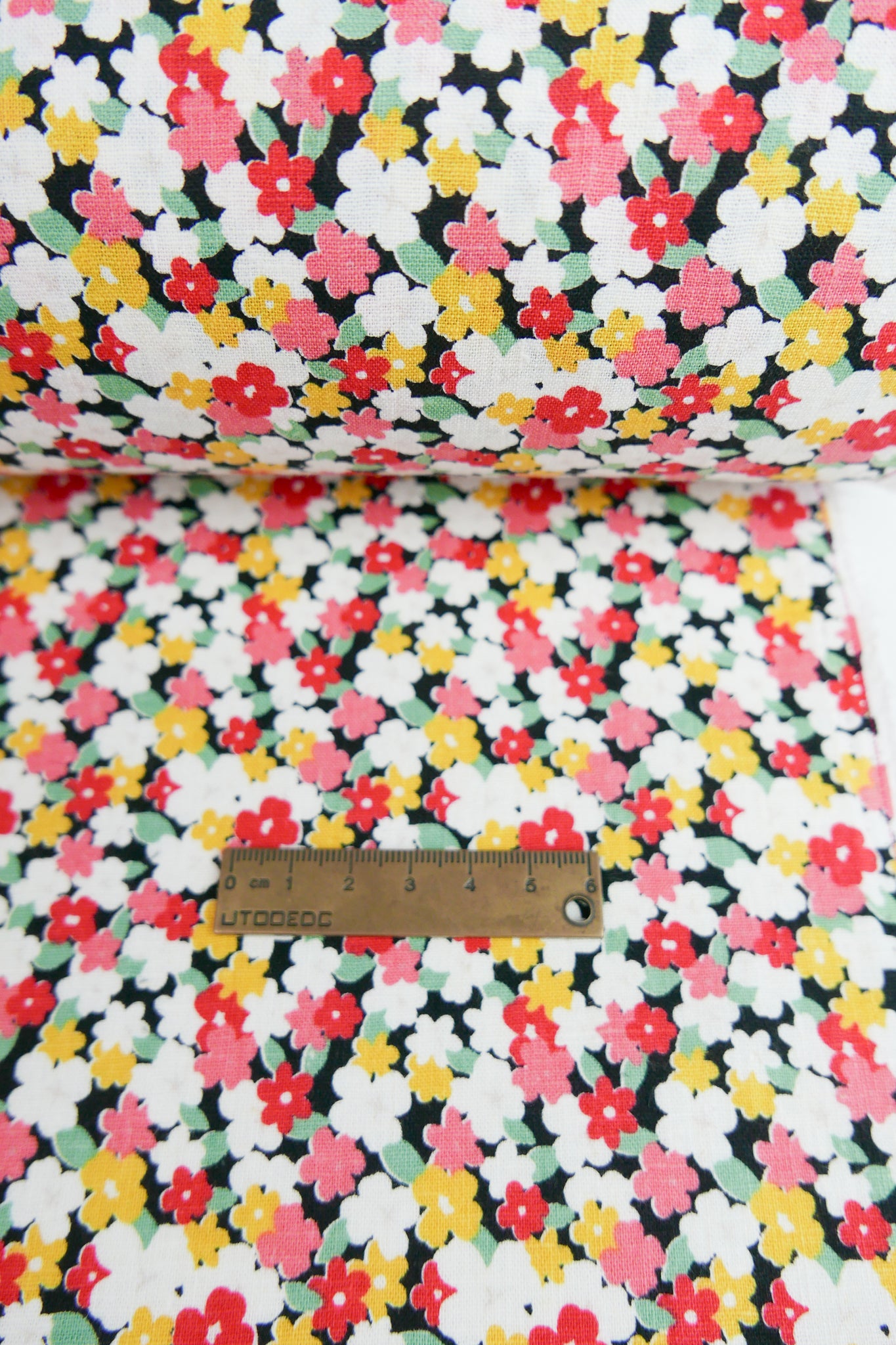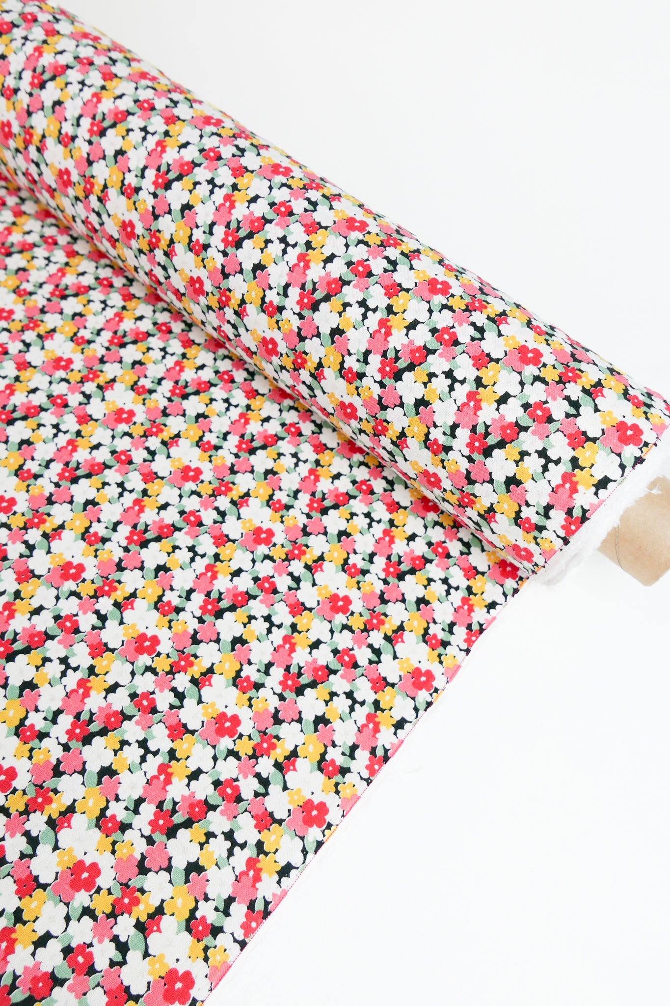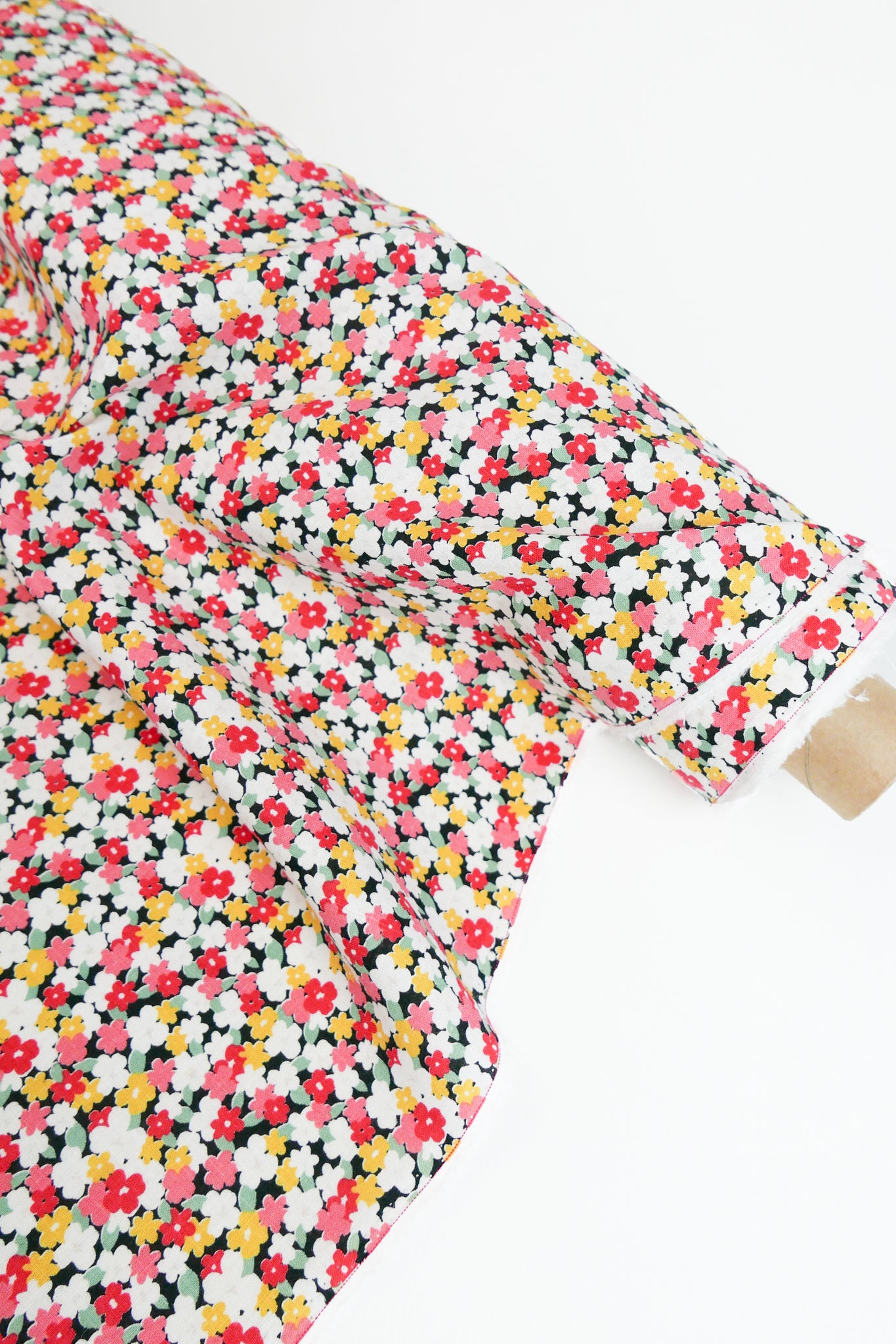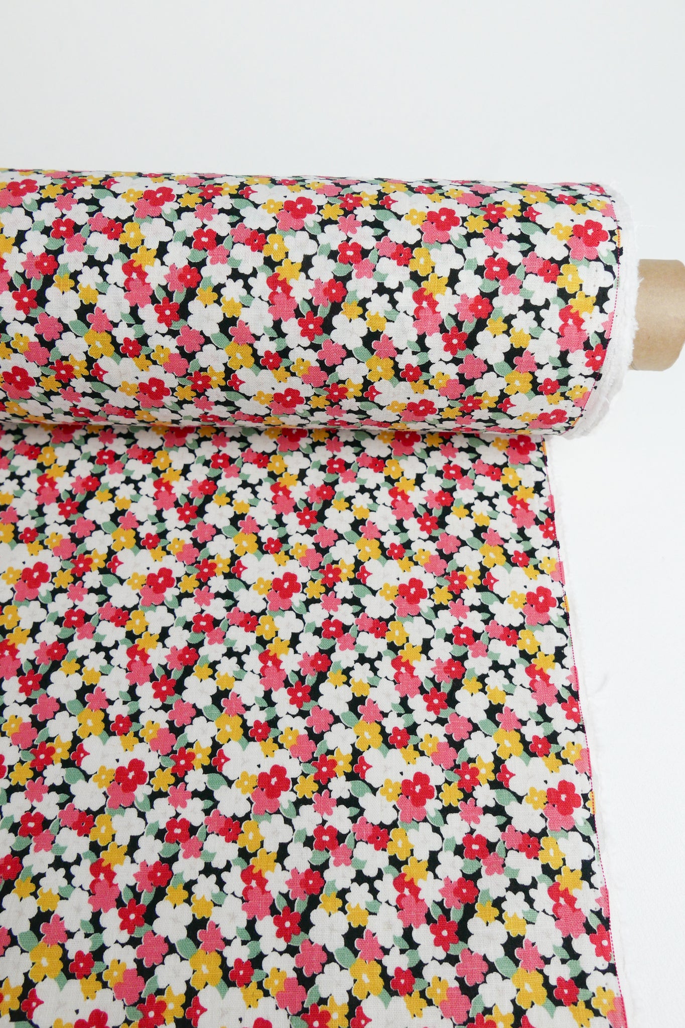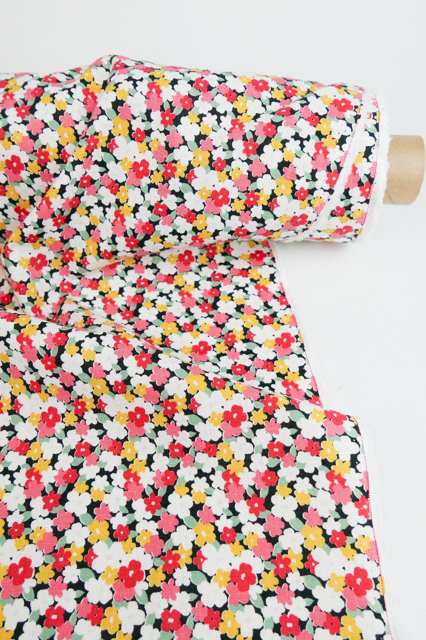 Lorelai is a midweight pure linen featuring a cheerful floral print in red, pink, yellow, green and black on an off-white base cloth. Completely opaque and gently structured, Lorelai will hold pleats well. An ideal trans-seasonal weight, it's perfect for shirts, trousers, skirts and dresses.