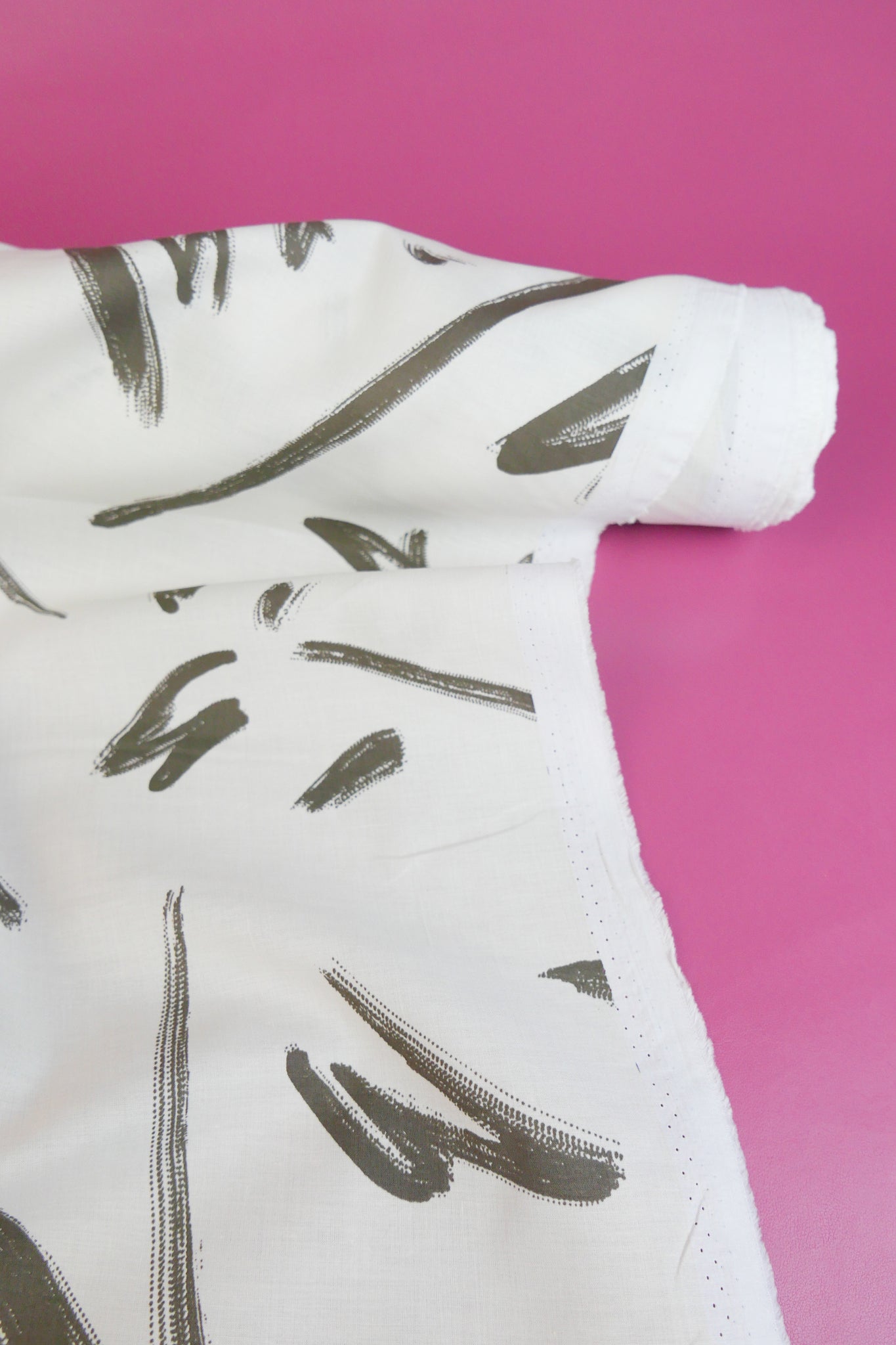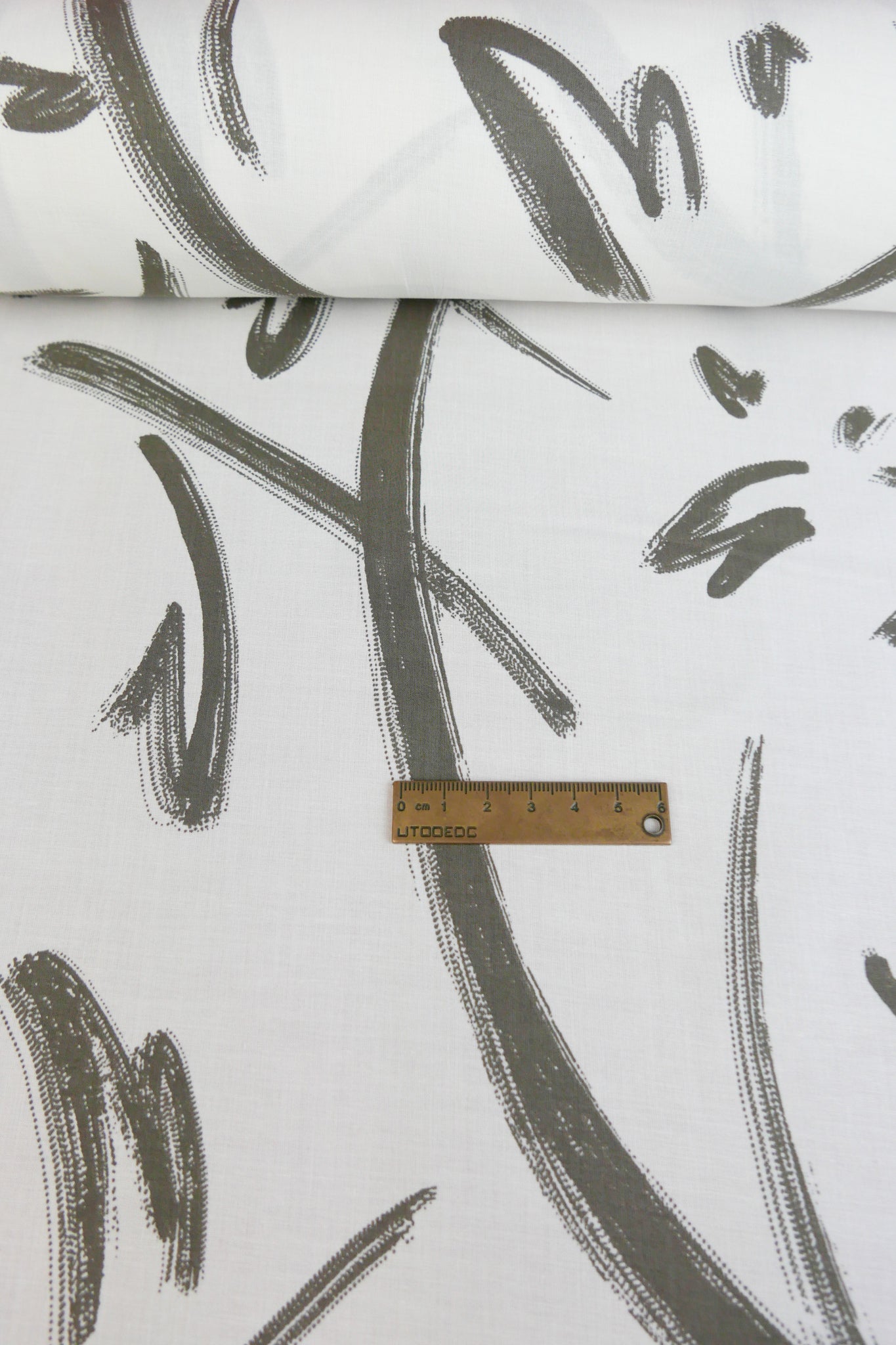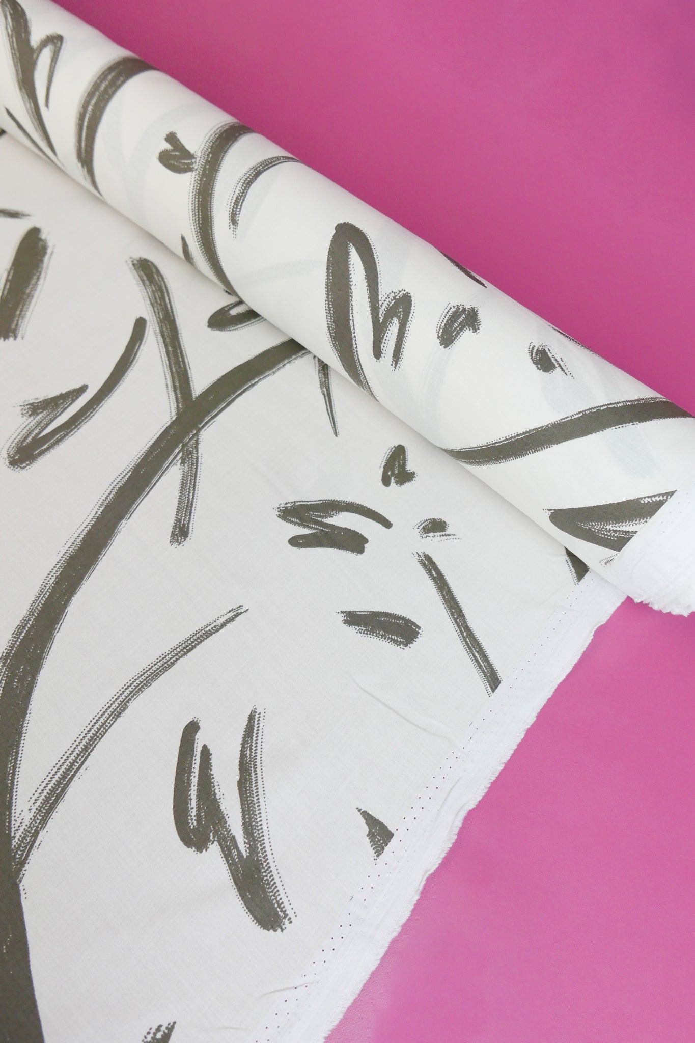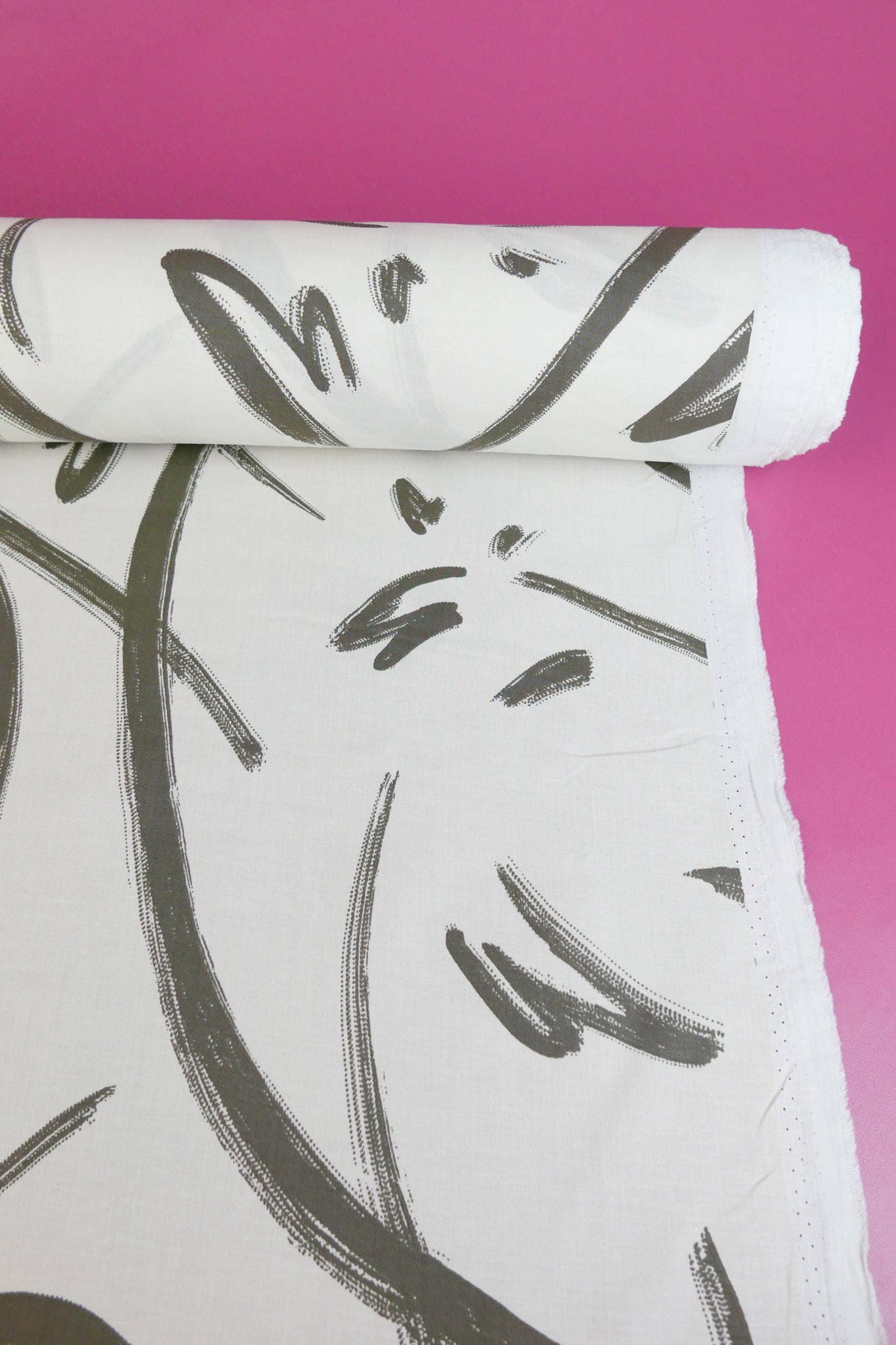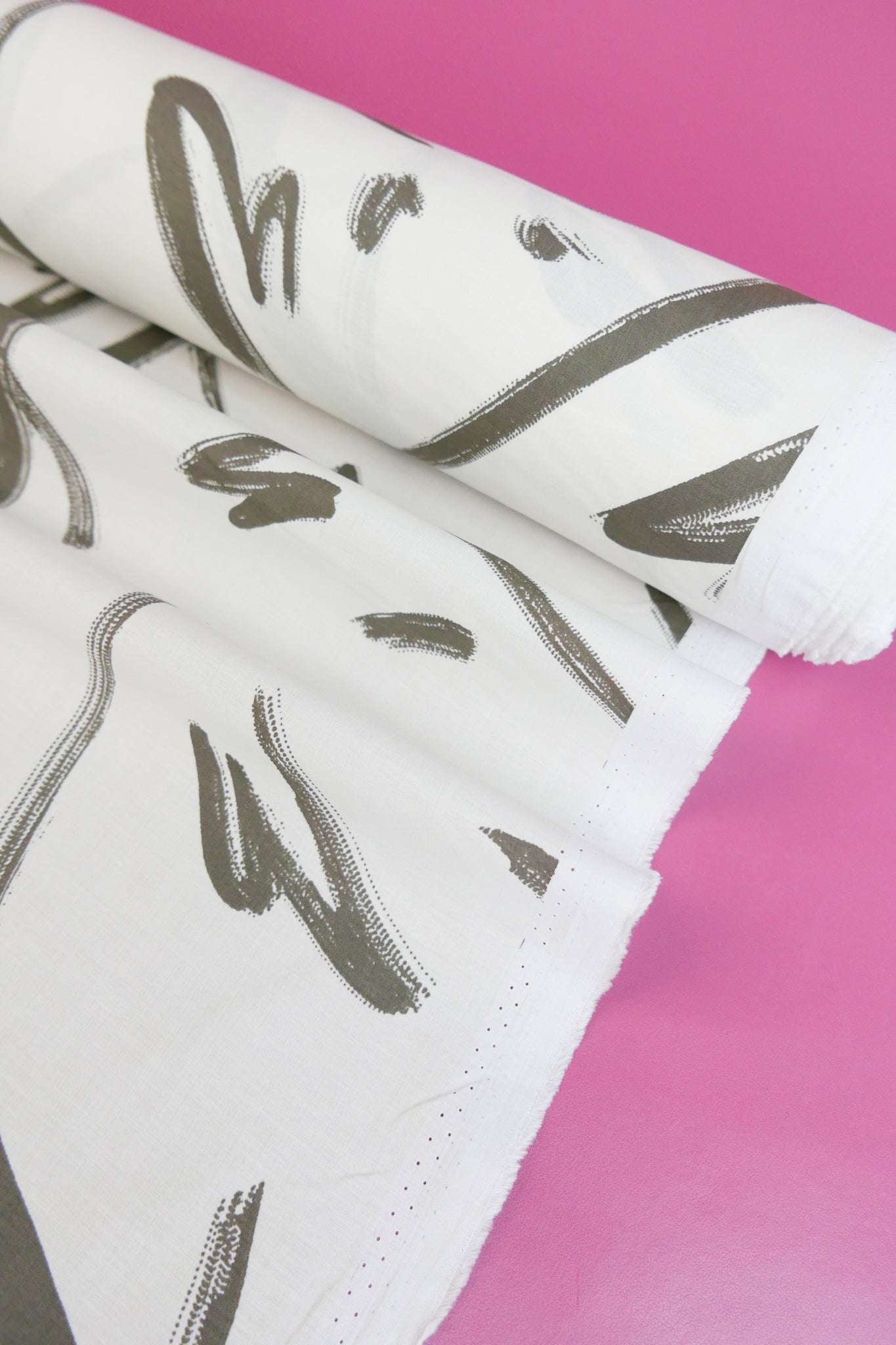 This is a beautiful, versatile cotton, featuring a scribble design in mushroom on an off-white cloth. 100% cotton, it is lightweight and has a soft hand feel. Semi-opaque and holding soft structure, it would make into the perfect dress, shirt, skirt, or luxurious lining.