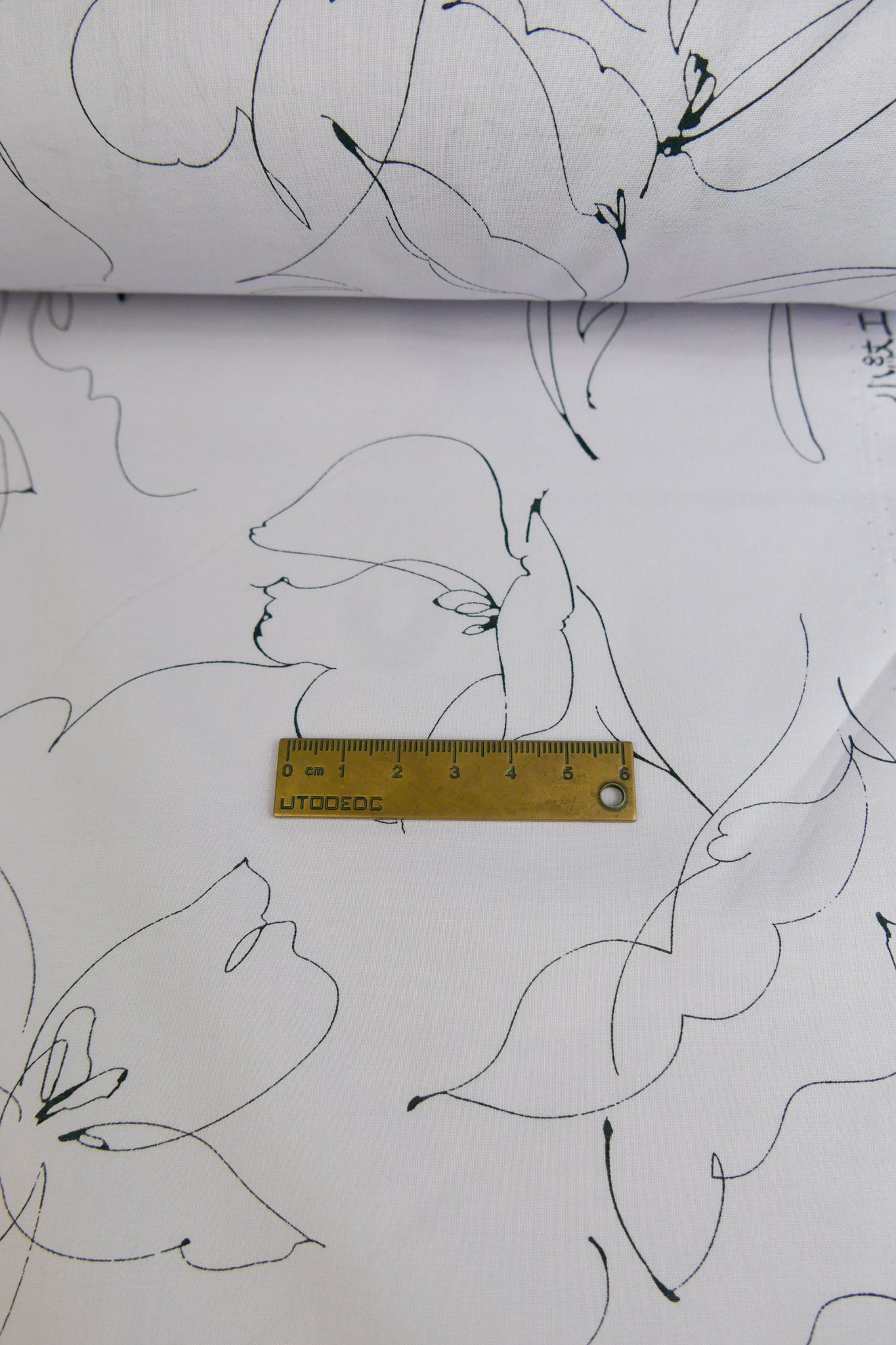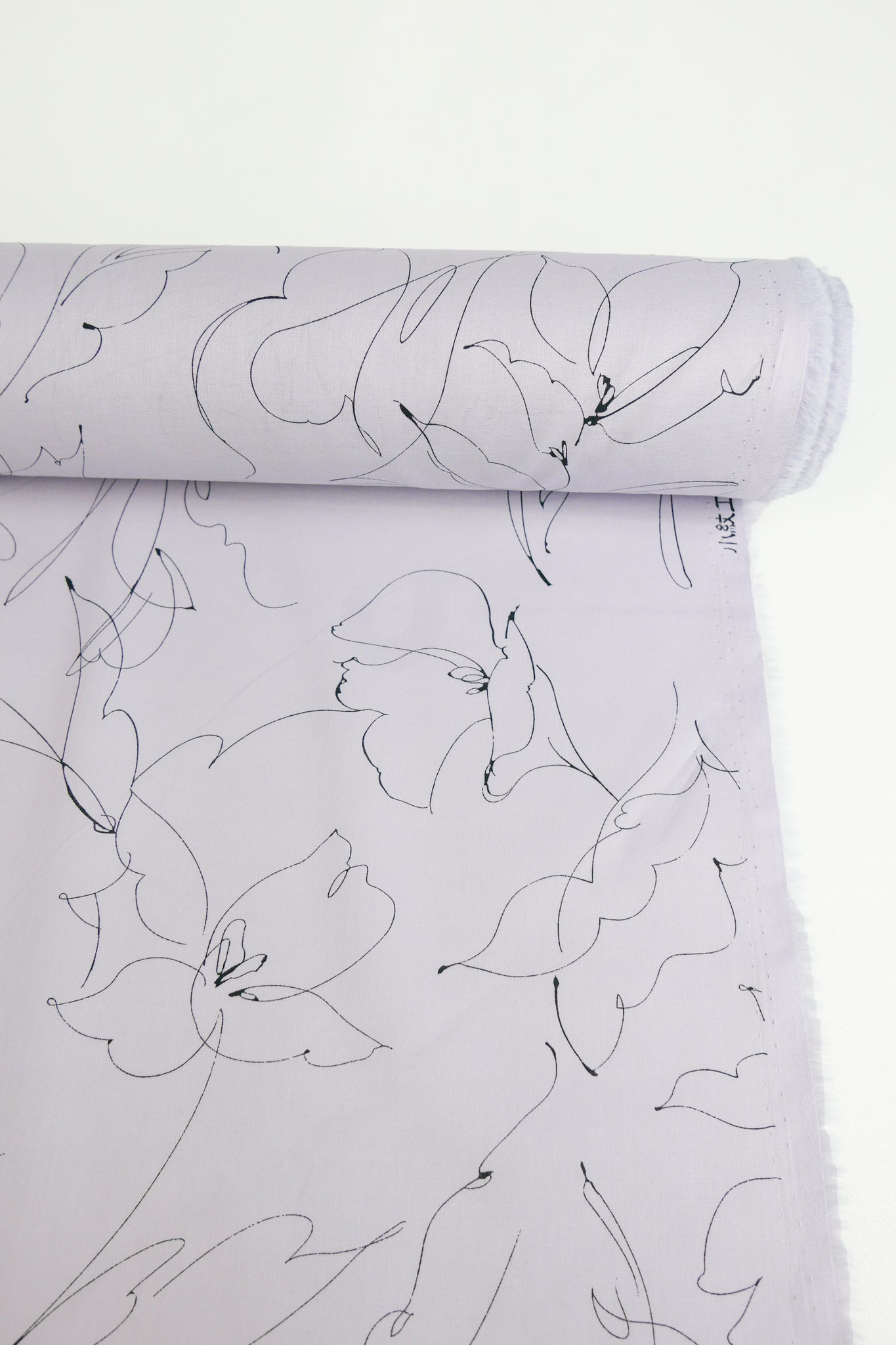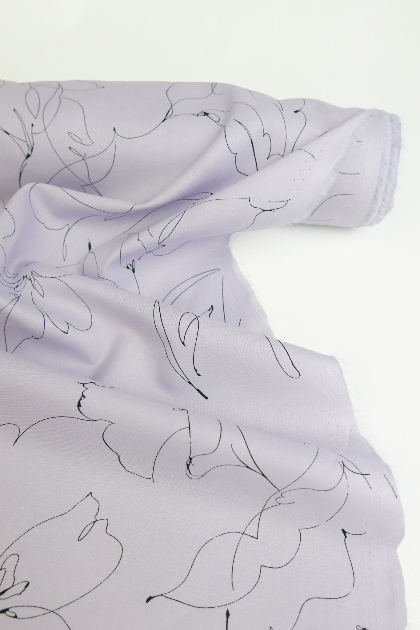 A luxurious essential to any wardrobe, this silky soft Japanese cotton lawn features a beautiful hand-drawn-style floral print in black on a light lavender base. 100% cotton, it is lightweight and has a supremely soft hand feel. Semi-opaque and holding soft structure, it would make into the perfect dress, shirt, skirt, or luxurious lining.