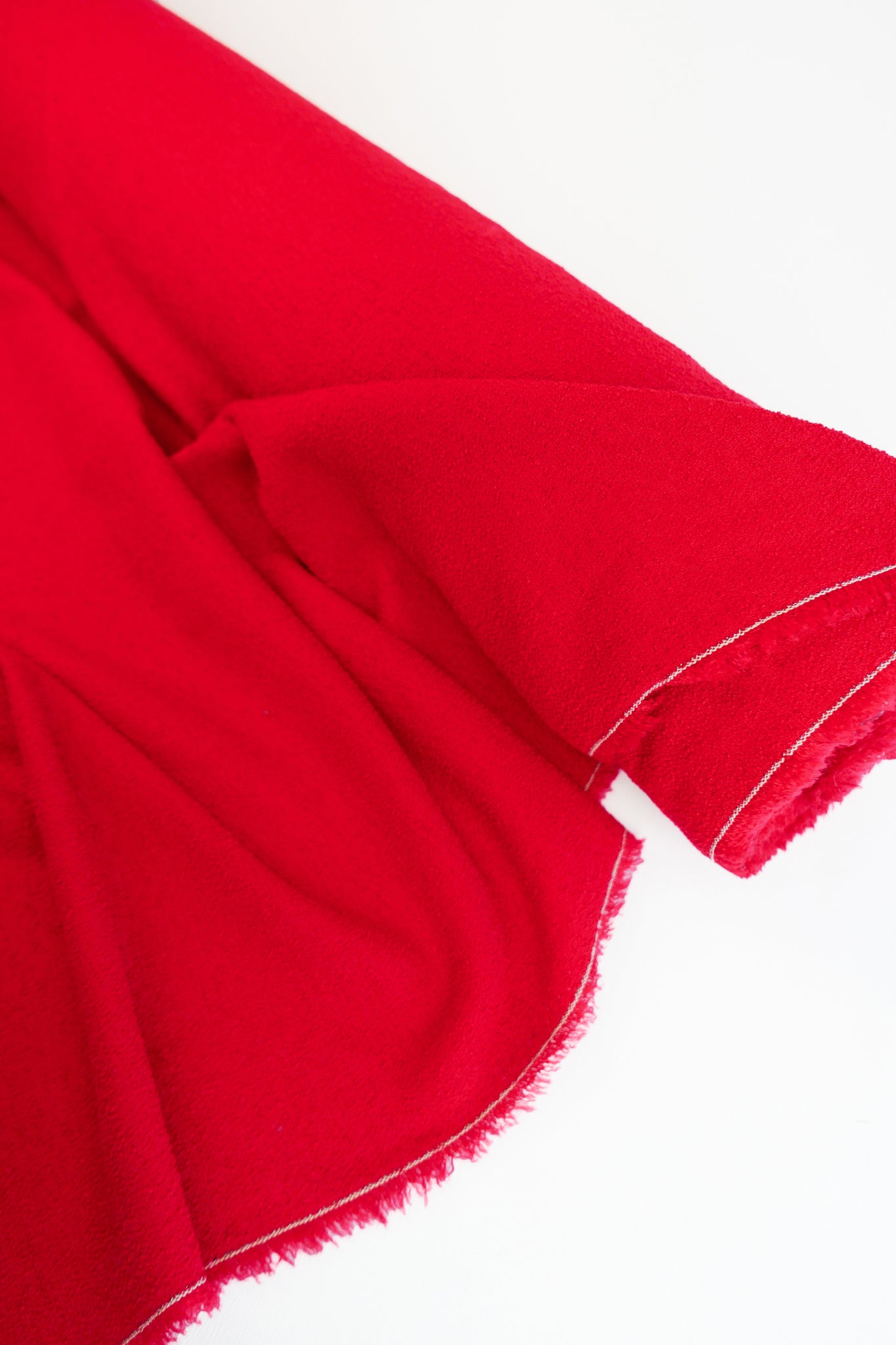 Cherry is a lovely light-midweight ultra-textured crepe in a bright cardinal red. It has a lovely tactile handfeel and beautifully structured drape. Cherry is perfect for pants or even cut on the bias for skirts and dresses.