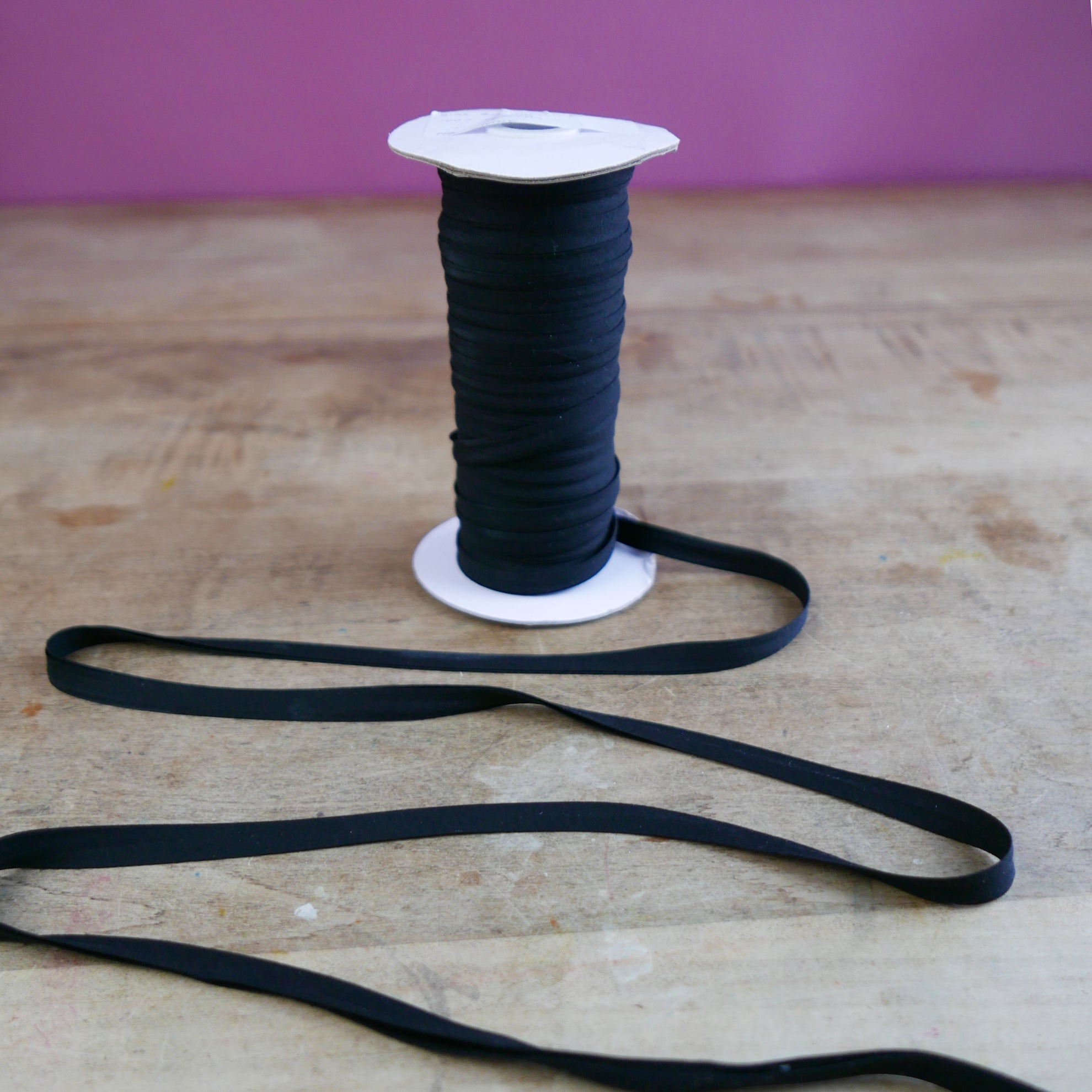 Four-fold bias binding consciously made in Auckland, New Zealand, made up in our black-coloured rayon. Drapers Fabrics proudly supports local New Zealand and Australian manufacturing. Perfect for a professional clean finish for your seams, hems or even use as straps.