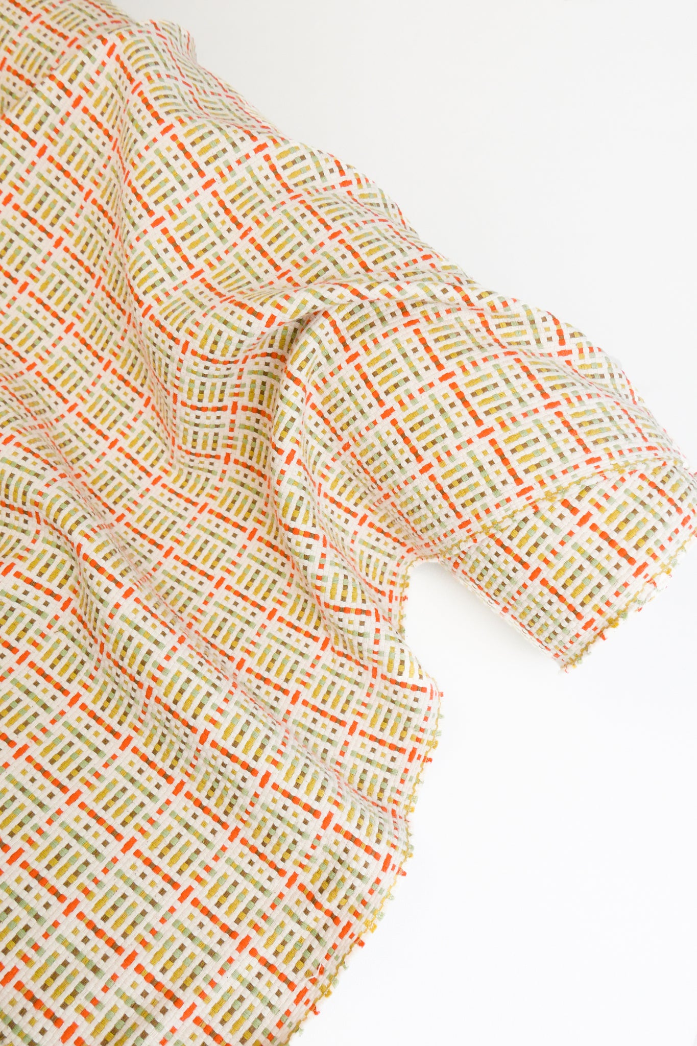 Marseille is a vibrant, double-faced jacquard boucle with a beautiful weave in off-white, pistachio, sage green, and brown. Heavyweight and structured, this jacquard is perfect for showstopping coats, or a matching jacket and skirt set à la Clueless. Also suitable for homeware.