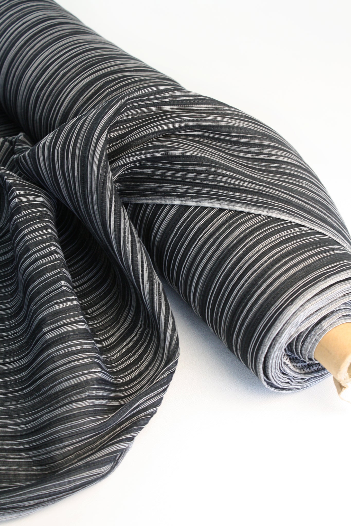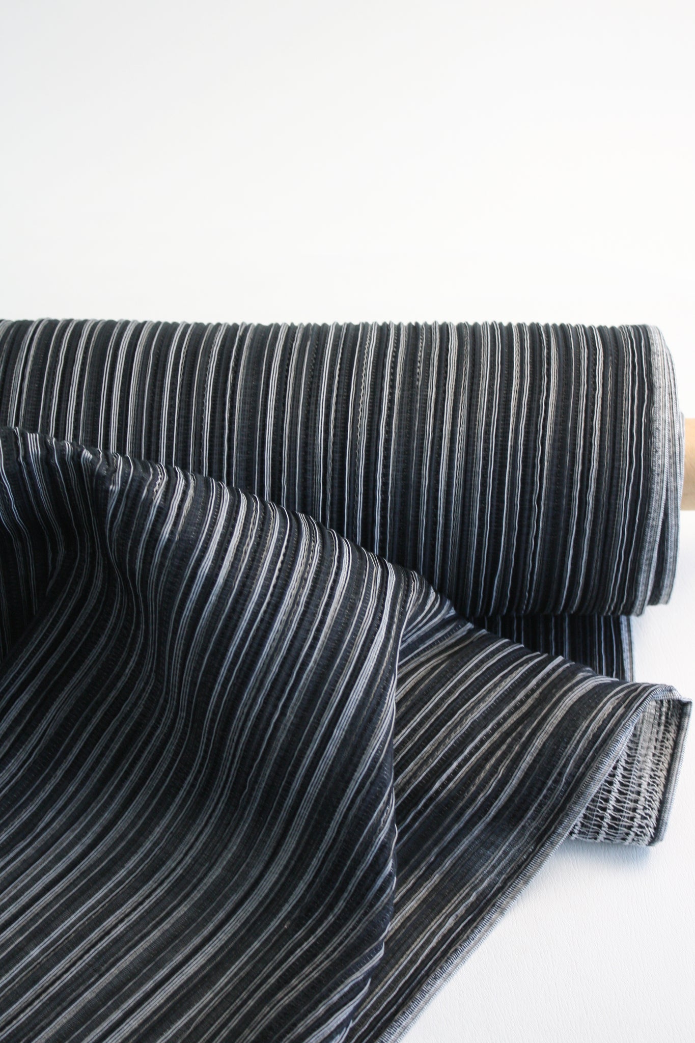 Japanese-made pre-pleated fabric that doesn't come around too often. Coming in 7 colourways for the bold statement pieces and the classic wardrobe staples. Semi-opaque, with an extremely soft handle and two-way stretch. Let the fabric speak for itself, leave the seams raw and whip up a tank dress in no time. The pleats will naturally shape the body, creating an effortless, perfect fit. Issey Miyake inspired, it would make up an exquisite pair of loose-fitting pants, a skirt or a mock neck top.