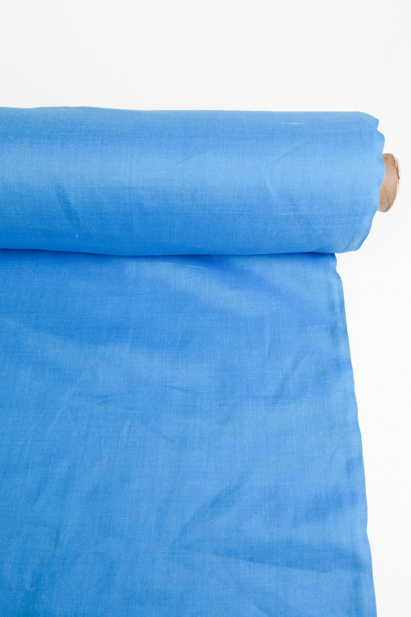 An indulgent silk shirting, coming in a striking yarn-dyed sky blue. Supremely soft and with a subtle sheen, it is completely opaque and tightly woven. It has beautifully structured drape and is perfect for shirts, dresses, skirts or summer-weight trousers.